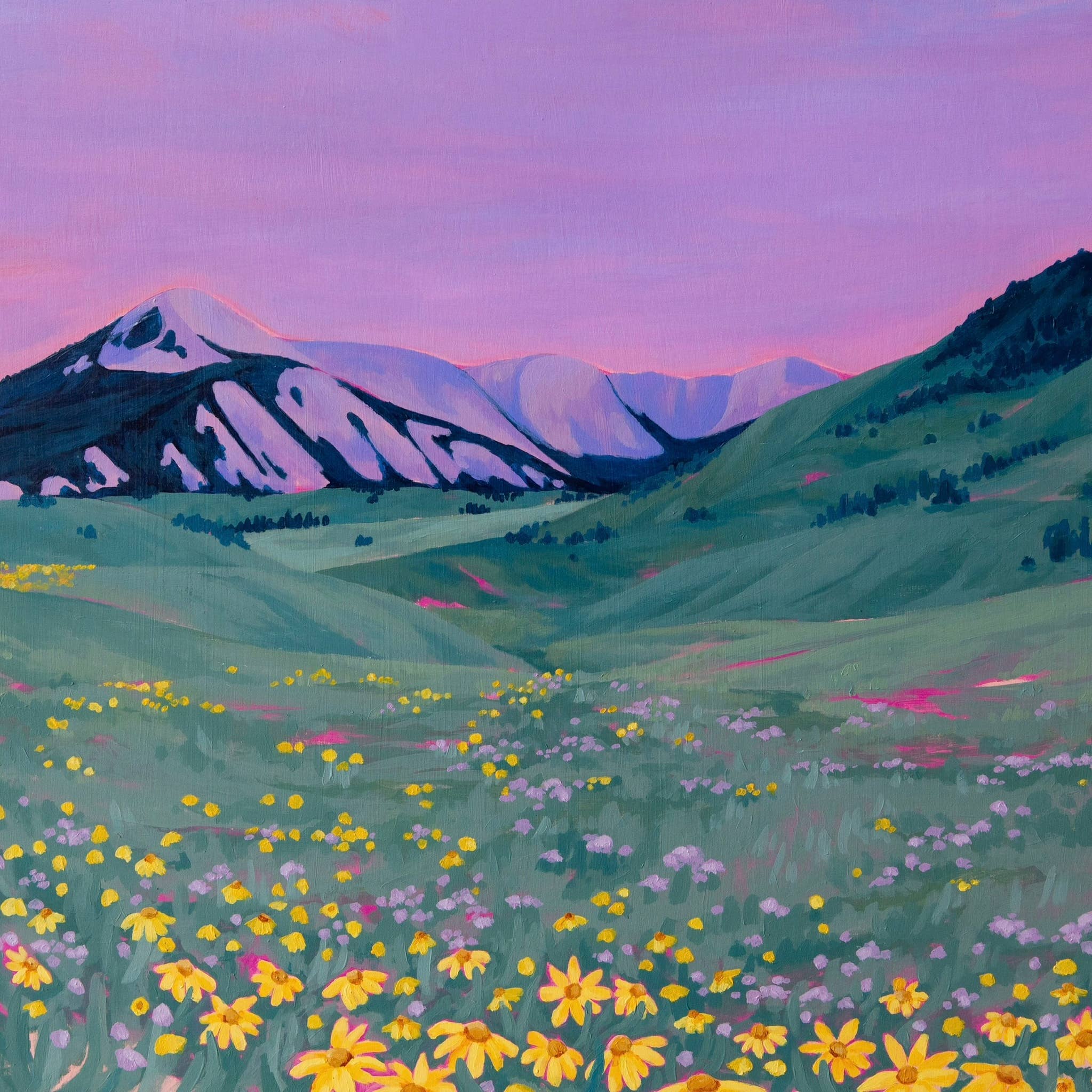 I am an artist based out of Colorado Springs, Colorado. After graduating from the University of Arkansas in 2019 with a BFA in Art Education with a focus in painting and photography I made the move out west to Colorado where I taught public school art before pursing my own art career. My artwork is inspired by my experiences hiking, traveling, and camping in the great outdoors. Each piece reflects the moments of connection I’ve felt while immersed in nature. These adventures fuel my creative process, allowing me to translate the landscapes I explore into vibrant, expressive paintings. Through bold colors and expressive brushstrokes, I aim to capture not only the visual essence of these wild places but also the emotions they evoke- peace, wonder, and connection. My artwork celebrates the natural world with a balance of realism and artistic abstraction. Traveling through remote landscapes has taught me to see the world through a lens of curiosity and gratitude, and I strive to bring that perspective into my art. I want viewers to feel as though they are stepping into these scenes- to experience the serenity of an alpine meadow, the crisp air of a mountain trail, or the golden glow of a setting sun. Ultimately, my goal is to celebrate the natural world and inspire others to find their own connections to it, whether through adventure or appreciation.
