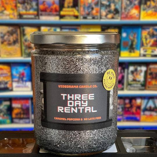 Videorama is a trip to the past. Light one of our candles, and you'll be transported to the aisles of your local video store, feeling the excitement of finding that last copy of your favorite film and grabbing your favorite candy at checkout. Our scents are inspired by your favorite movie and TV moments, curated and created by total pop culture nerds. Each candle is handmade in small batches, ensuring that every flame holds a touch of movie magic. Relive those moments and create new ones with Videorama.