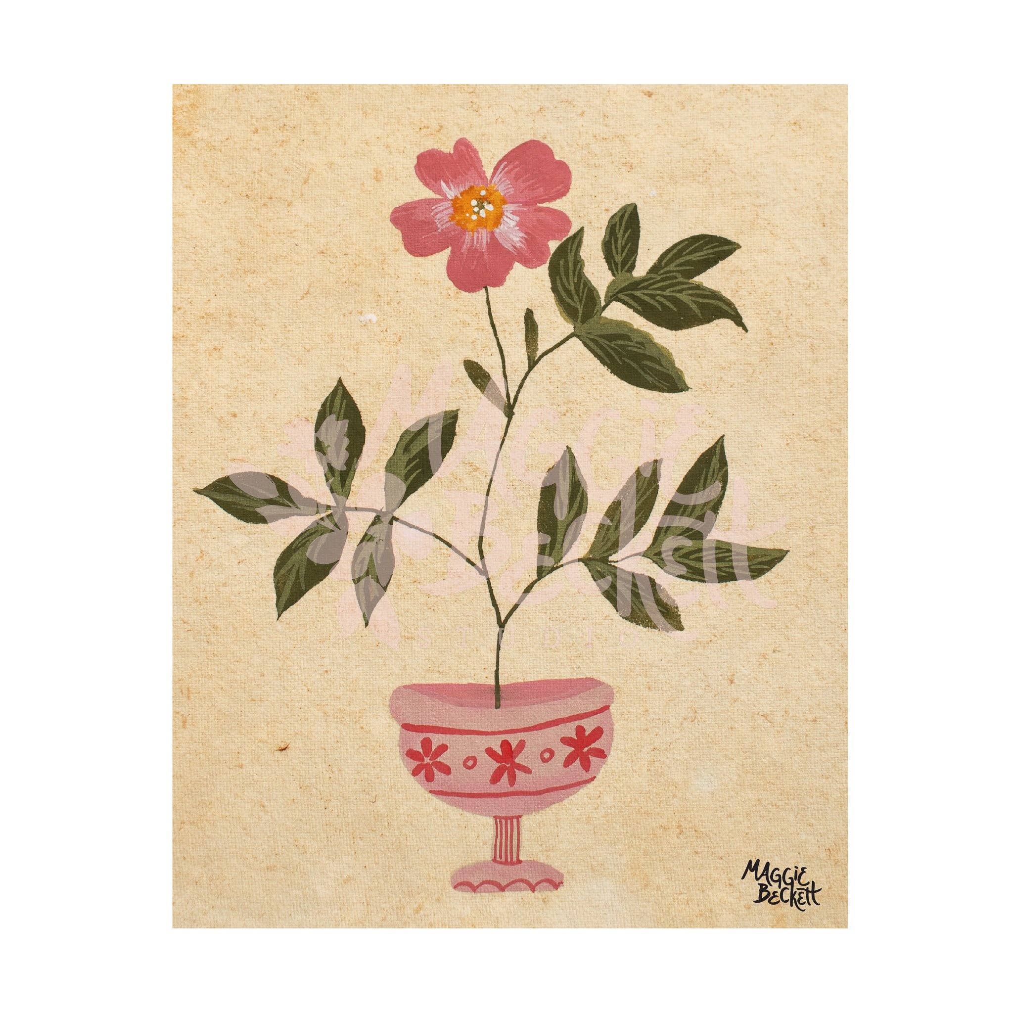Hi, I’m Maggie, the owner of Maggie Beckett Studio. Ever since I was a child, I have been drawn to create. Whether it was with chalk on the sidewalk or paint on a canvas, making art was something that I pursued consistently and joyfully. Throughout my career, I worked on my art in various formats, from selling my handmade jewelry while still in college studying graphic design, or later my watercolors once I moved to NYC to work as a creative director in event planning. In 2020, when events came to a halt, my career took a sharp turn. I spent many hours of quarantine sprucing up my Lower East Side apartment, painting, and living more creatively each day. Since then, I have continued to grow my art practice, building a portfolio of murals, custom stationery, fine art, and more. From my wide array of greeting cards and notepads to art prints, I am proud to expand my collection to be accessible to everyone. Each item, each design, at one point was created with pencils and paint before being digitized for print. All my products are painted and designed by me and created by small print shops based in the USA. My mission, always, is to find a way to share more handmade art with the world. From my heart and hands to yours, Maggie