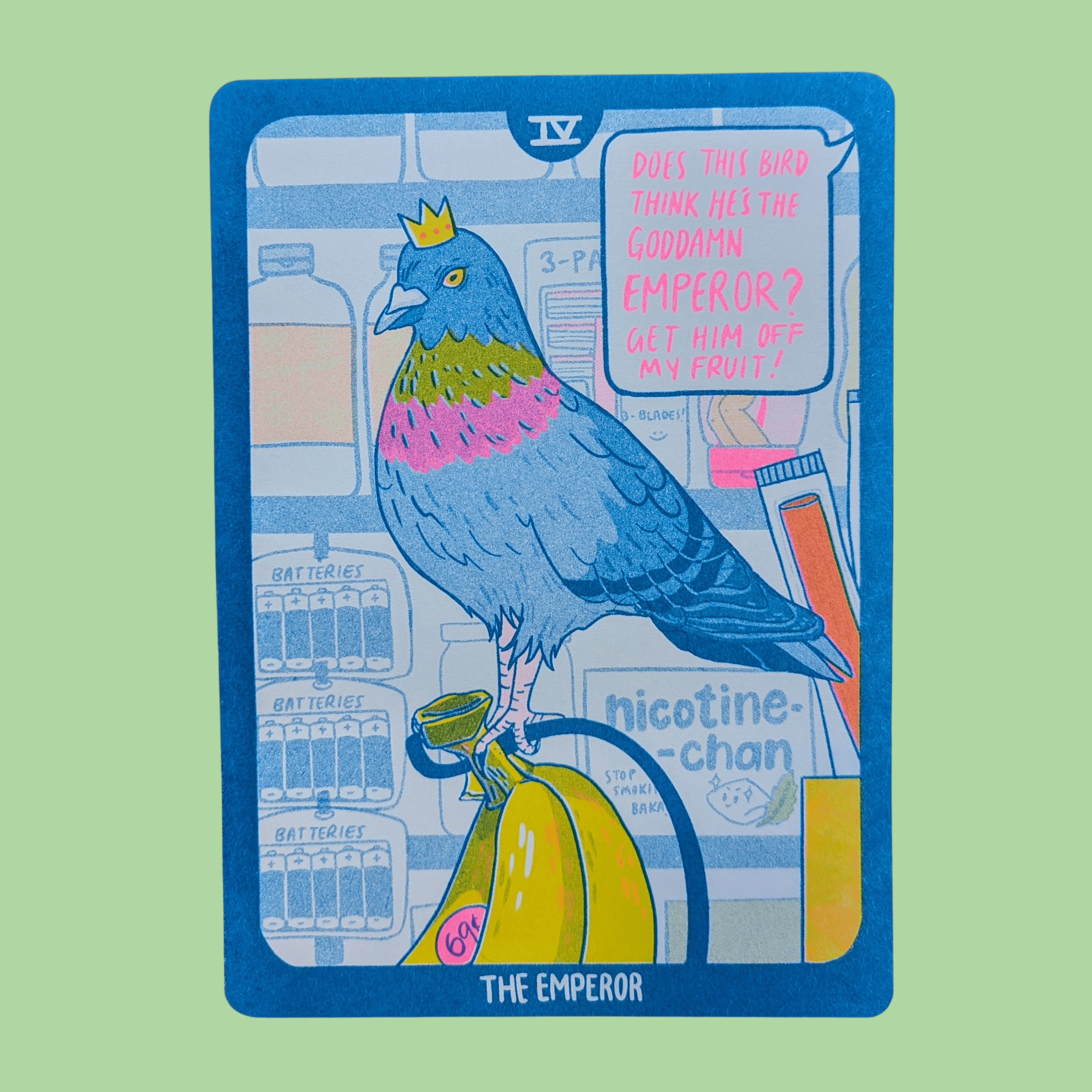Christina Hu is a Berkeley-based printmaker who loves food, women, and being Chinese—and exploring all these things through risograph art. Her work celebrates and uplifts her queer and Asian-American communities through colour, humor, and nostalgia. She makes prints, zines, postcards, stickers, and more.