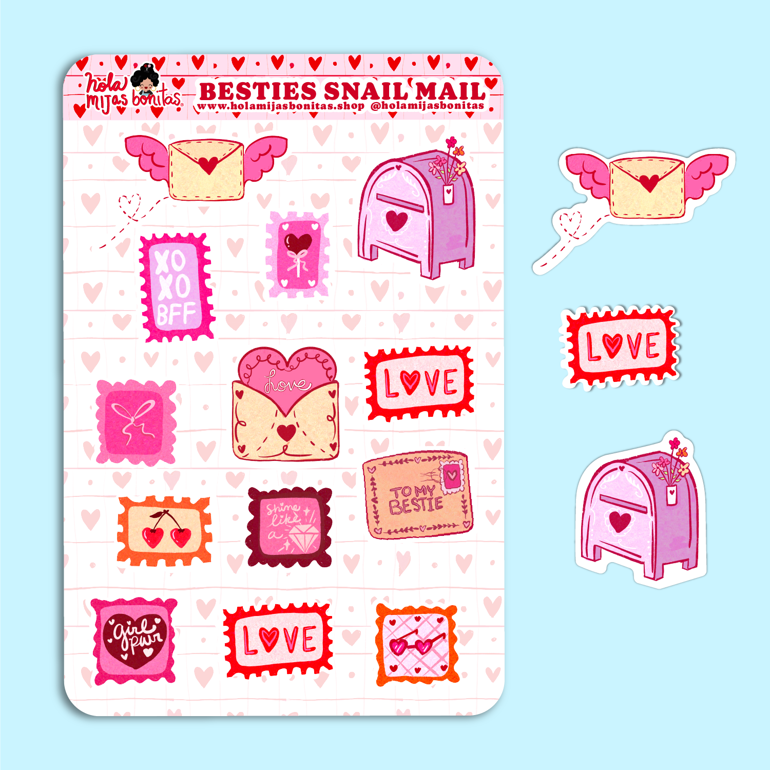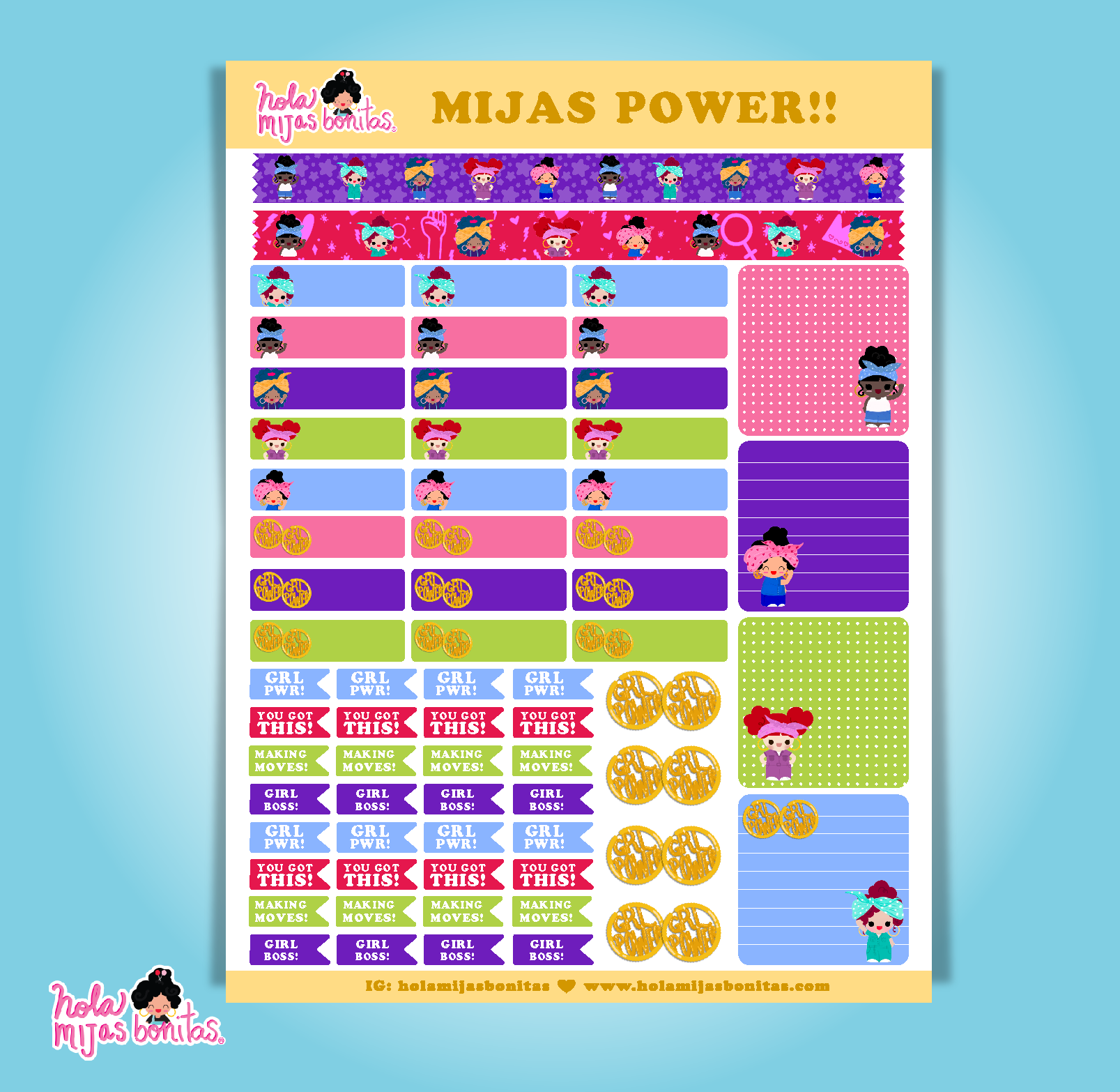 Hola Mijas Bonitas (Hello Beautiful Daughters), is a Latinx stationery brand that showcases the beauty of diversity, friendship and having fun through a range of colorful and cute hand-illustrated products. From notebooks and sticker packs to keychains and stamp sets, join characters Claudia, Amber, Mily, Rosa, and Lizbeth as they grow up in a neighborhood where everyone around them is unique and beautiful! ABOUT THE ARTIST & FOUNDER: Claudia Ramos created the Hola Mijas Bonitas brand and its' characters to share her own diverse, lively experiences growing up in Los Angeles. The artist behind all the illustrations seen within the brand, Claudia's goal is to bring inclusivity and diversity to the world through her products. Claudia is proud to be the first generation in her family, originally from El Salvador, to graduate with a B.A. from CSUN and be an entrepreneur."I want to spread joy and happiness to the world!"