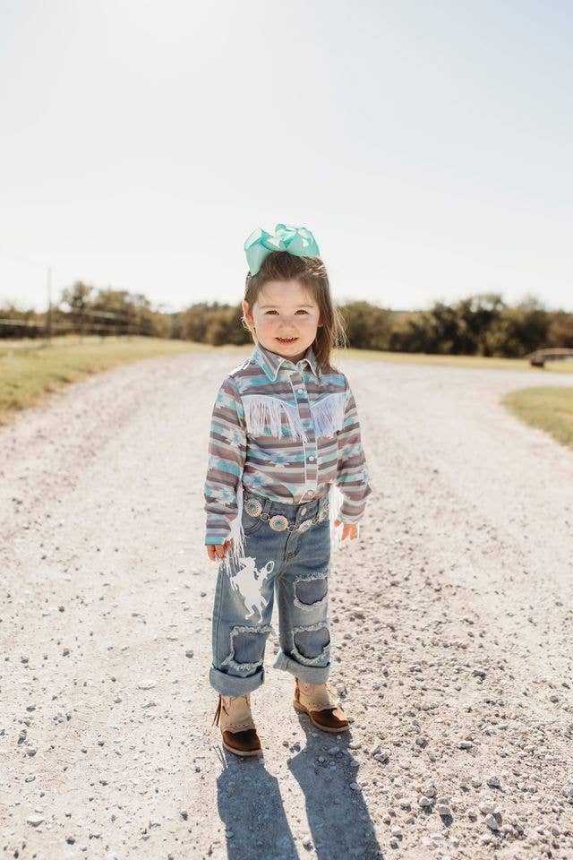 Welcome to Shea Baby – where the magic of Children's clothing meets the flair of Western fashion! Born from the heart and soul of recording artist, cowgirl, and designer Shea Fisher-Durfey, inspired by Shea's own journey as a proud mom alongside her husband, World Champion rodeo athlete, Tyson Durfey. Shea Baby creates the perfect clothing line for infants and kids. Fueled by the desire to offer parents more than just cute clothing, Shea envisioned a brand that marries affordability, comfort, style, and uniqueness. Our clothing sizing ranges from 3-6 months to size 7 Kids, ensuring that every stage of a child's early years is met with thoughtful, fashionable western choices. Our line has clothing & footwear for both Boys and Girls. Each piece is a testament to Shea's dedication to bringing you not only a range of affordable and comfortable options but also clothing that stands out with its stylish and unique designs.