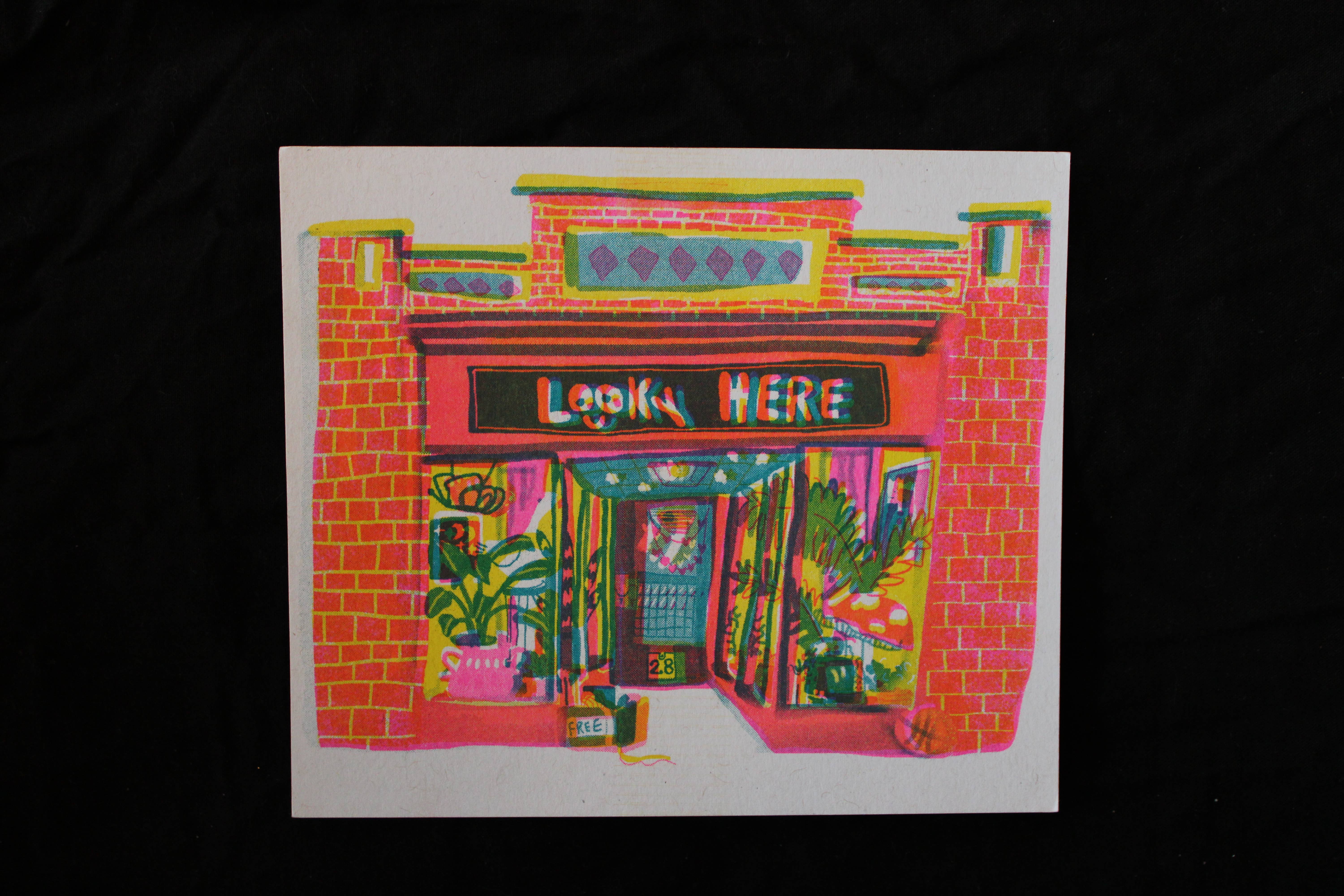 Looky Here is an artist-run 501c3 organization in Greenfield, MA, USA, with a mission to keep art affordable and accessible and to create opportunities and resources for artists. Our Risograph press publishes poetry books, art books, a literary and art magazine, essays, journals, calendars, cards, prints, and broadsides by artists we consider under the radar, outside the norm, and responsible for work that elevates and celebrates art as an integral part of life. Our style is highly ornamented, prioritizing analog work, hand-drawn and handwritten elements. Looky Here’s publications document the collective culture surrounding our shop and provide tangible, saleable objects that support our greater mission: making art affordable, accessible, and abundant by encouraging artistry over apathy. I hope you enjoy the work from our resident artists! Each purchase supports our mission to further arts access in rural Massachusetts!