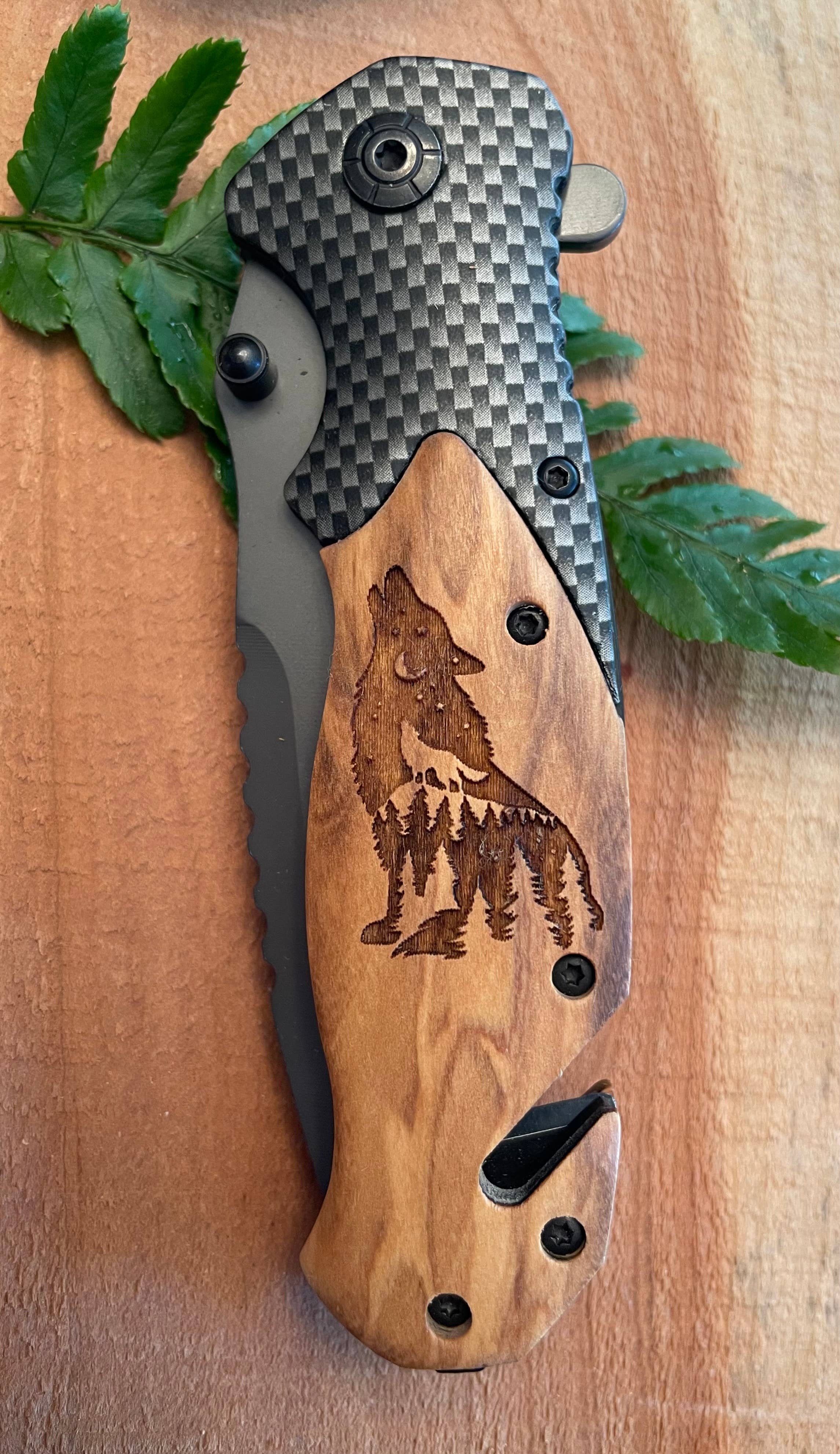 ~~~~~~~ WELCOME!! ~~~~~~~~ Current Lead Time is 2-4 days ~~~~~. I appreciate you being here, whether you are buying or browsing. When you purchase from Quail Tail, I feel like we are partners, working together to help each other's businesses grow. If you have any questions or requests, just drop me a note. You can now find over 240 designs and I'm always looking for more to add. Are you interested in a special topic to suit your business, community or region? Let me know what graphics will appeal to your customer. My maker's heart loves the natural and earthy beauty of wood. Combine that with laser engraving, and the options become endless. I am proud to have joined the Faire family in January 2022 with my bestselling item. Made with olive wood handles and titanium coasted stainless steel blades, men and women both, love getting these knives for themselves and giving them as gifts. The grain on every handle is unique, making each a one of a kind. I repurpose packing materials when they are available, so you may get reused bubble wrap, or my local sales paper in your shipping box. I also get packing materials from a local thrift store so they don't have to throw it away. I engrave the knives 1-4 at a time, these knives are not mass produced, and they are all engraved in Carrollton, Ga.