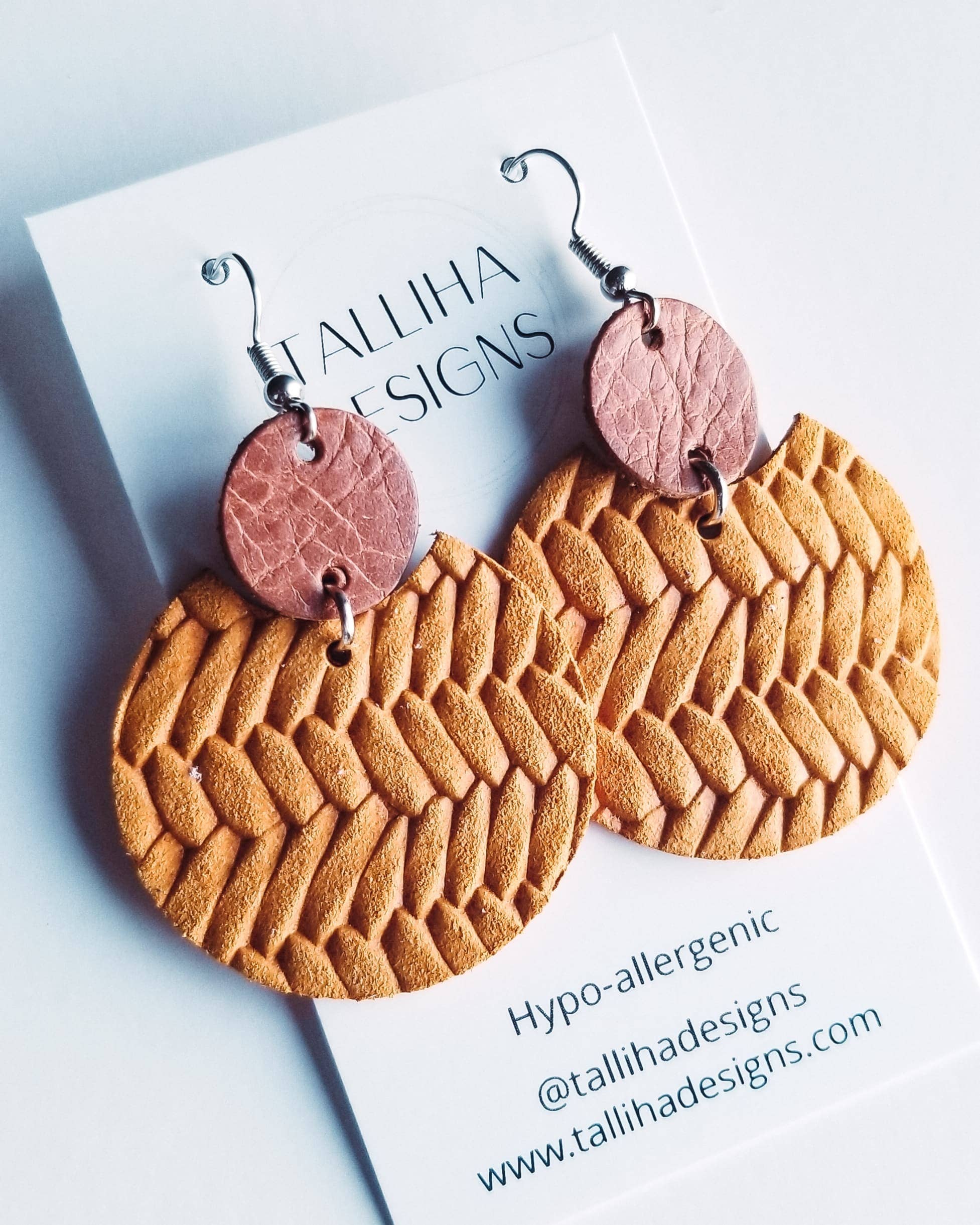 My name is Tami and I am the owner of Talliha Designs. I have always had a love of jewelry and started young by making beaded necklaces, bracelets and anklets to wear and sell to friends and with my parents when they set up at some local craft shows with my dad's woodworking business. I guess you can say I have a little bit of creativity in my blood! I have been making jewelry since 2018 and use a variety of different mediums, including genuine leather, precious metals, hand poured resin, faux druzy, wood and macrame. I love to incorporate various mediums in my pieces to make unique statement pieces. All pieces are made with hypoallergenic, lead and nickel-free hardware. I believe in life long learning and continue to evolve and change as I learn about new processes and methods. Thank you for being a part of this journey with me!