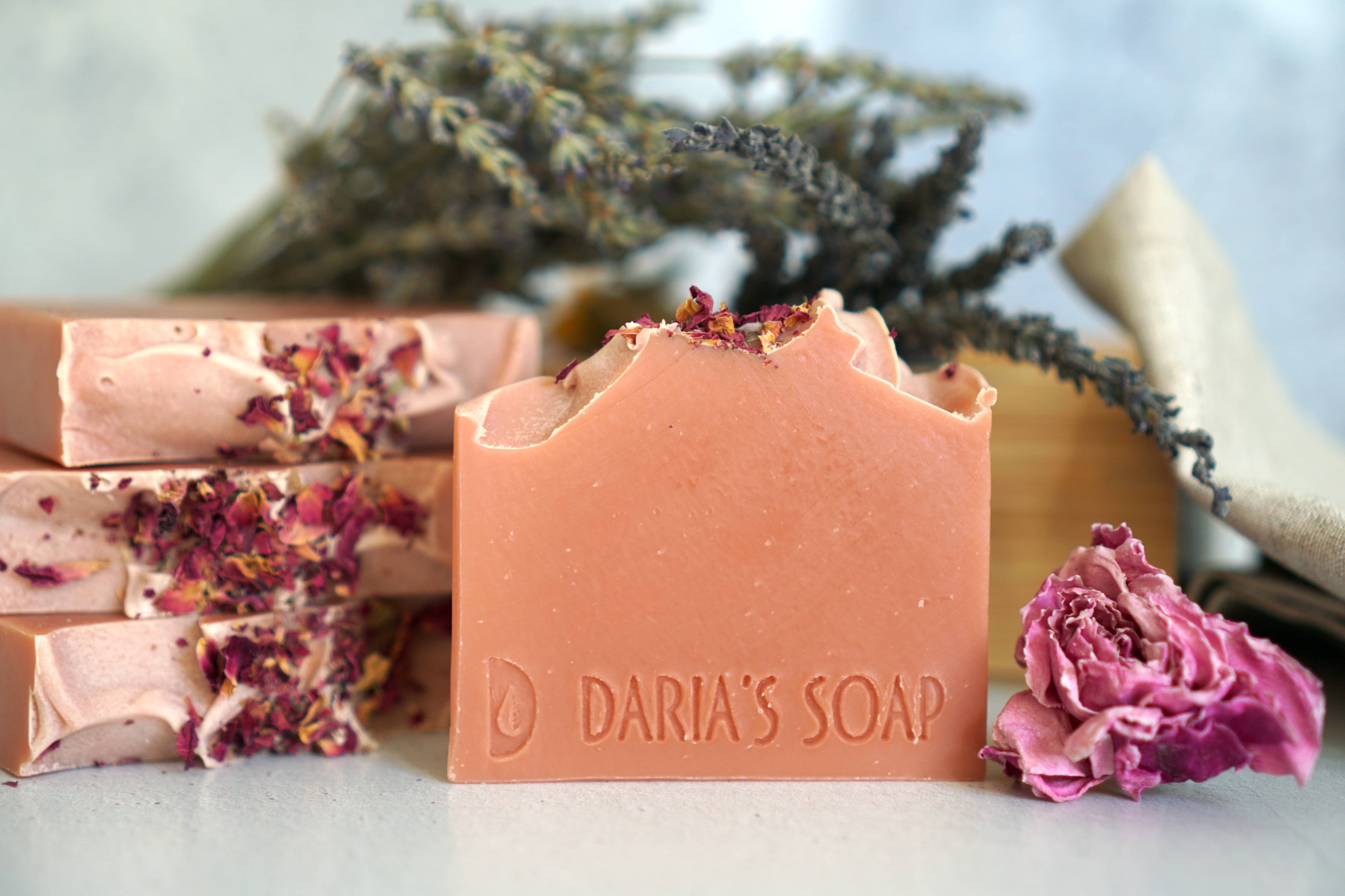 Daria’s Soap LLC was inspired by summers spent at a quiet family cottage, gathering chamomile and wild herbs and learning the art of herbal infusions from my mother. Those early experiences shaped my appreciation for natural materials and slow, intentional living. Today, that inspiration lives on in our small-batch, handcrafted soaps. Each bar is made using the traditional cold process method and cured for a minimum of four weeks to create a firm, long-lasting bar. Our formulas are thoughtfully developed with plant-based oils, clays, and botanicals. Many batches feature herb-infused oils, honoring time-tested practices and giving each soap its own natural character. Designed to feel gentle and balanced for daily use, our soaps are crafted with care for customers who value simple, elevated self-care rituals. With gratitude, Daria & David