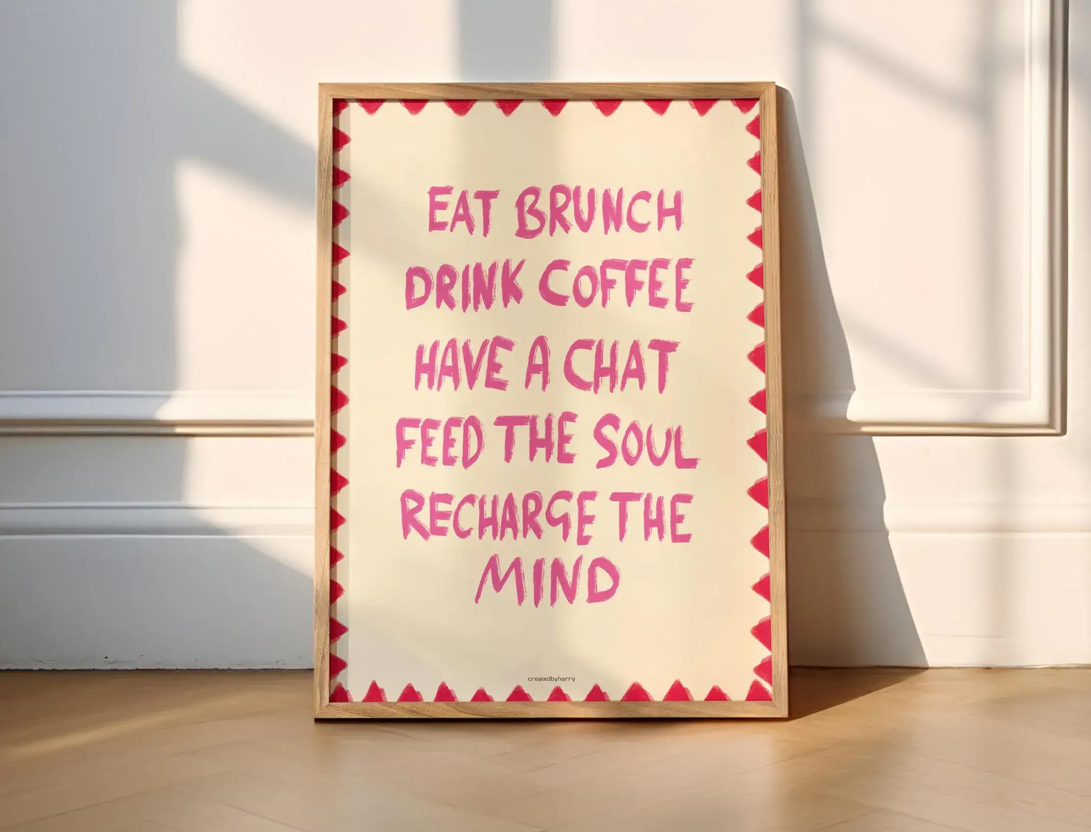 Createdbyharry is dedicated to brightening up walls with fun, bold and vibrant wall art. Born in 2024, the brand began when Harry felt as if he'd lost his creative spark and started illustrating for fun and posting his drawings online. The fantastic response reignited that spark and the rest is history! Since 2024, the brand has grown through attending notable markets such as Salad Days and being stocked in independent retailers around the UK, Europe and USA. At Createdbyharry, we release new print collections every month, inspired by moments, feelings and interesting topics, such as mental health, food and drink and British culture. Createdbyharry's stockist orders are printed on demand at our studio in Oxfordshire. All designs are printed on 230gsm smooth matte recycled paper, packaged in recycled cellophane sleeves and shipped using eco-friendly materials. In November 2024 & 2025, Createdbyharry collaborated with Curzon Cinemas on a bespoke mini print collection. The Createdbyharry Pop Up Shop took place at Better Things London in April 2025, bringing together a selection of small businesses to advocate for shopping small.