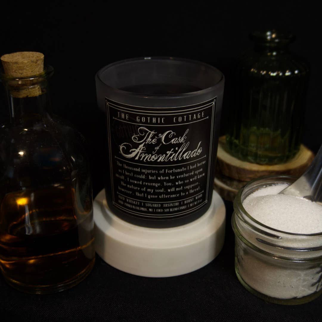 Welcome to The Gothic Cottage! The Gothic Cottage was founded on the belief that everyone should have delicious, clean-burning candles of luxury that aren’t harmful to our health, wrapped in a hauntingly beautiful aesthetic anyone can enjoy every day of the year. We are Megan and Cody, a wife and husband team, whose purpose in life is to bring happiness to the world through our creations. Megan is the candle maker and ideas behind every concept and Cody is the artist behind all of our artwork. Every candle label that you see was painted, sketched and designed by Cody. Not only are they candles, they're also works of art! We're so glad you've stopped by and hope you find the candles of your gothic dreams within our shop.