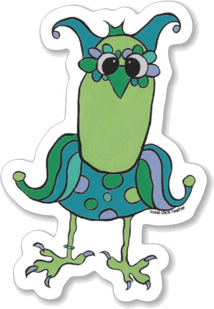 I am a very happy chipper upbeat artist! I love to draw each sticker and they all have a story. This entire journey has come full circle since I was younger and carefree. The South Carolina coast was, and still is my dearest friend. Year round I will collect armfuls of shells for reference and study. We reside inland and weekends on the ocean. They both have a strong influence on the stickers I make. To be able to sit and sketch, erase, sketch again is very rewarding and getting the colors to dance together is just magic. I create every day-really every single day. It is not like work for me. It is just very rewarding. These wood tourist ornaments / stickers will enhance your shop tremendously. The unique designs and colors sell very well. I look forward to working with you.