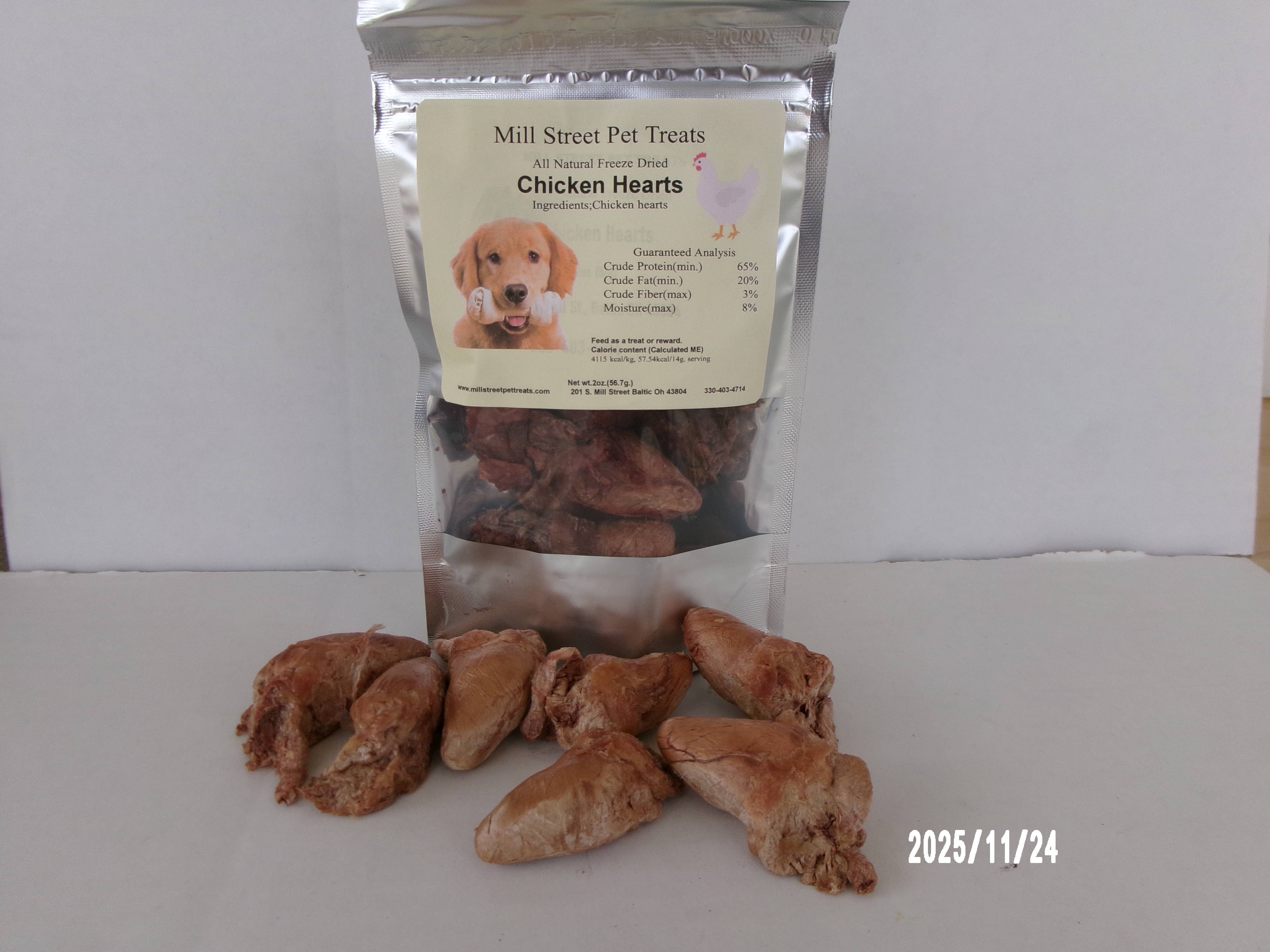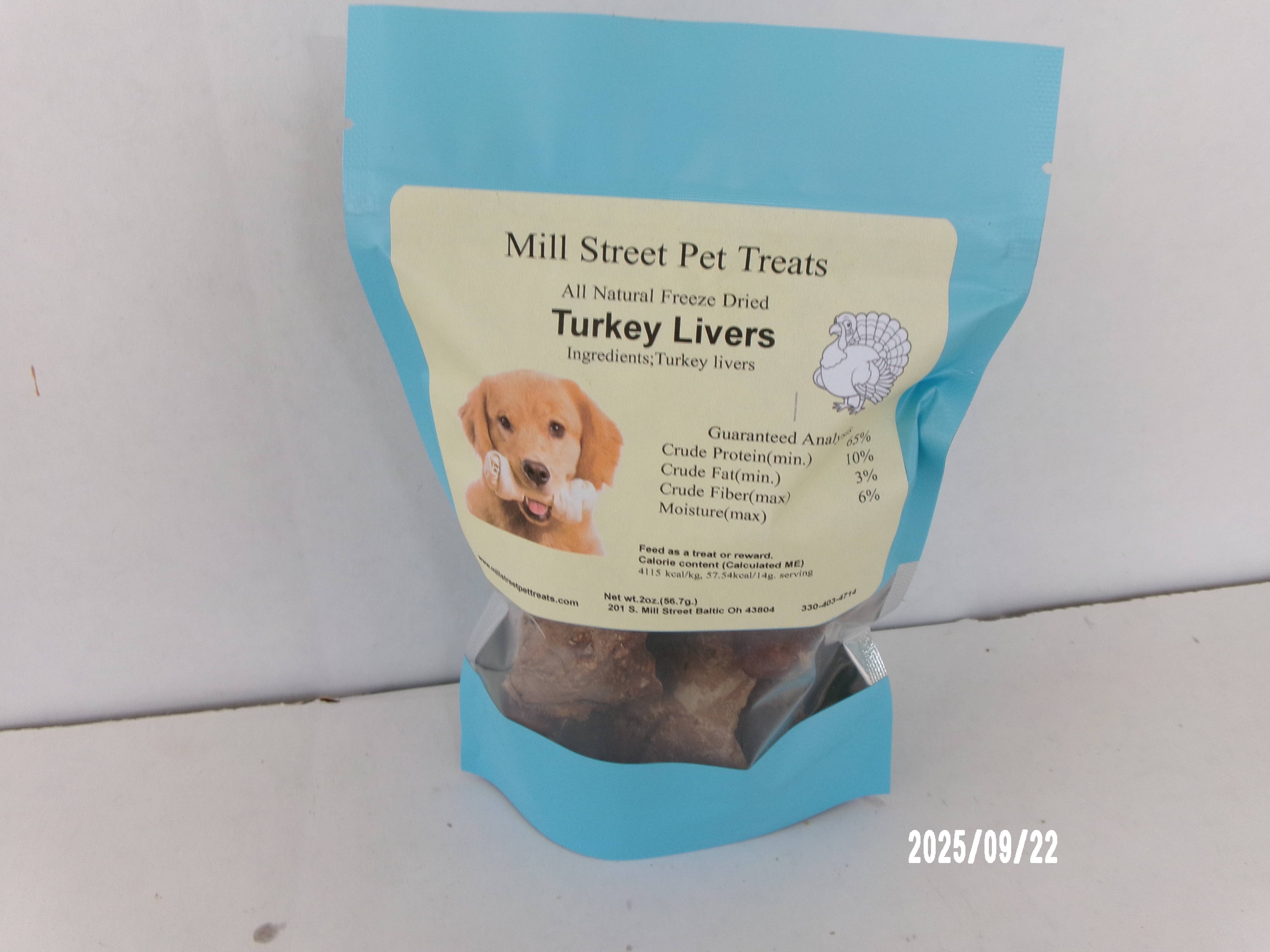 Mill Street Pet Treats is a side business from Pleasant valley poultry and was established in 2025. Our Mission is to provide your furry friends with All Natural Dehydrated/Freeze Dried chew/treats that do not have any artificial or added ingredients. Our treats are dehydrated/freeze dried in small batches and packaged by hand to ensure Quality and freshness.