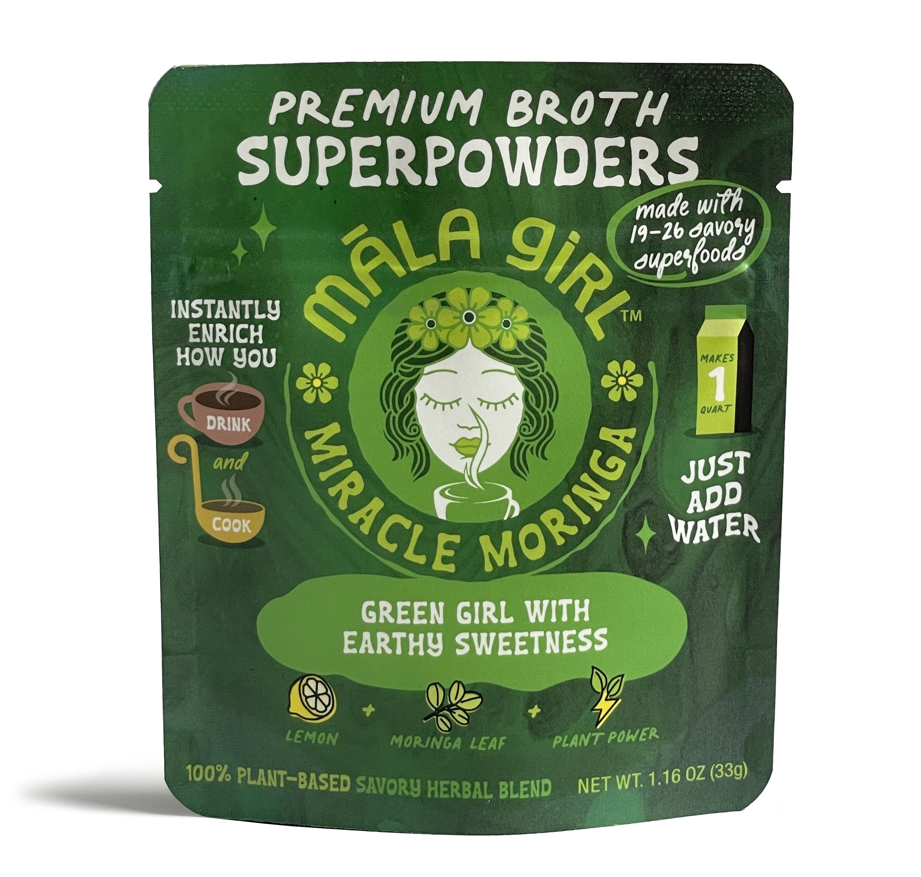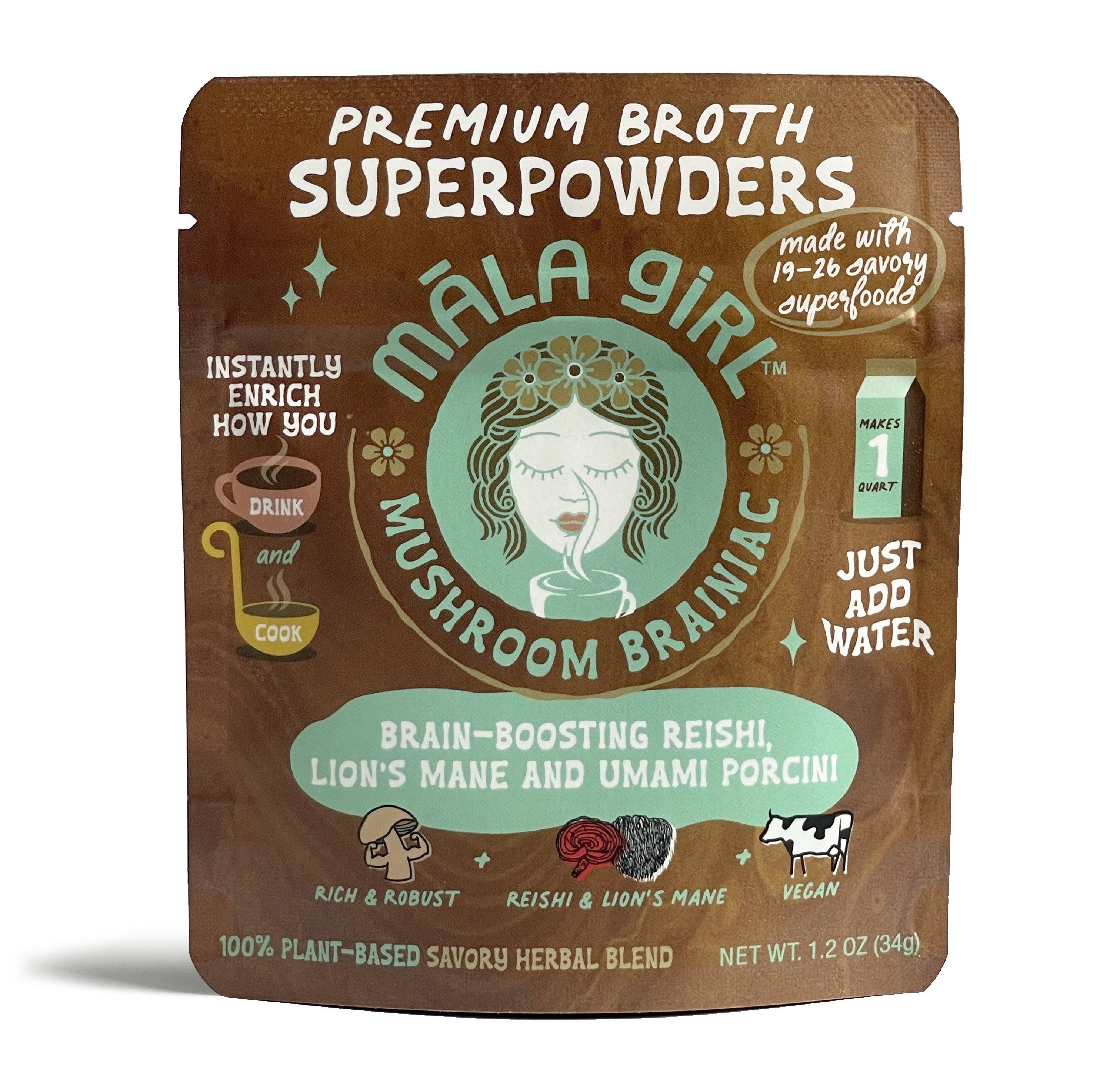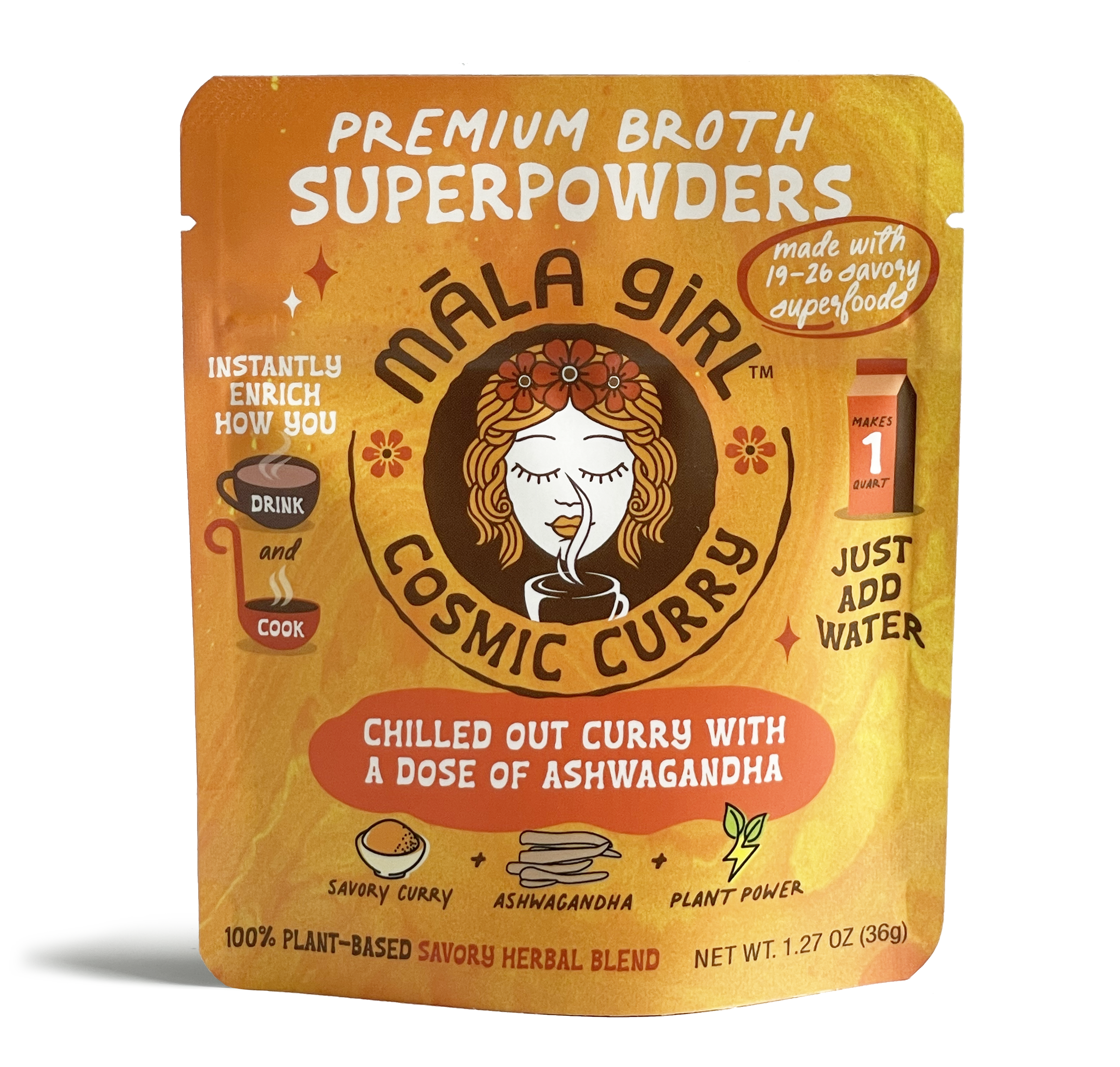 Meet māla girl, your future savory soulmate. Premium broth superpowders that bring a new approach to instant. Māla Girl connects our cravings with real ingredients our bodies deserve. Six feel good flavors of culinary personalities each with their own superpower crafted from 19-26 single origin or organic savory superfoods, nothing else. We get it plants are good for you, we're here to make it effortless, versatile and delicious along the way. Māla girl is a free spirited brand that's: -vegan -gluten free -soy free -dairy free -gmo free -corn free -artificial free When flavors are made with ingredients that are known to help promote: -sources of antioxidants -reducing inflammation -boosting overall immunity -sources of vitamins and minerals -stress blaance -reducing prep in the kitchen. māla is Hawaiian for "garden". Each flavor is so garden good, you'll want to add it to everything you eat, drink and cook. Feel good flavors simply taste better. Cheers to sipping and simmering together soon! 😘 māla girl