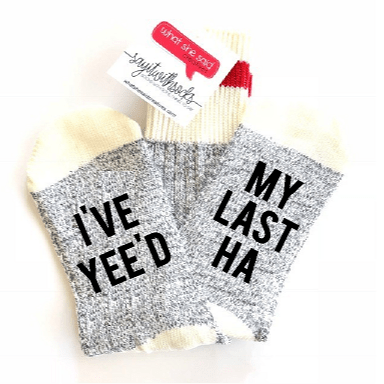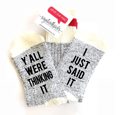 What She Said Creatives was started on a whim while I was on the quest to find a great greeting card. I wanted one that wasn’t all flowers and sunshine but also wasn’t filled with super crude words or innuendos. I wanted something funny that wouldn’t make my Grannies blush, but would still give them a really good chuckle. What I wanted was Funny without the F-Word, and that’s exactly what I was able to create for you. Greeting cards quickly became more fun products including socks, parking cards, decals and gift tags that all featured a little bit of snark and a whole lot of happy.