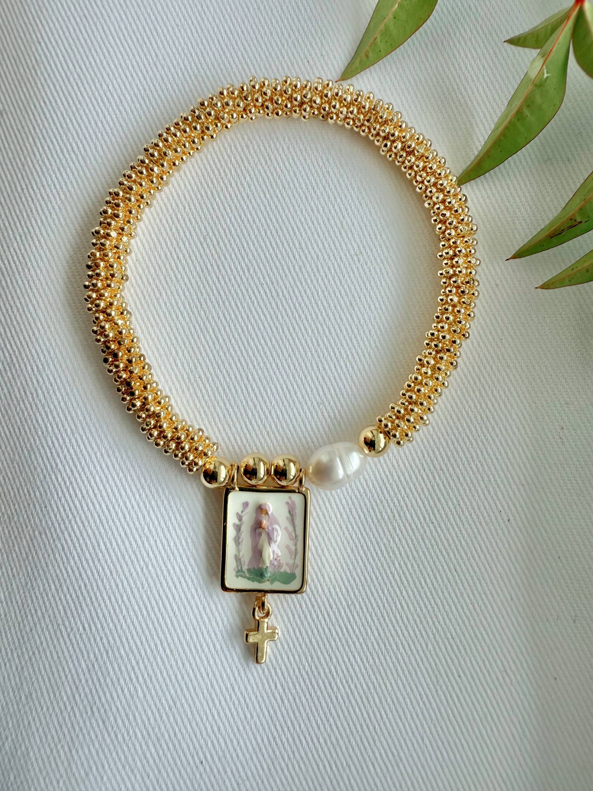 Harleigh Leonards Designs is a company designed and inspired Harleigh's desire to bring beauty into the world through the traditions of Christianity with a modern design. Each textile design is originally an acrylic painting hand painted by Harleigh first on canvas, digitized, and then printed onto the clothing. This all takes place in her home art studio. Each piece of jewelry is uniquely hand painted by Harleigh to represent Mother Mary, Jesus, or a Catholic Saint. What launched as a small business to just make ends meet while Harleigh stayed home with her three young boys, has now become a successful and continuous creative journey that is thriving. We started as a commission based painting business that has fostered into textile design, high quality art prints, and hand painted jewelry traveling to art expositions, conferences, and markets all across the United States. To serve as a subtle and beautiful reminder of our Christian faith will always be the mission behind Harleigh Leonards Design. Thanks for being here, I hope you find something that brings happiness to your shop!