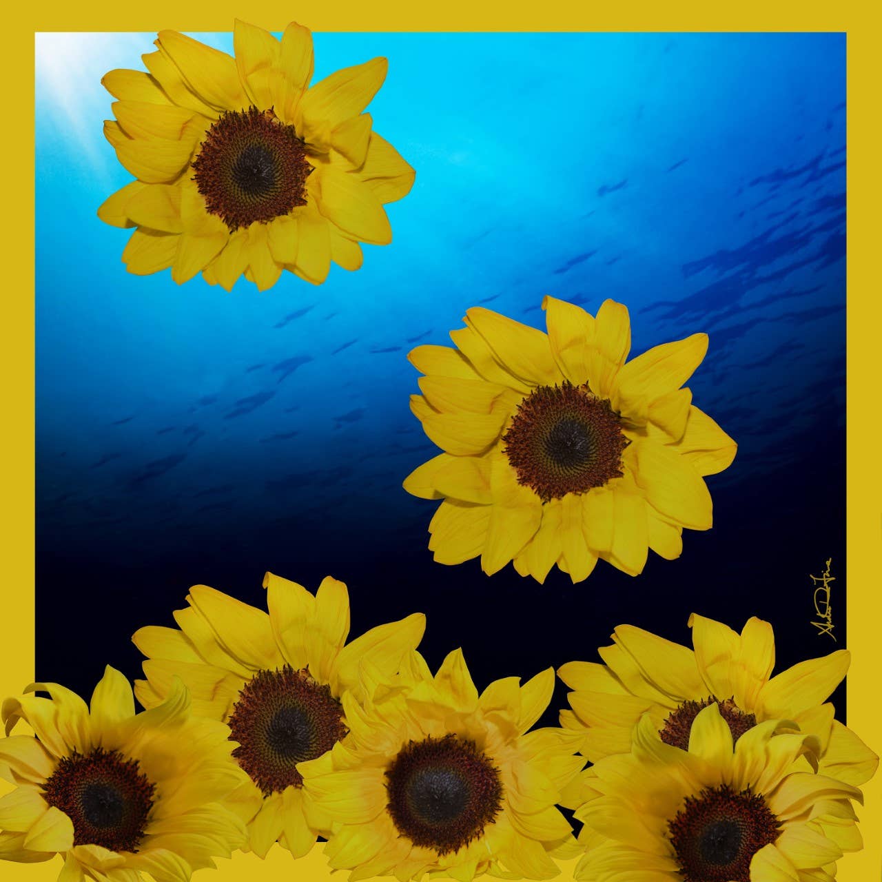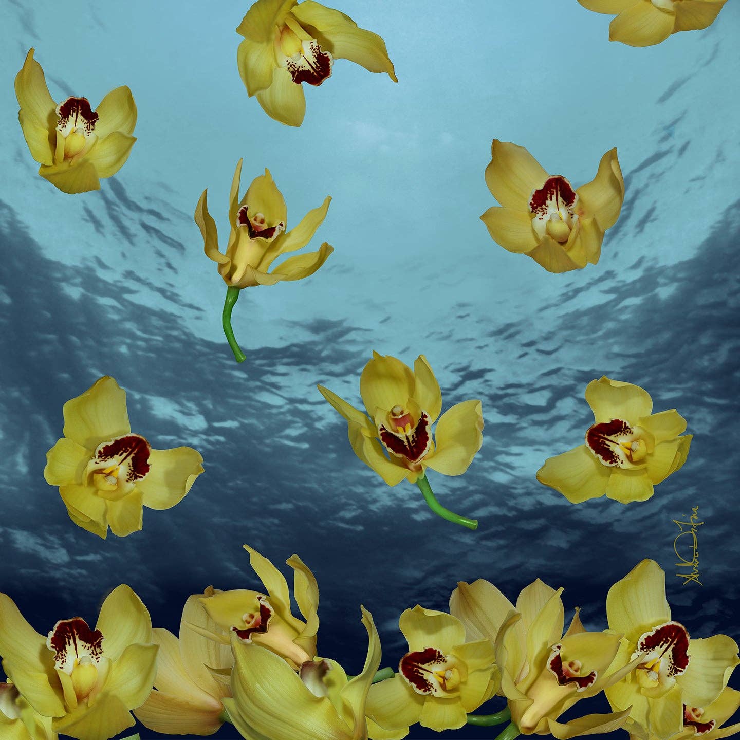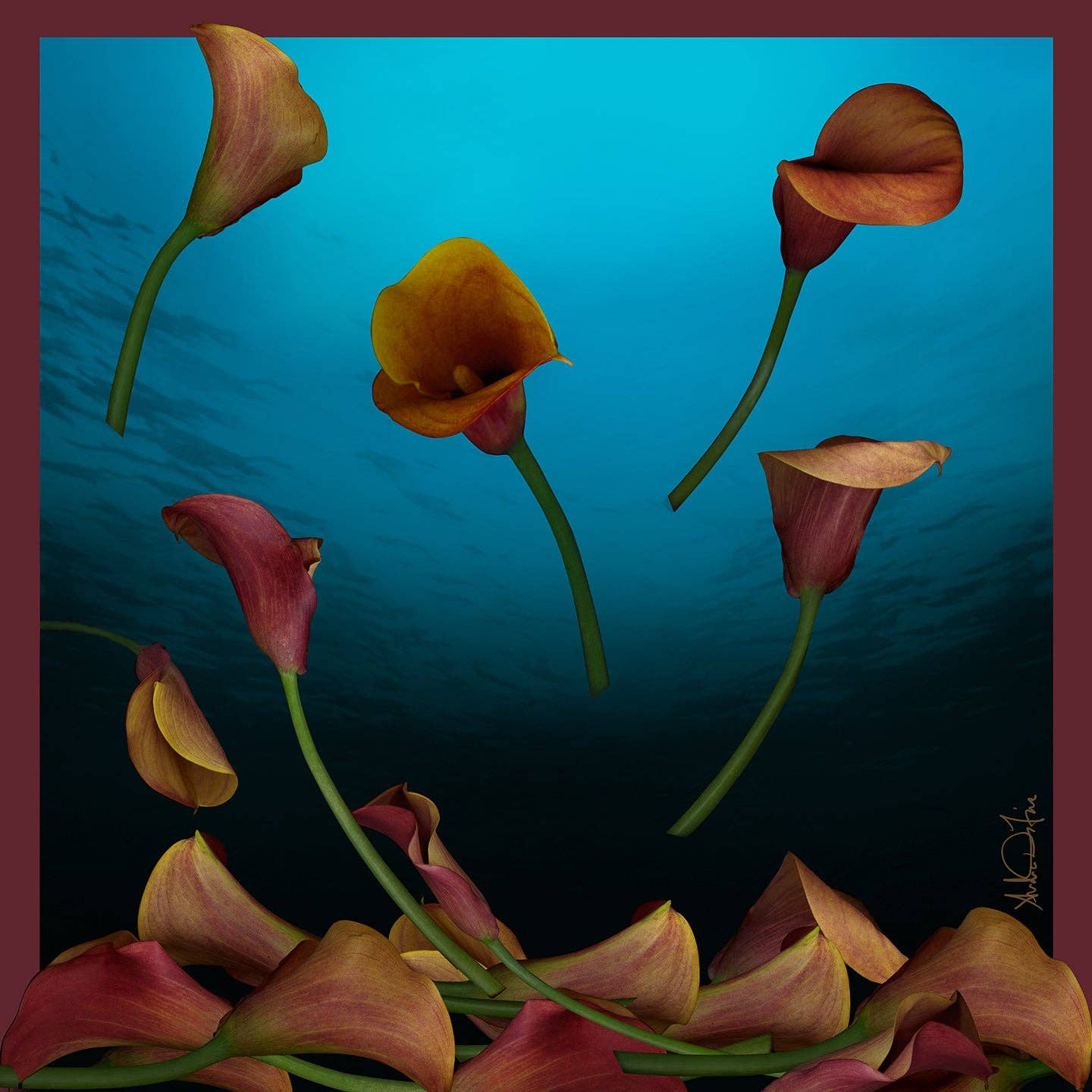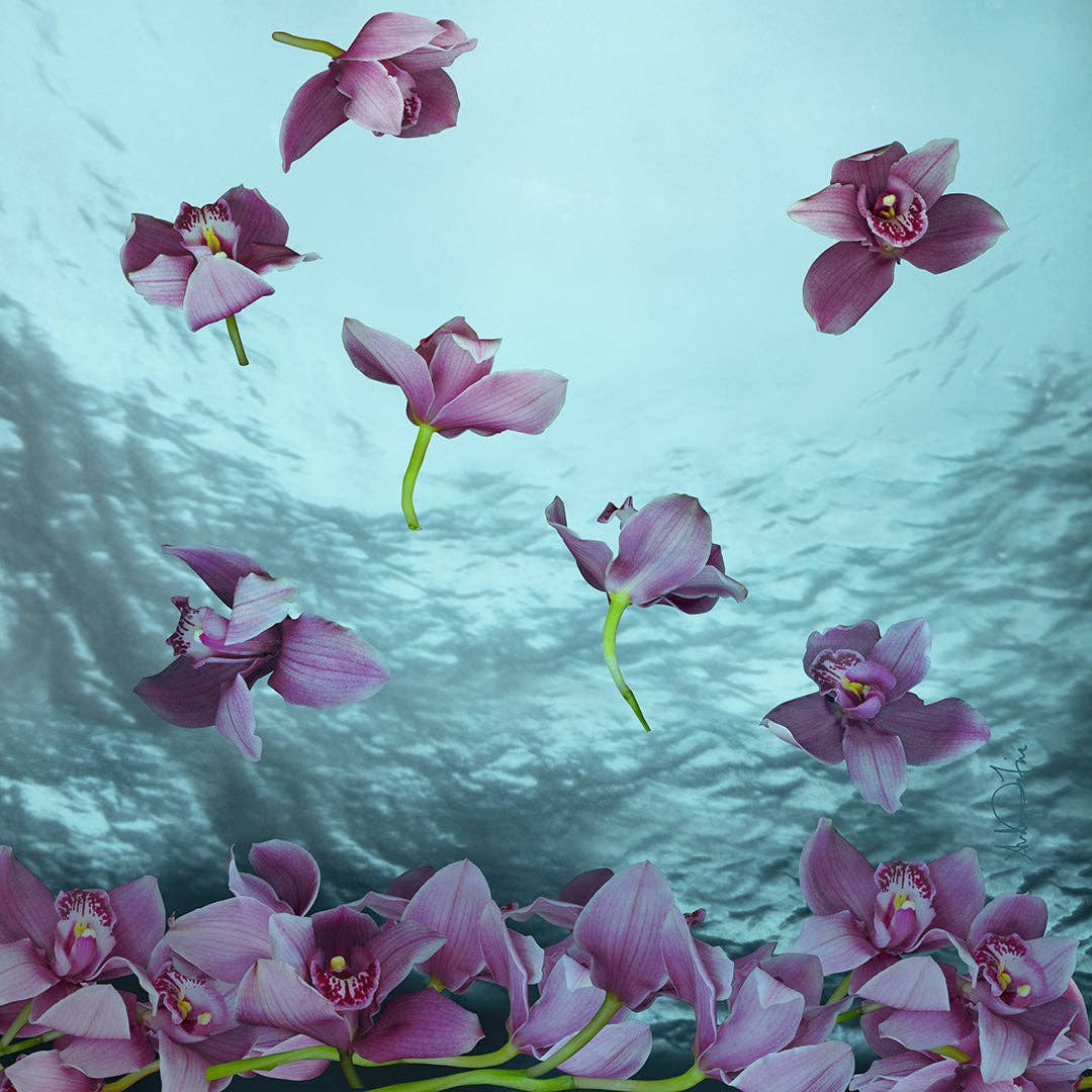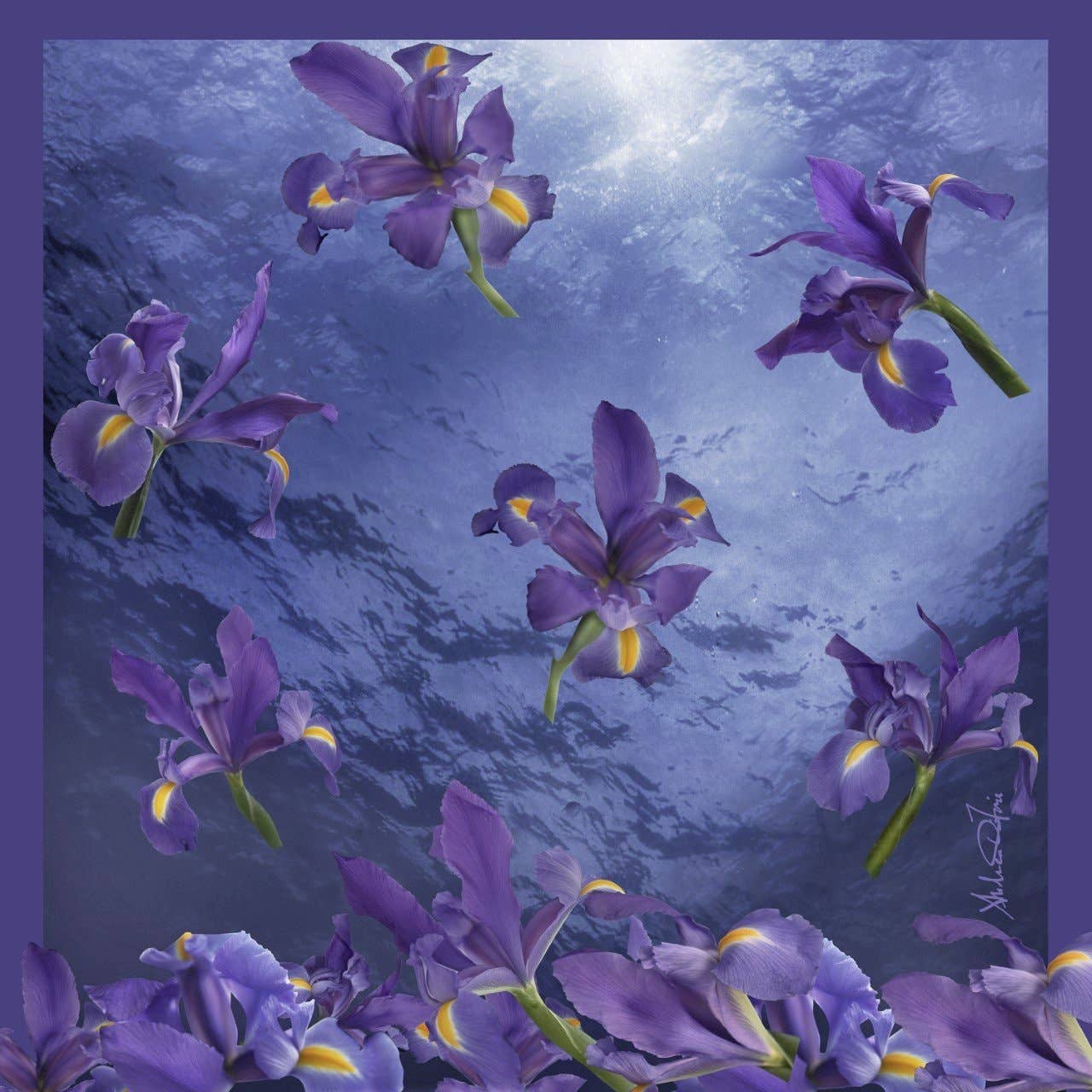 Growing up on the East Coast, I developed a passion for the ocean, marine life, and water at a very young age. That passion inspired me to create a series of artworks and my first collection of scarves called "Floral Seas." This series of artworks was the genesis for my silk scarf collection and subsequently, the start of my 2nd career. I'm dedicated to preserving our oceans, keeping them clean, and protecting marine life from being decimated by pollution. My Floral Seas series of photo collages (art prints) serves as a metaphor for how fragile life can be and illustrates the beauty and vulnerability in our ecosystem. I took that series and transformed it into textiles. The flowers and water are metaphors for our vulnerable ecosystem. The flowers drift gently through the water, settling on the ocean floor without disruption—representing the quiet, often unnoticed changes in our environment. My scarves are Oeko-tex certified and printed in the finest eco-conscious mills in Italy. DiFiore New York donates to nonprofits preserving ocean life. We also donate to animal shelters here in NYC. Andrea DiFore