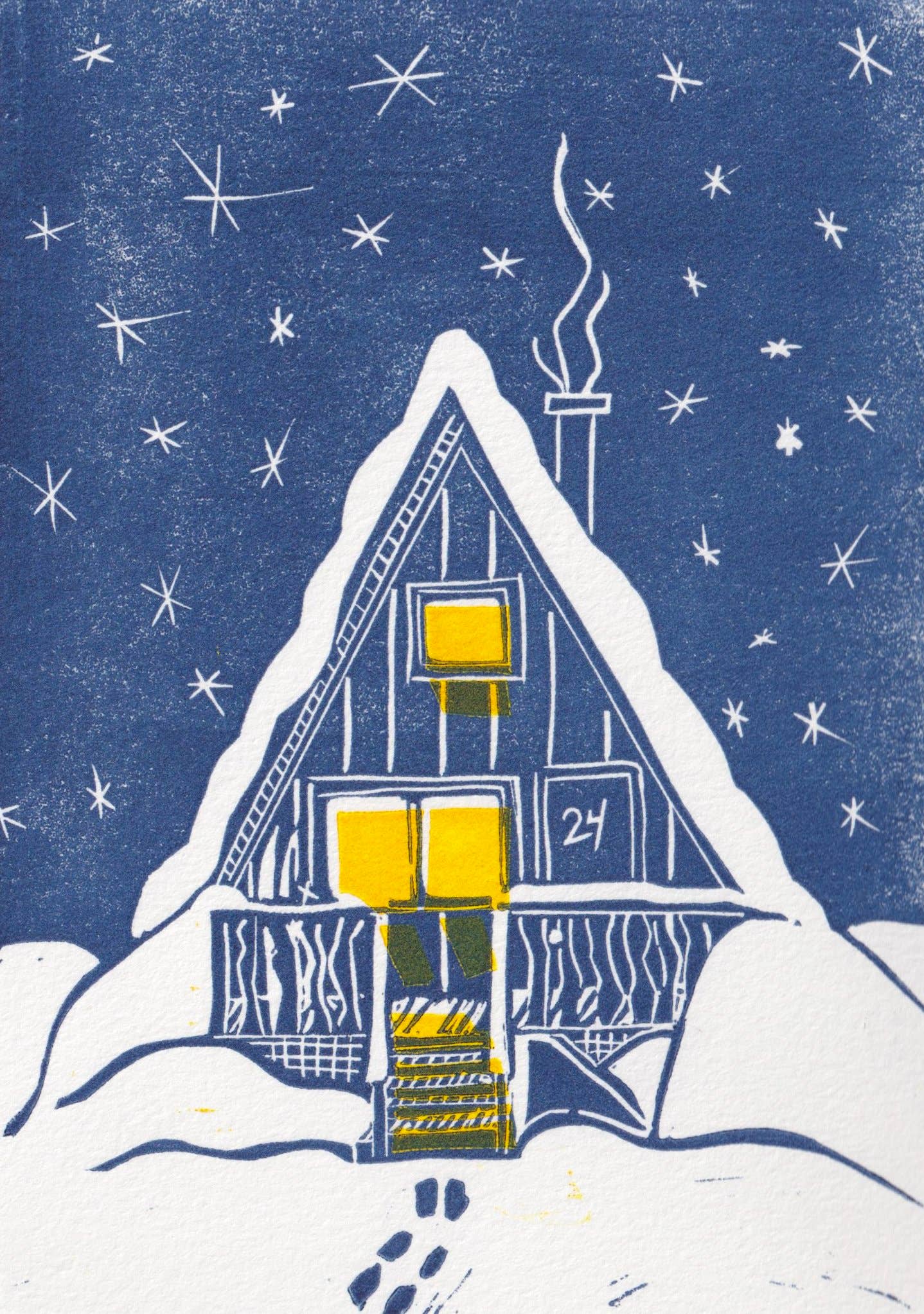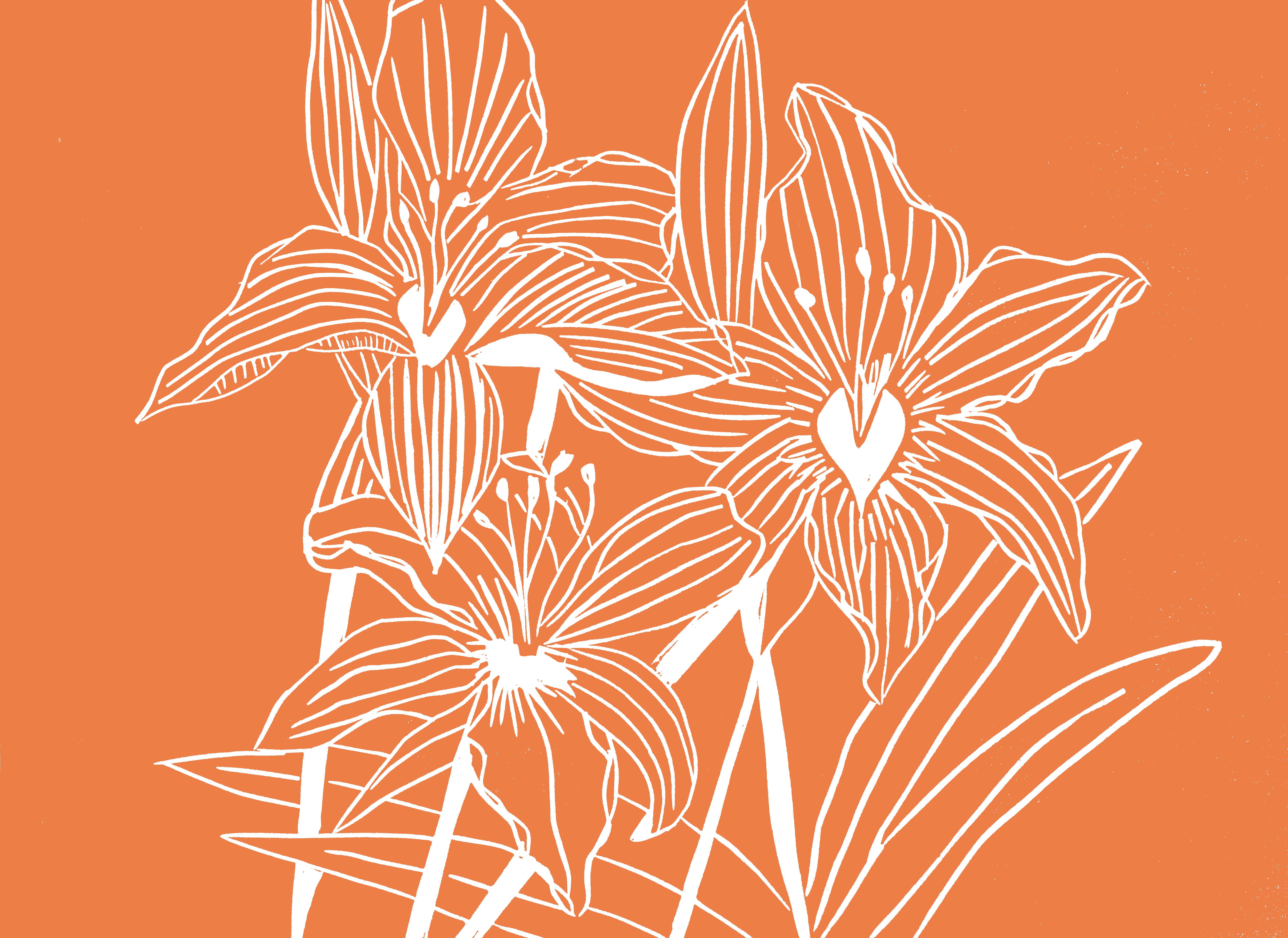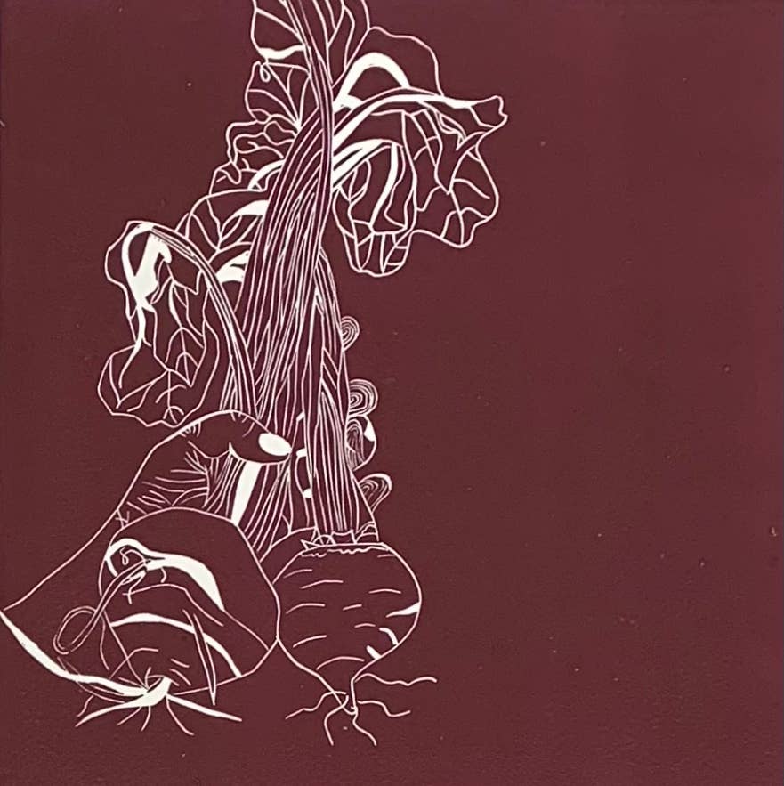 Hello! My name i s Charlotte Holt. I fell in love with printmaking while studying art in college and haven't looked back. I run a small business making beautifully simple but intricate colorful hand printed block prints and cards. My work has always been a point of joy and connection for me. I think about nourishment and community and connection and place. The beauty of our hands and what we create with them, the mark of the maker. In my work I strive t o encapsulate the tenderness of the human experience and our relationship to the natural world. All my work is original, drawn and carved from moments from my life that I photograph, memories or m y imagination. I primarily hand carve and print my cards and prints from battleship grey linoleum blocks that I print on m y antique printing press that lives in my aunts 100 year old barn right outside of Philadelphia.