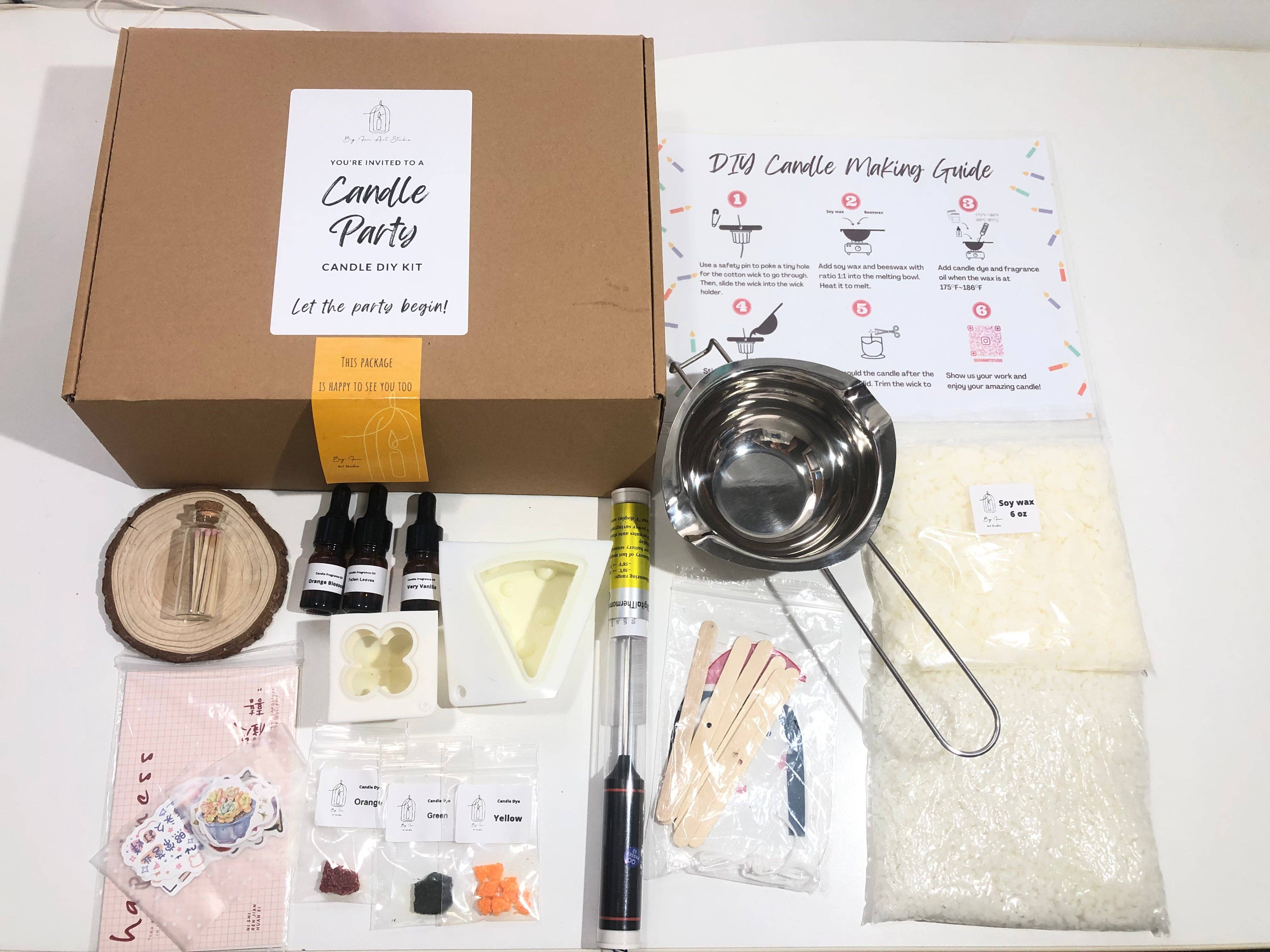 All Big Fan Art Studio candle collections are made from soy wax, bees wax and gel wax. Candles are made to order and every single one is unique. We choose premium fragrance oils for our candles and use high quality wicks. Some collections can be customized, just let us know what you want!