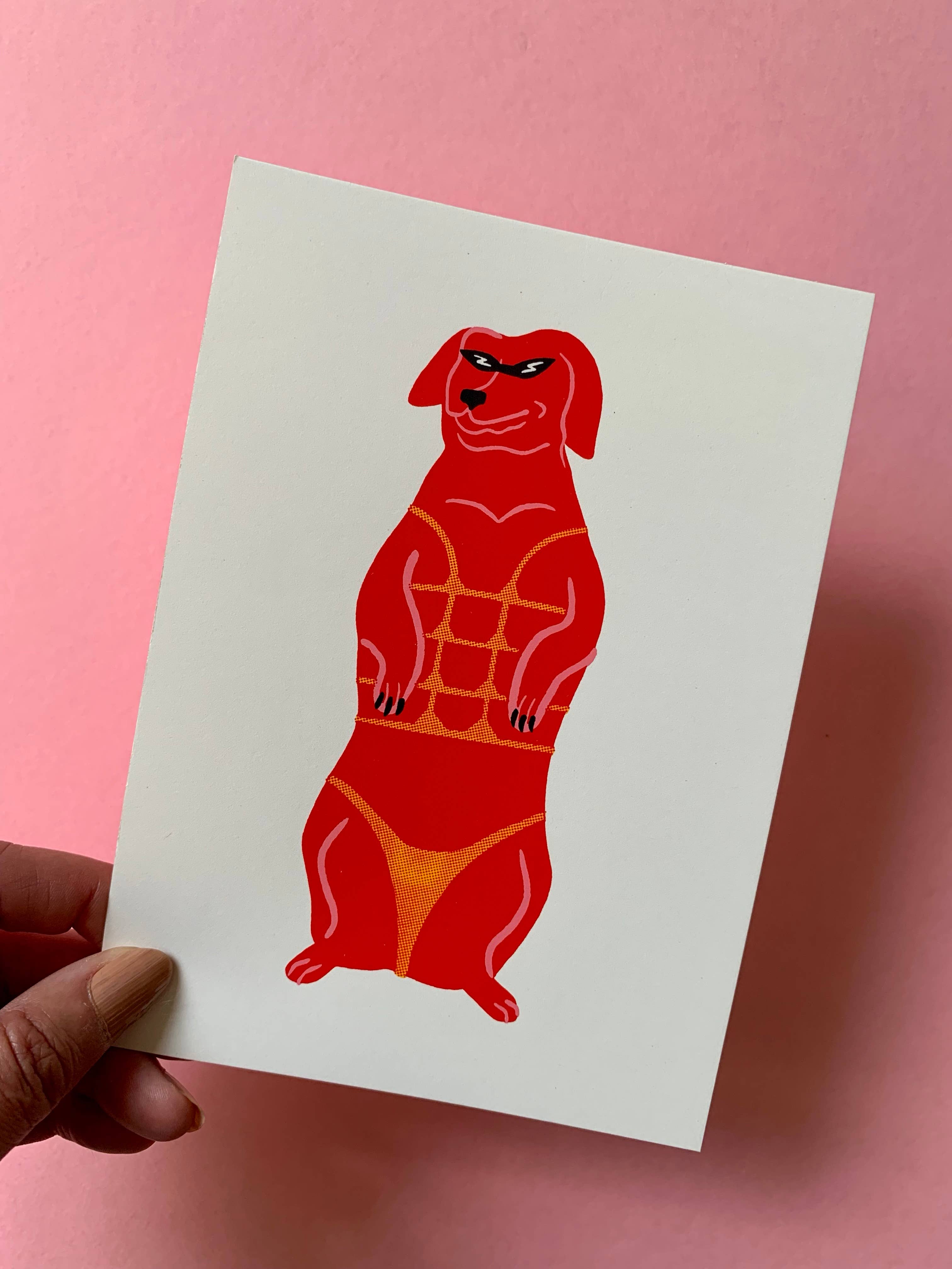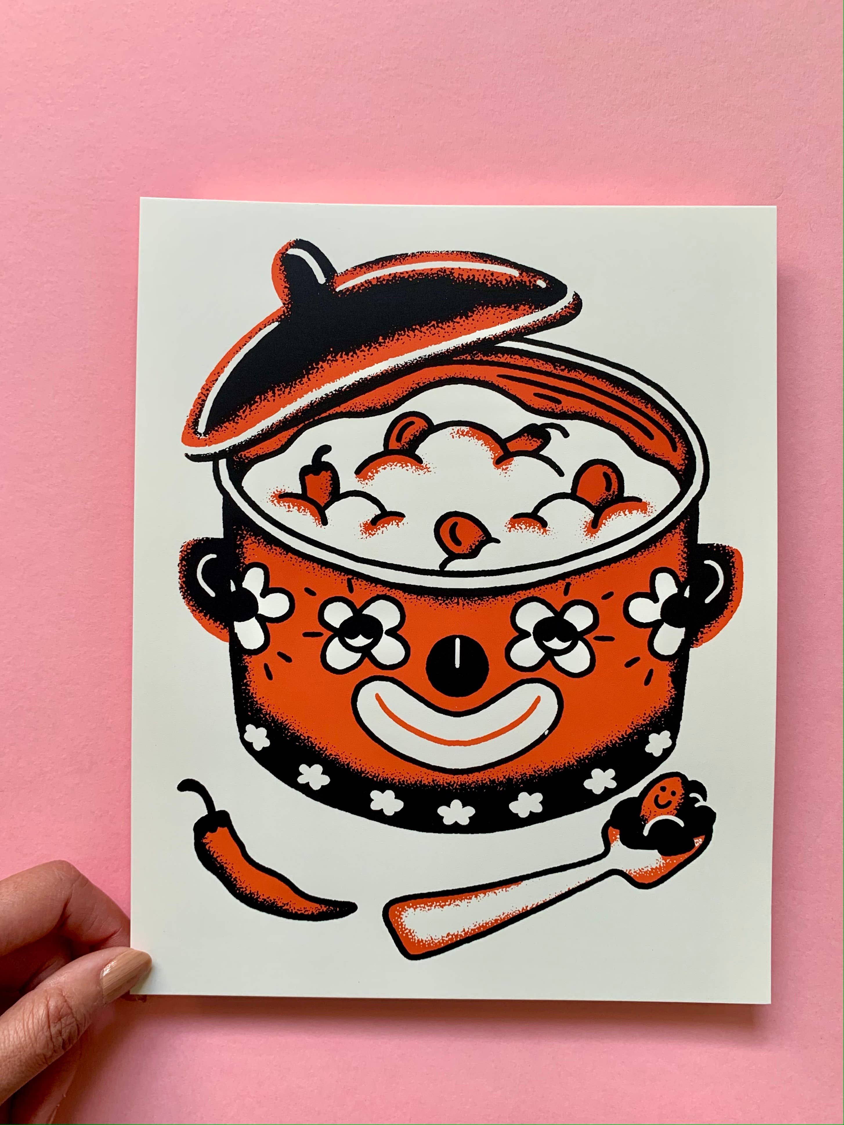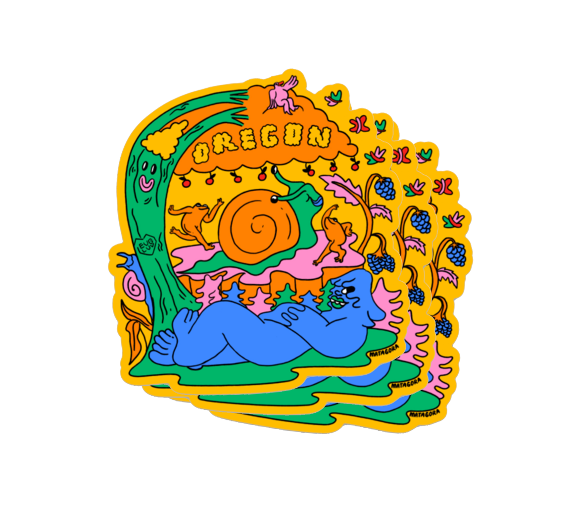 Welcome to the Club! I'm Rae Matagora, illustrator, designer and artist behind Matagora Club. I screen print all my work using water-based inks, a more environmentally friendly option compared to plastisol inks. My vibrant, playful style offers a colorful escape from the everyday, blending bold shapes with delightful absurdity into each piece. Eclectic, weird and wonderful!