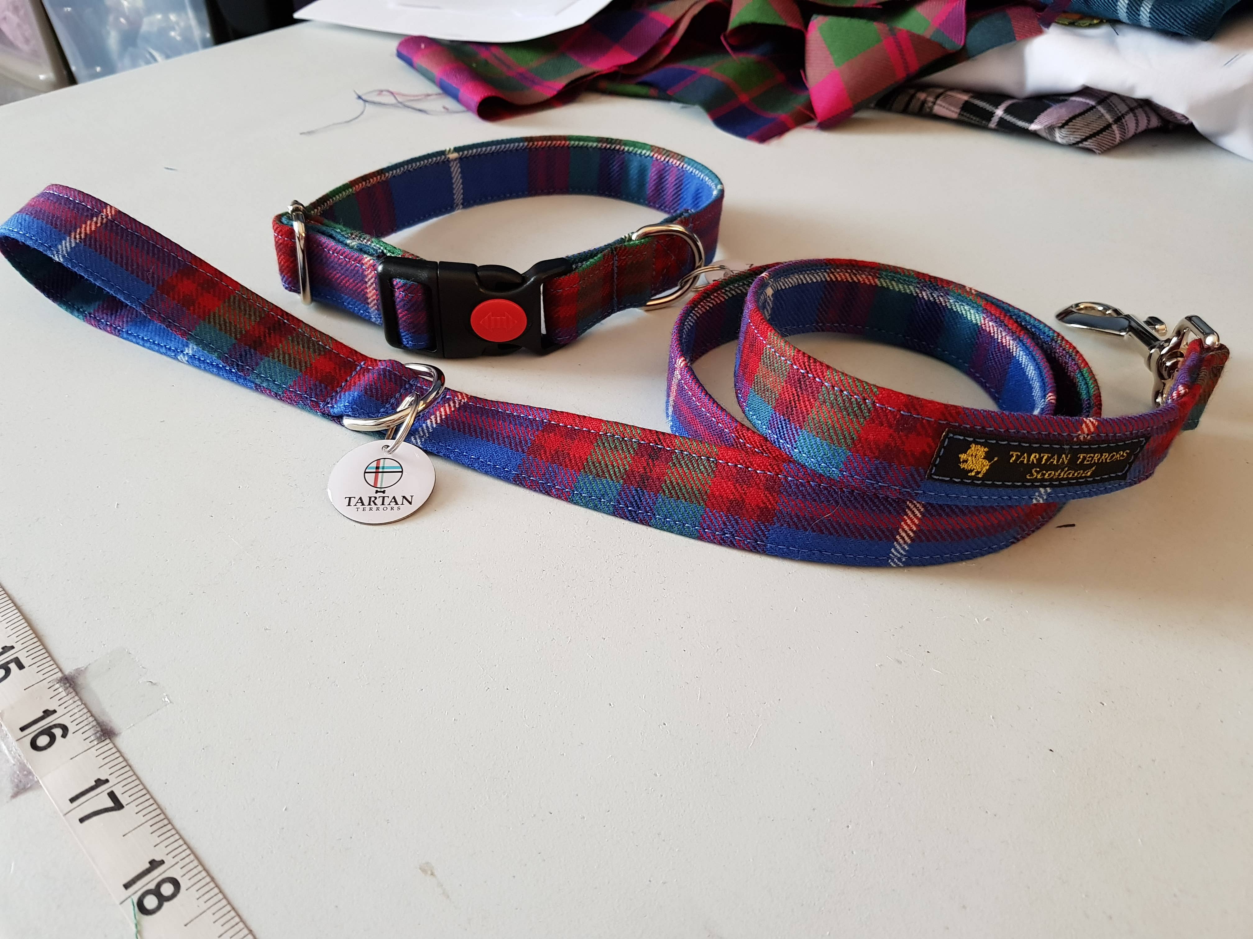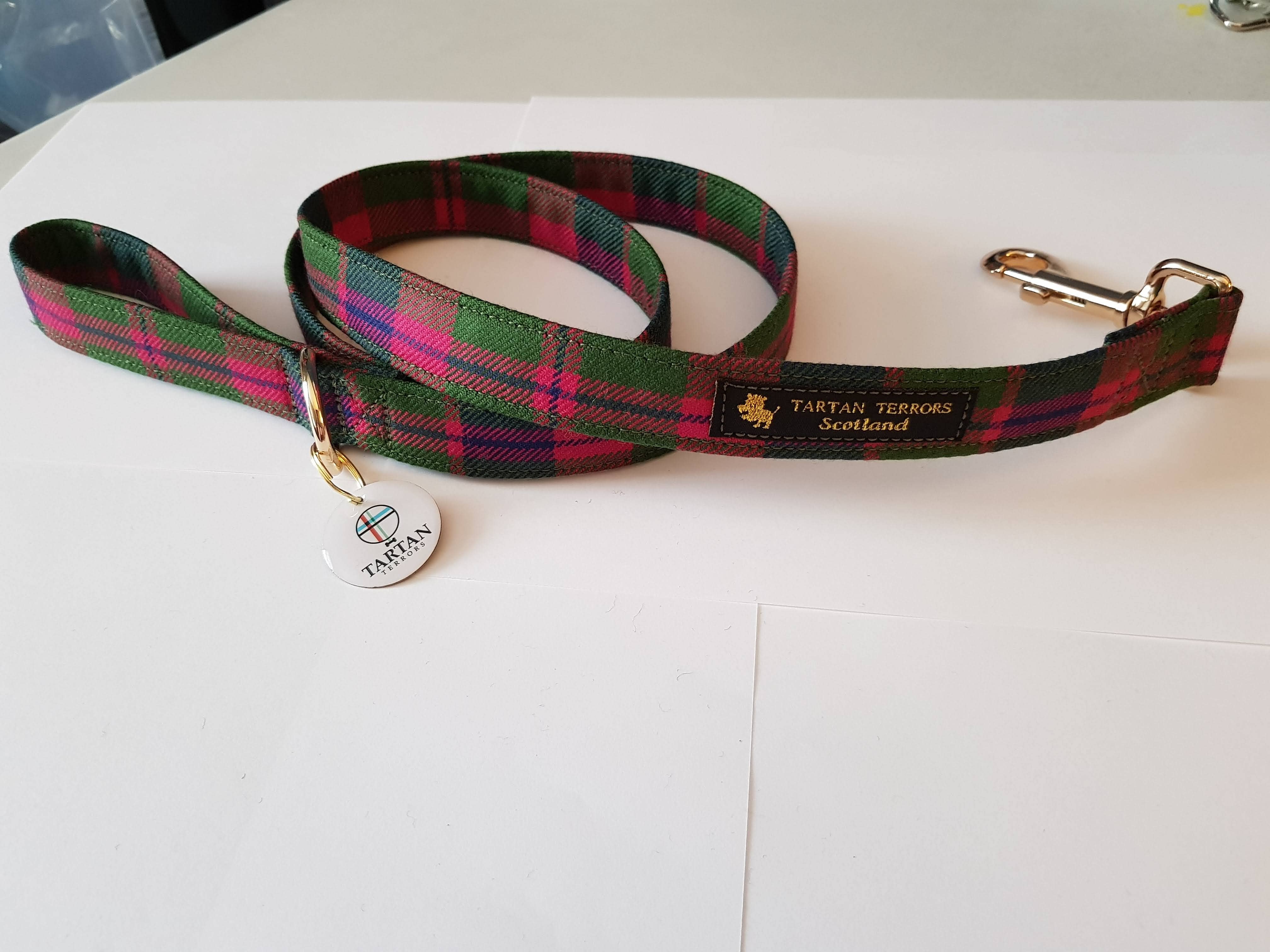 Tartan Terrors is a company making clan tartan and genuine Harris Tweed dog collars, leads and other accessories. We are based in the Kingdom of Fife. We source our raw materials from the local tartan weaving mills and the Isle of Harris for our tweeds. We are registered with the Harris Tweed Authority and the Tartan Authority. We make most of the clan tartans and our district tartans are also very popular. Customers love the fact that their dog can also wear their clan tartan and we make a lot of our items for dogs attending wedding parties to match groomsmen