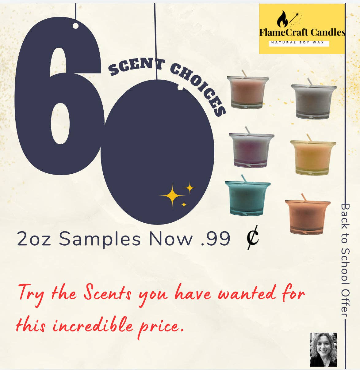 Flame Craft Candles is a family run candle company started by Erin a School Psychologist with a PhD in psychology. The candles are hand poured, scented and 100% soy wax. The candle scent variety is designed to attract all kinds of candle lovers and range from fruity to floral- earthy to enhancing focus and mood.