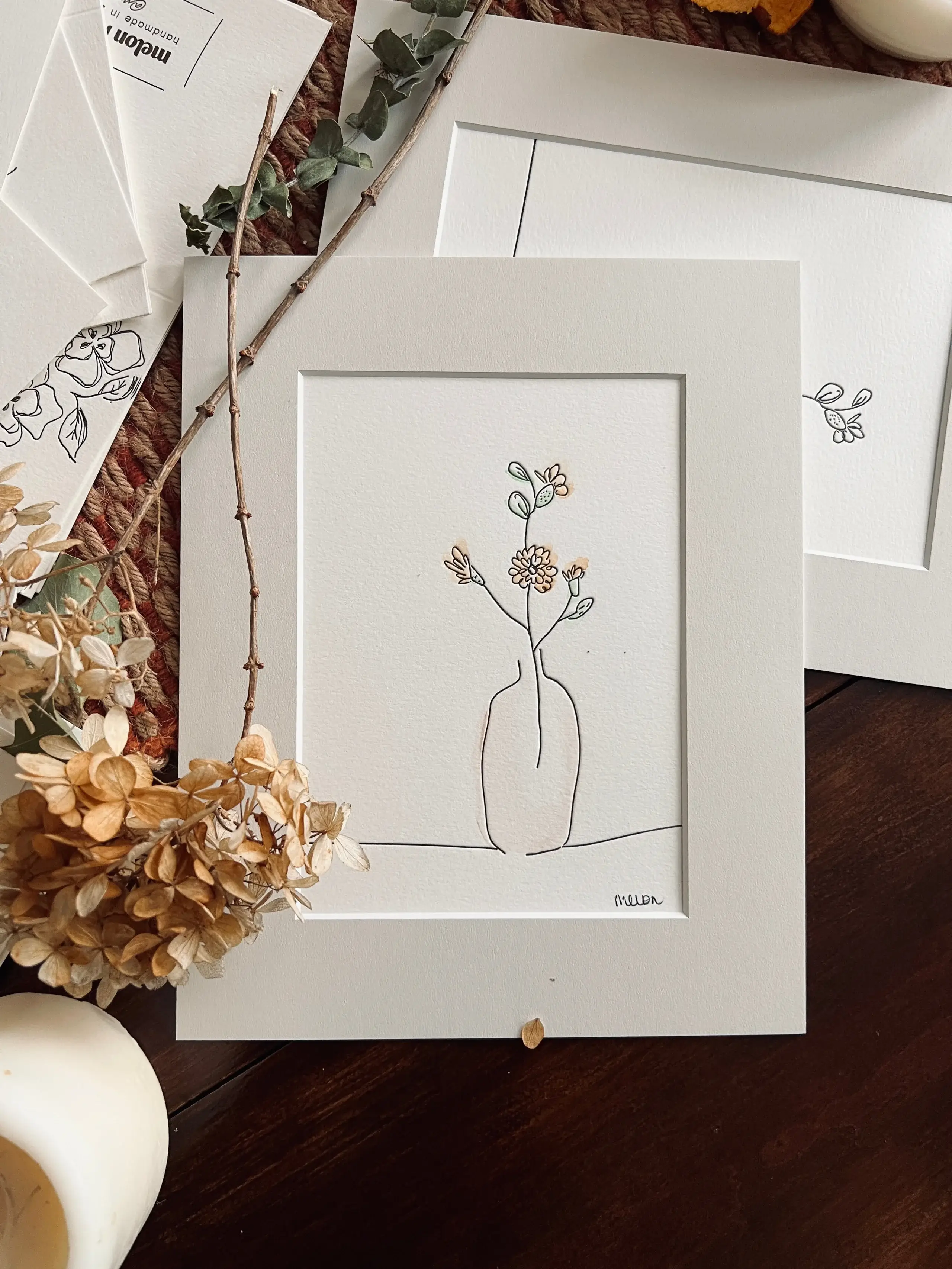 melon r. studio aims to evoke the warm, coziness, and simplicities of home with the soft touch of handmade craft. all pieces are made from original illustrations that are letterpress printed by hand using an antique press. hints of watercolor are added one by one so that, like us, not one is the same. all products are original prints, not replications.