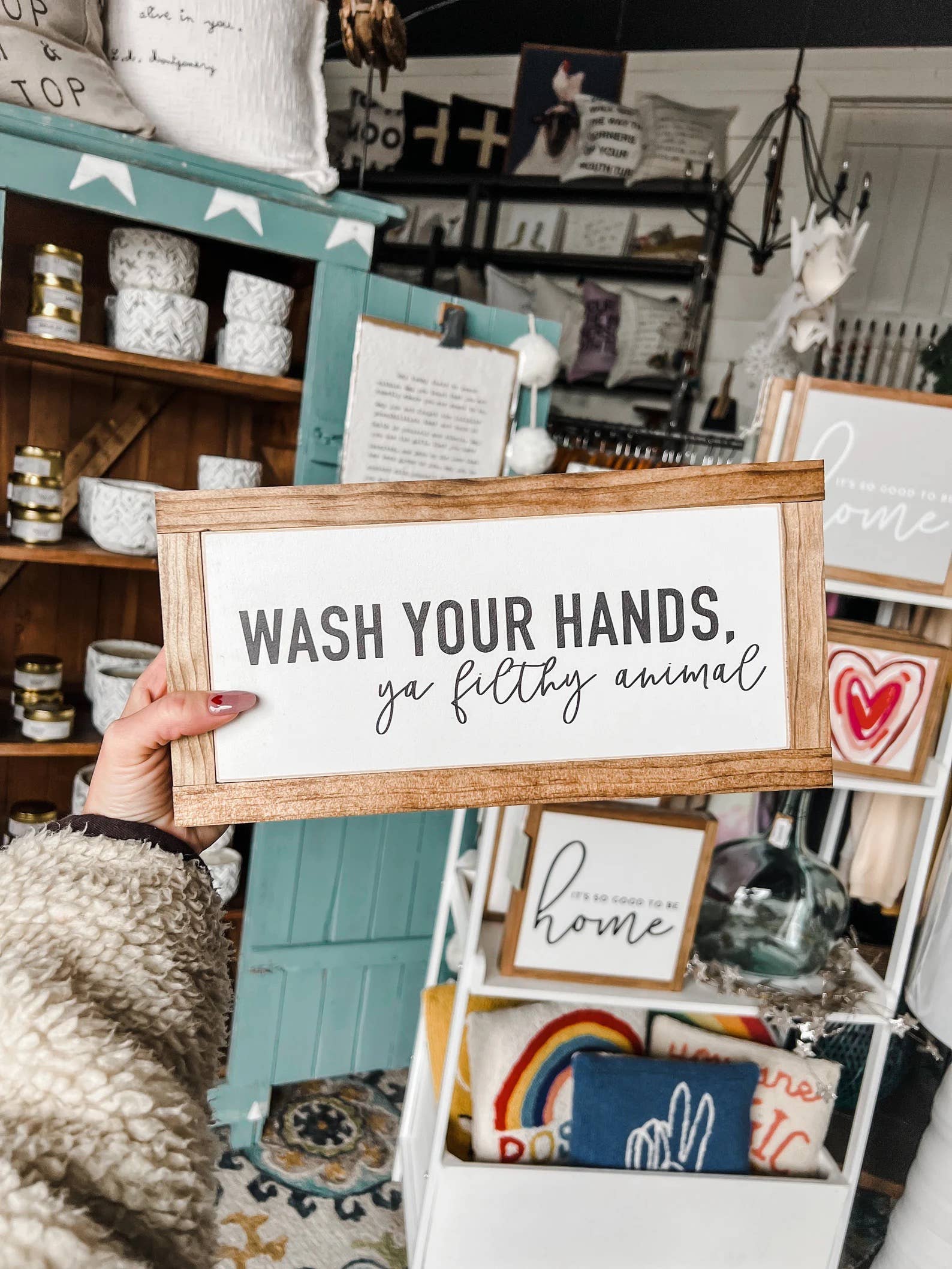 The idea of "The Shed" started back in the summer of 2013 when we had just bought our first home. We were tight on funds with no shortage on large empty walls. The painting began and the orders with it. As our business grew we hired our sister and the painting went from our living room to a small workshop down the road. We were having so much fun traveling to markets, meeting new people and watching our business baby grow. In 2016 we were blessed with a growing family and the idea of the shed changed to the shed on our farm. A place where we could watch our family and business bloom together. We have since hired more family and friends, added chickens, cats, dogs, goats and horses to our wonderful chaos. We pride ourselves on our quality of work, our atmosphere and the friendships this property has allowed us to make. We hope you feel welcomed and at home at our home. Cheers!