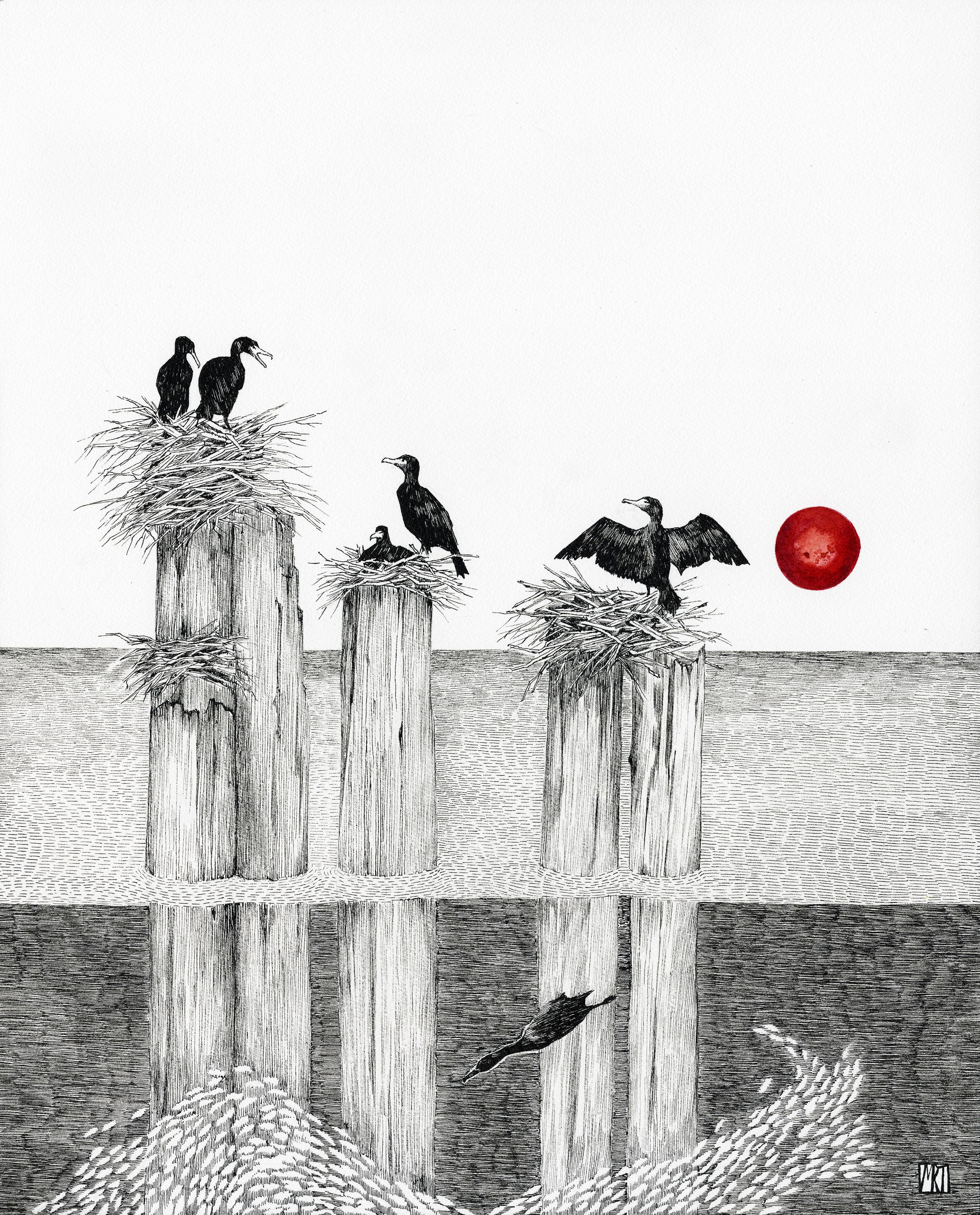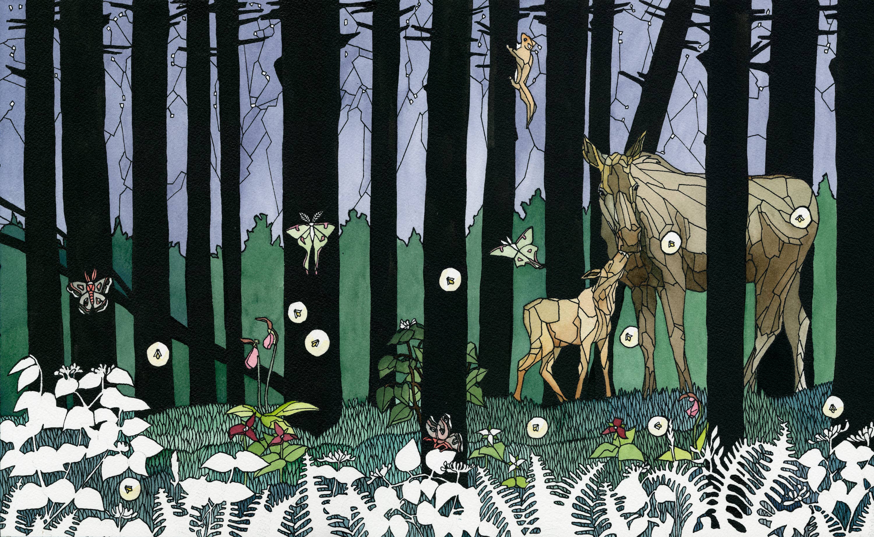 Every piece of art has a story to tell, my job is to put ink and color to paper to tell that story. Home schooled in rural Maine, I was lucky to spend unrestricted hours in field and forest, studying our world with attention that only children can. I never stop asking questions, nor does my art. Every piece has narrative, and each person hears a different story. My cards are printed locally on recycled paper, and packaged in a biodegradable protective sleeve.