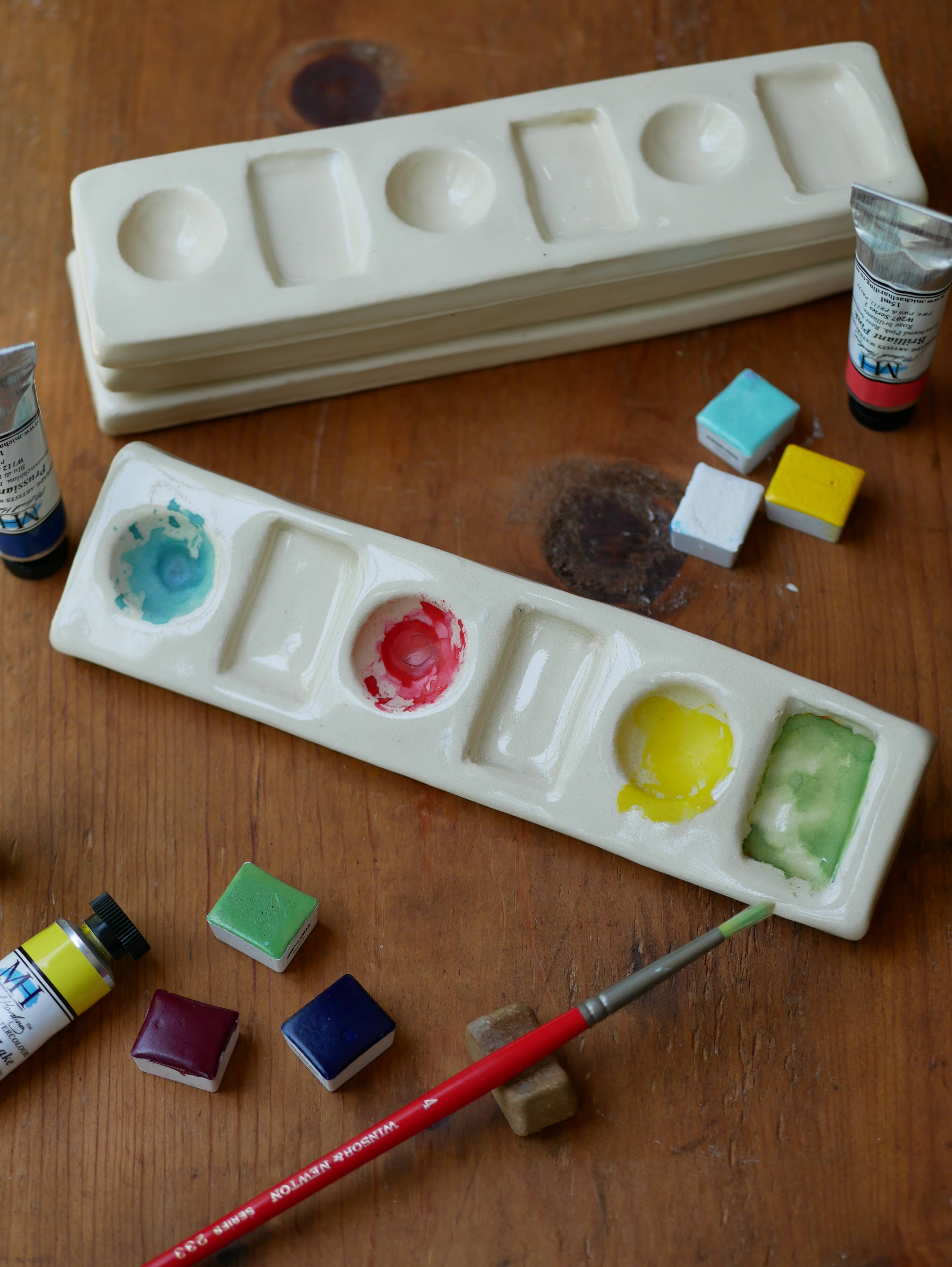 Hi, we are Sophie Meuch and Chase Woolner of Busy Hands Studio! We live a grounded and whimsical lifestyle that our 8 year old selves would envy and which our 5 year old selves would expect. We play with a lot of mediums - ceramics, embroidery, puppetry, knitting, sculpture, printing, illustration, sewing, design, writing, collecting, baking, and more. Our hands do a lot, and both pairs of hands touch every product we make throughout the process. We’re really proud of that. Our mission is to support the daily rituals and artistic process of creative people: painters, culinary artists, sewists, crafters & tinkerers. Our handmade artist supplies and tools - such as our ceramic paint palettes and paint water cups - are meant for all artists, whether beginning or professional, student or master. All of our products use high quality earthly materials and fine craftsmanship to bring beauty to your space. We care about the environment and are inspired by the natural world. We are worried about climate change and the prevalence of plastic everywhere in our world. Thus, we are mindful and consider the environment with every purchase and creative decision we make. We use regional clay and reclaim every scrap of it. We reuse packaging materials from neighbors and local businesses. We use found objects in our creations. When you purchase from us, you’re supporting our intentions and ethics.