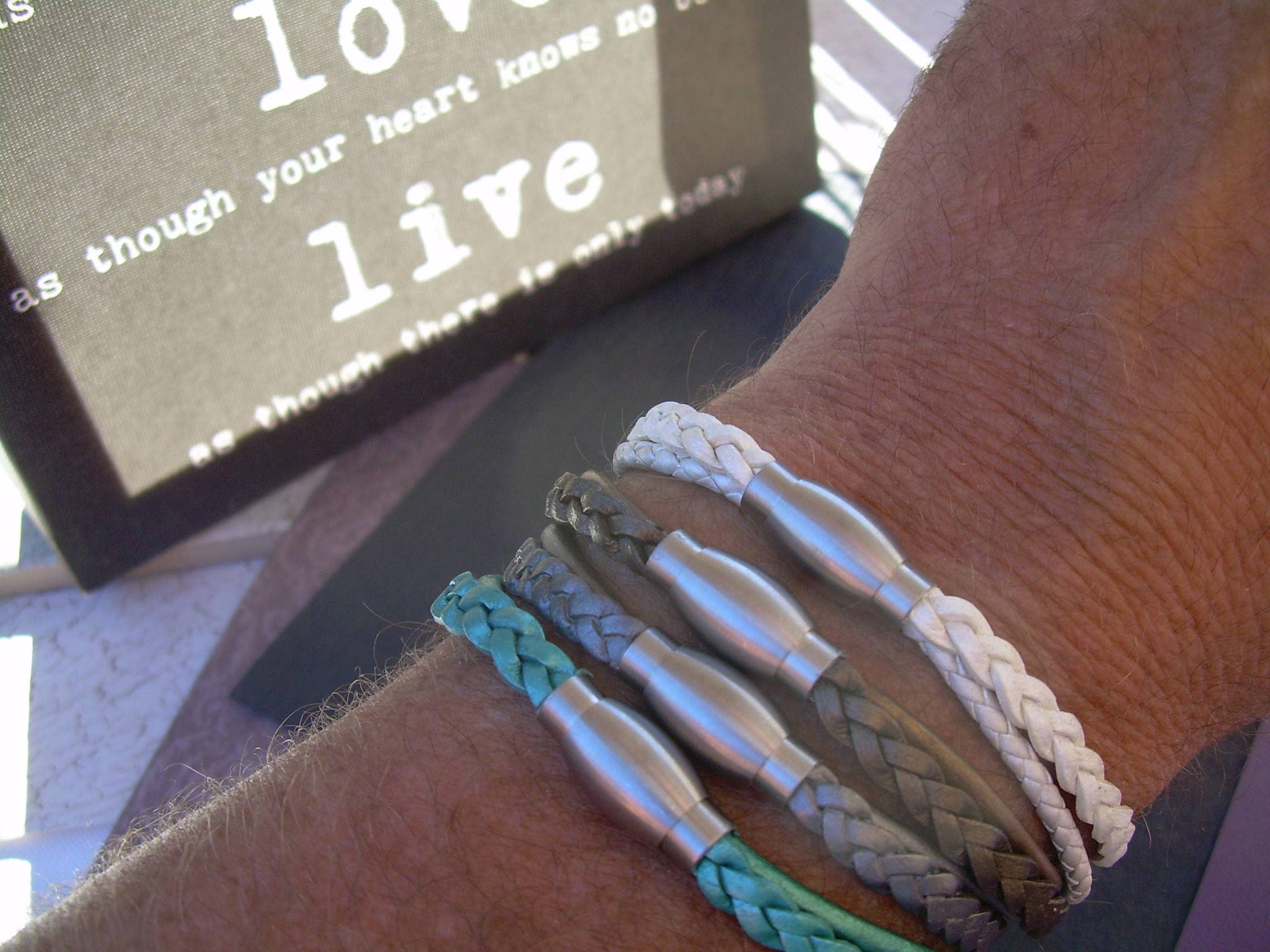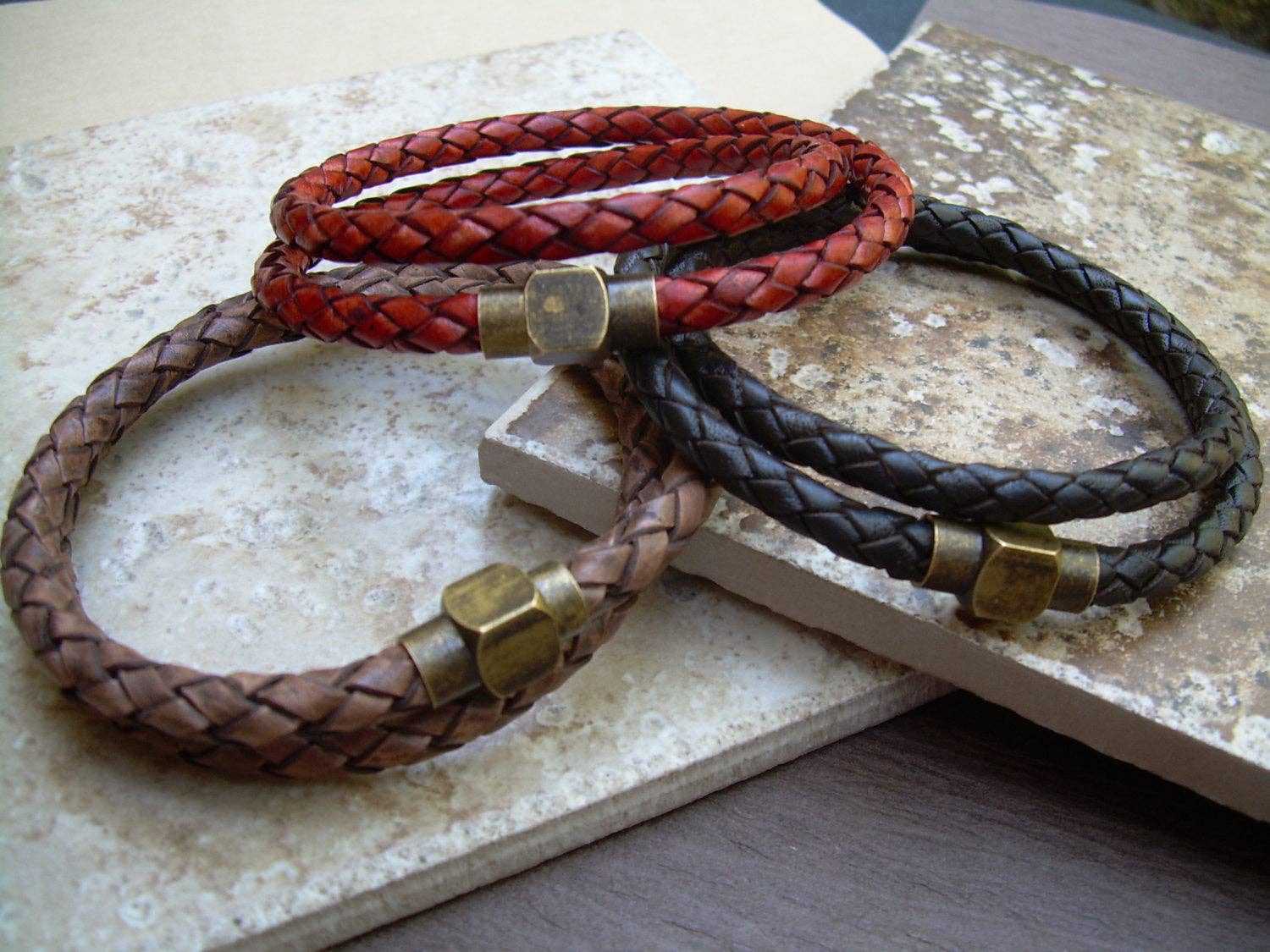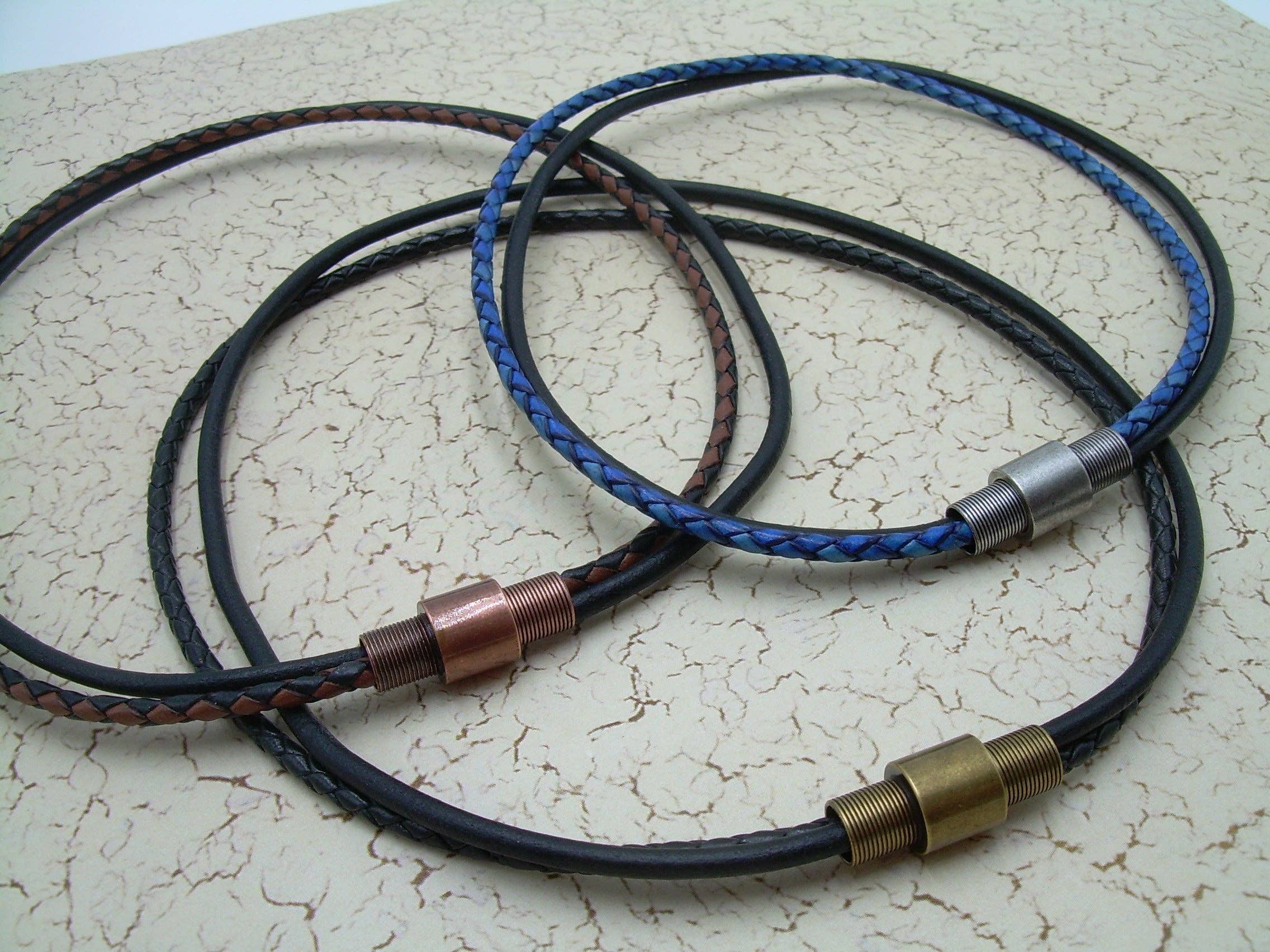 ESTABLISHED 2009 -All made to order in my Marana Arizona studio, I am pleased to offer Hand Made Fine Imported Leather and Alternative Metal Bracelets, Necklaces and Chokers, for Women, Men and Teens. My leather suppliers only use dyes that are certified 100% Lead-Free and meet all requirements of the German Goods Ordinance, REACH (European Union), ROSH (U.K.), and CPSIA (U.S.) which require consumer goods to be free of Lead, AZO’s and carcinogenic chemicals. Be careful with Imported jewelry which may not comply with these quality standards. All of the metal components that I use in my collection are Lead Free and many of them are Nickel Free as well. Please contact me for any metal specs. WHOLESALE : Urban Survival Gear USA is proud to work with several Retail Partners all over the country. Please drop me an email if you would like wholesale information. SIZING: Please order by your firm wrist measurement. Wrap a piece of string around your wrist - just over the wrist bone...not tight or loose, just a perfect measure. (do not add any extra length – I will do that) Cut the string and lay it flat on a measuring tape. If you give me that exact measurement, I will make sure to custom fit it to your wrist allowing just enough length for leather, clasp and a custom comfort fit. All items are sized and made to order.... so I can fit ANYONE! CUSTOM: If you need anything.... special sizing, coloring, mix or match etc...just let me know, I am happy to work with you in creating