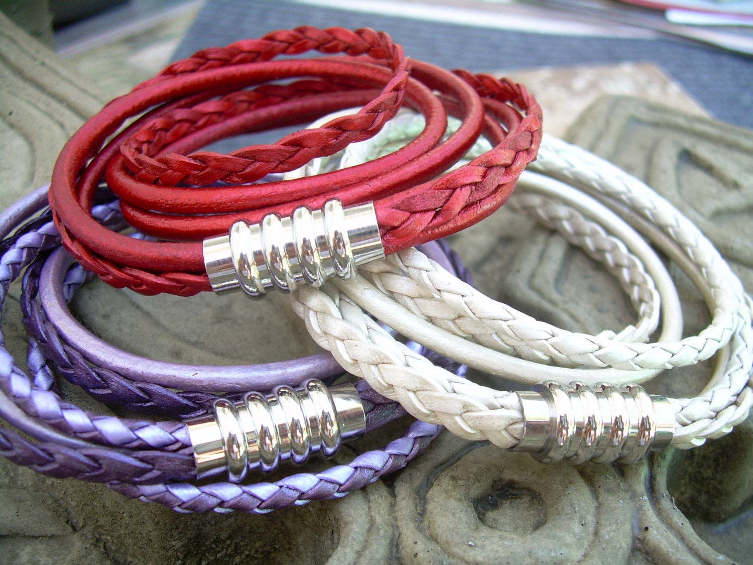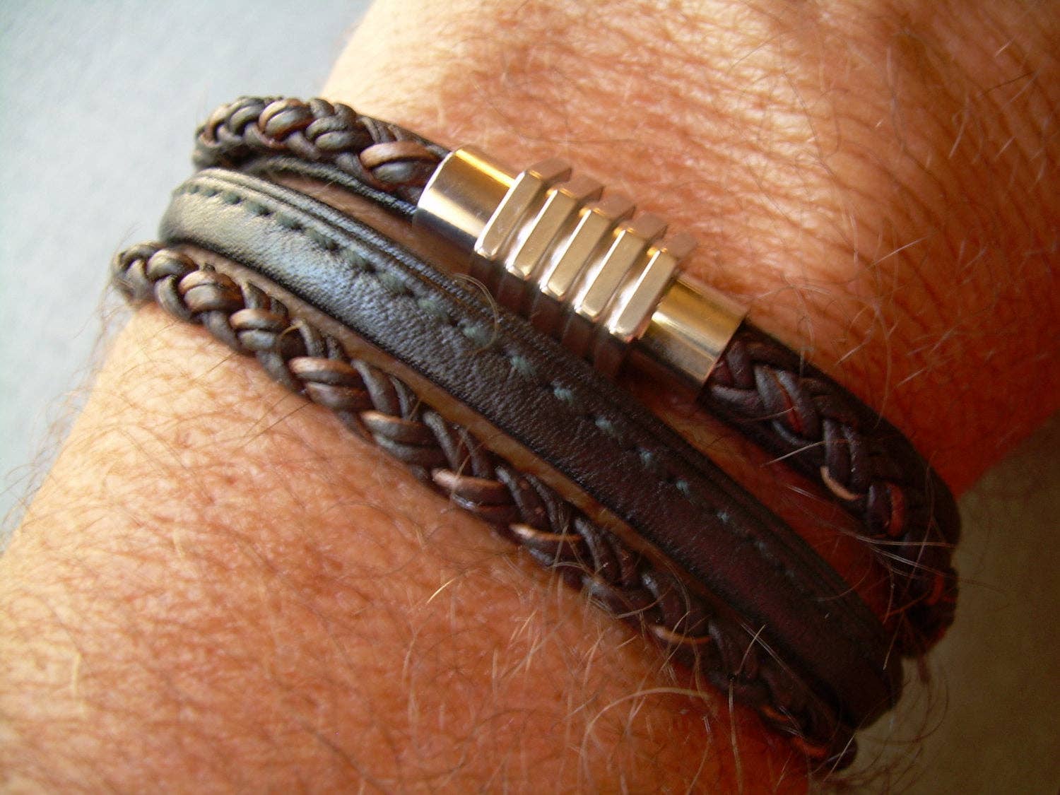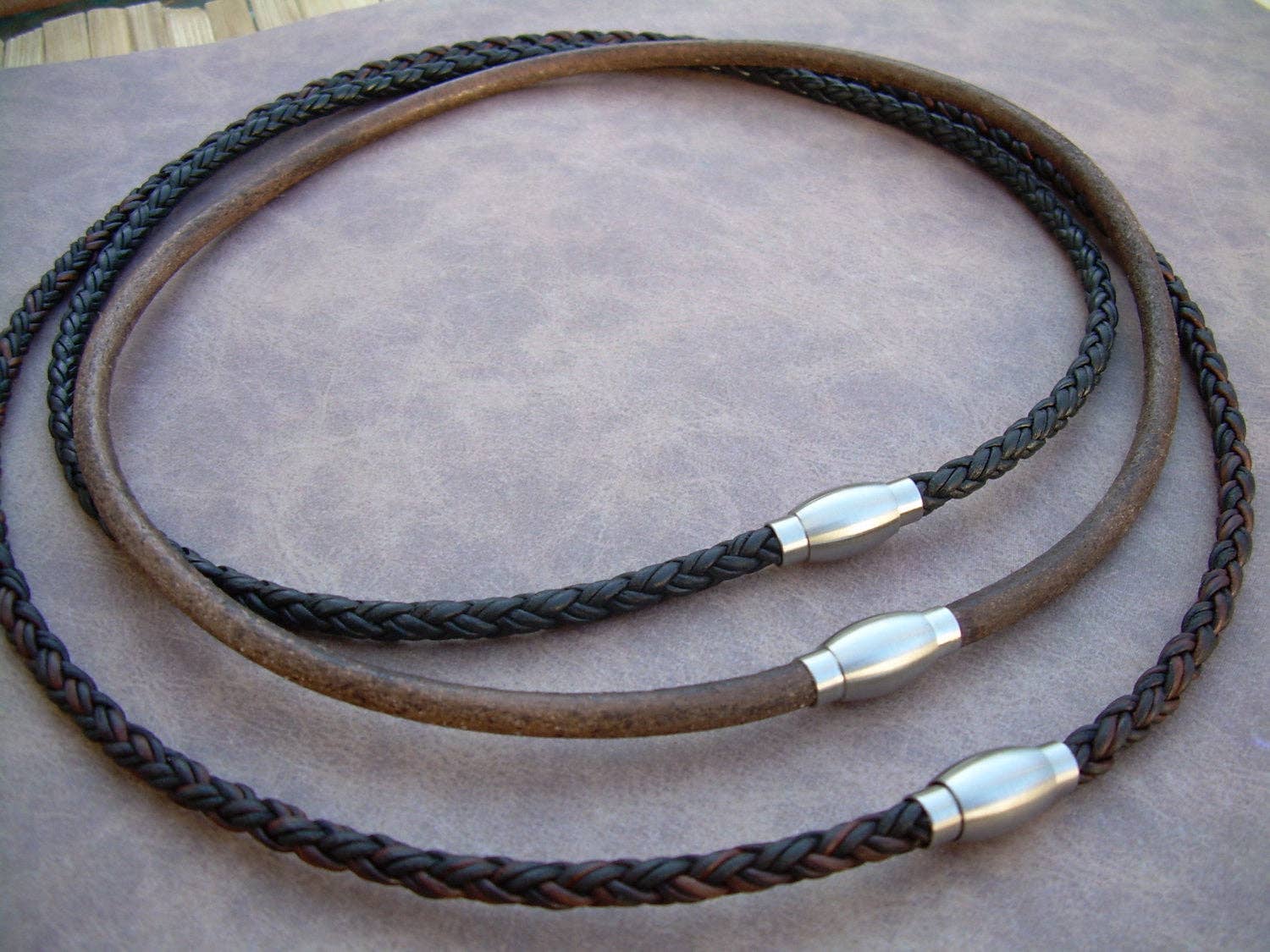 ESTABLISHED 2009 -All made to order in my Marana Arizona studio, I am pleased to offer Hand Made Fine Imported Leather and Alternative Metal Bracelets, Necklaces and Chokers, for Women, Men and Teens. My leather suppliers only use dyes that are certified 100% Lead-Free and meet all requirements of the German Goods Ordinance, REACH (European Union), ROSH (U.K.), and CPSIA (U.S.) which require consumer goods to be free of Lead, AZO’s and carcinogenic chemicals. Be careful with Imported jewelry which may not comply with these quality standards. All of the metal components that I use in my collection are Lead Free and many of them are Nickel Free as well. Please contact me for any metal specs. WHOLESALE : Urban Survival Gear USA is proud to work with several Retail Partners all over the country. Please drop me an email if you would like wholesale information. SIZING: Please order by your firm wrist measurement. Wrap a piece of string around your wrist - just over the wrist bone...not tight or loose, just a perfect measure. (do not add any extra length – I will do that) Cut the string and lay it flat on a measuring tape. If you give me that exact measurement, I will make sure to custom fit it to your wrist allowing just enough length for leather, clasp and a custom comfort fit. All items are sized and made to order.... so I can fit ANYONE! CUSTOM: If you need anything.... special sizing, coloring, mix or match etc...just let me know, I am happy to work with you in creating