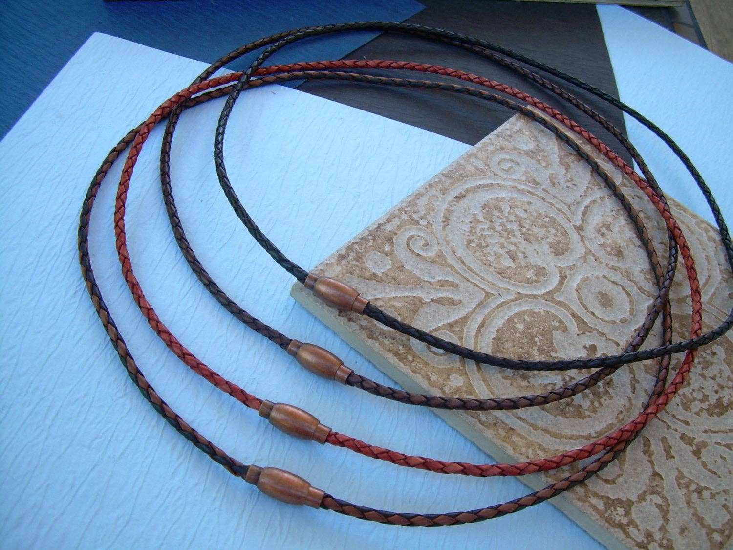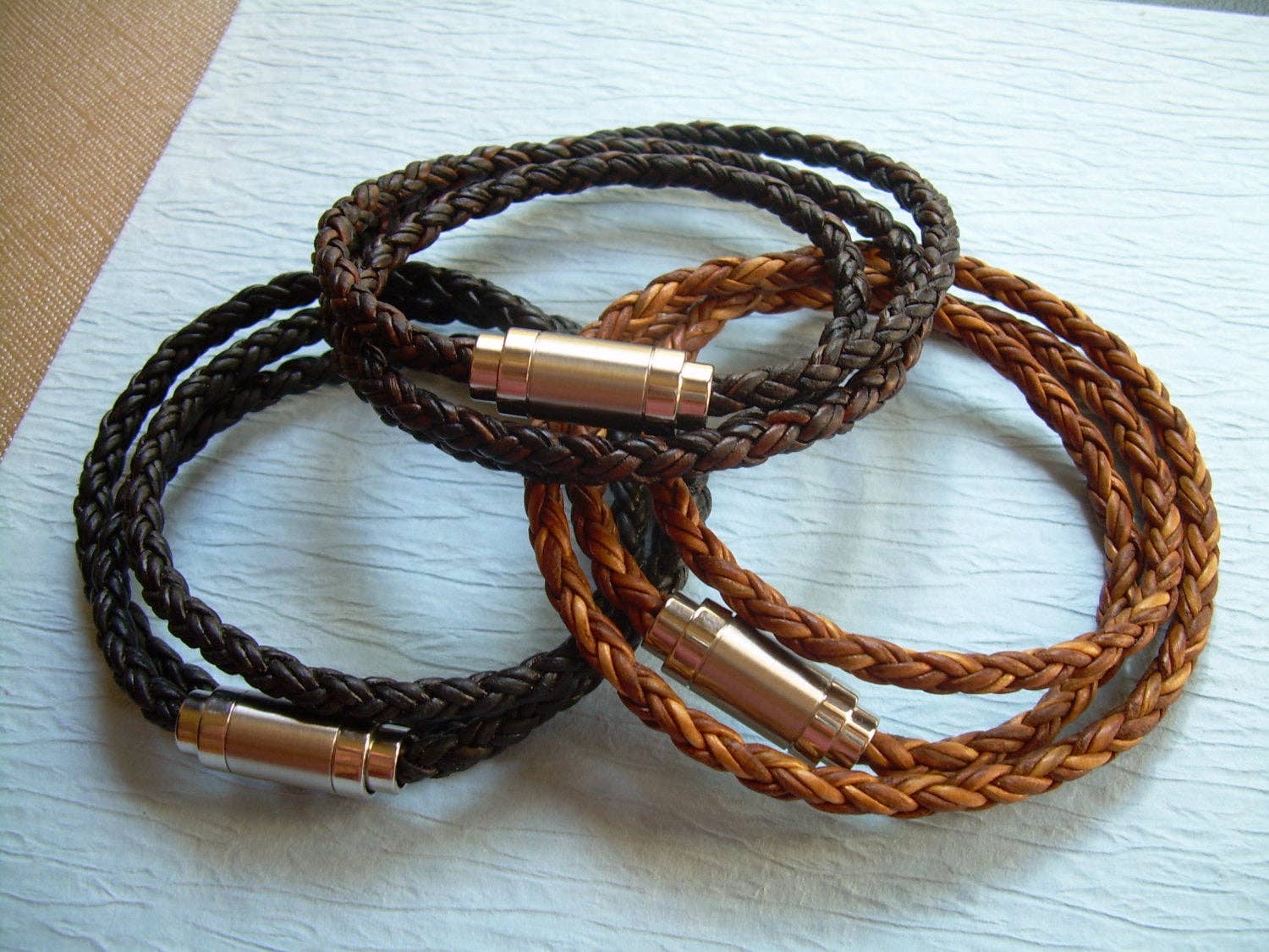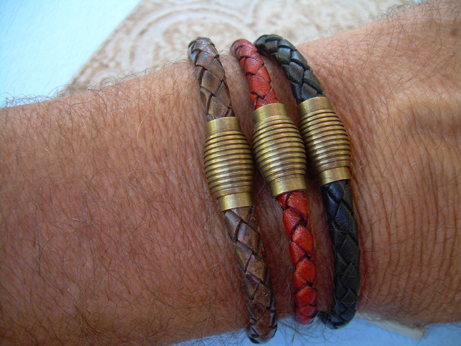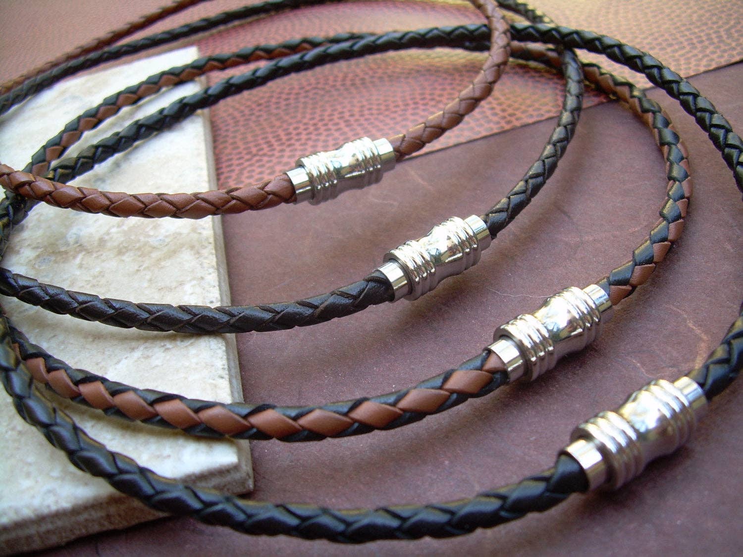 ESTABLISHED 2009 -All made to order in my Marana Arizona studio, I am pleased to offer Hand Made Fine Imported Leather and Alternative Metal Bracelets, Necklaces and Chokers, for Women, Men and Teens. My leather suppliers only use dyes that are certified 100% Lead-Free and meet all requirements of the German Goods Ordinance, REACH (European Union), ROSH (U.K.), and CPSIA (U.S.) which require consumer goods to be free of Lead, AZO’s and carcinogenic chemicals. Be careful with Imported jewelry which may not comply with these quality standards. All of the metal components that I use in my collection are Lead Free and many of them are Nickel Free as well. Please contact me for any metal specs. WHOLESALE : Urban Survival Gear USA is proud to work with several Retail Partners all over the country. Please drop me an email if you would like wholesale information. SIZING: Please order by your firm wrist measurement. Wrap a piece of string around your wrist - just over the wrist bone...not tight or loose, just a perfect measure. (do not add any extra length – I will do that) Cut the string and lay it flat on a measuring tape. If you give me that exact measurement, I will make sure to custom fit it to your wrist allowing just enough length for leather, clasp and a custom comfort fit. All items are sized and made to order.... so I can fit ANYONE! CUSTOM: If you need anything.... special sizing, coloring, mix or match etc...just let me know, I am happy to work with you in creating
