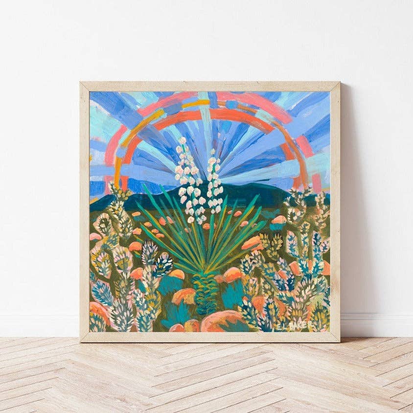 Hi! I'm an Austin-based artist who loves to experiment with materials and unexpected colors. My style is always changing and features everything from mixed-media Texas landscapes to colorful abstract desert plants. Many of my pieces are inspired by road trips across Texas, from the mountains of Big Bend National Park to the rolling landscapes of the hill country. I was born in Houston and our family moved around a bit -- I eventually made it back to Austin to go to UT. Besides an 18-month stint in Chattanooga for my husband's work, I've been in Austin ever since. I live in a tiny house with my sweet husband, daughter, and baby boy. When I'm not painting, you'll find me going down playground slides or splashing in the cool water of Deep Eddy. I'm inspired every day by the vibrant scenery of Central Texas and new artists I find on Instagram. I hope my work brings you joy and adds a bit of color to your life. :) Cheers and thank you!