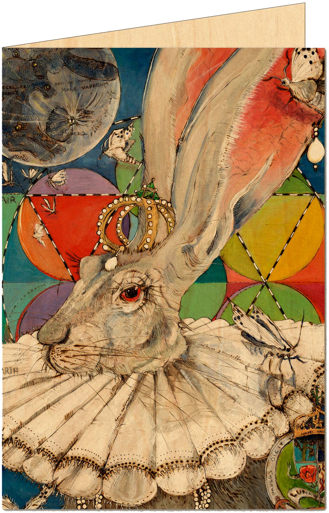 Zenbunnyland is joyous. Steffi Sutton loves the unique elements that fire brings into her line work. Keeping 'the line' at the forefront of her assembled compositions and burned panels, she takes on different surfaces. Her sense of whimsy is ever apparent. Steffi's interests always include the human form, in particular, the female figure. Her themes shift to plant, animal, spiritual + environment, but always seem to return to the human figure; understanding its effect and place on this bright blue planet. “Fire is in my life. I discovered Pyrogravure in the desert and now it’s my passion; a natural progression for my love of line. Burning into wood is tactile, visceral and always perilous. Fire is at the fingertips of our existence, especially in the high desert of California where I live and work. I create images from concepts I adore: mythology, tarot, astrology, tiki, science & always our sacred sky. I keep pushing and pulling them together and apart. Exploring, and always looking for more”. We’ve created a line of unique postcards and folded greeting cards, printed on genuine maple wood from details of some of Steffi’s favorite art panels. Most contain a clever quote relevant to the image. The folded greeting card includes an envelope. All cards are protected by a clear PVC sleeve, allowing your customers to handle without concern. Zenbunnyland is Steffi Sutton and her soulmate Paul, working in tandem; a partnership forged in true collaboration & collective creation.