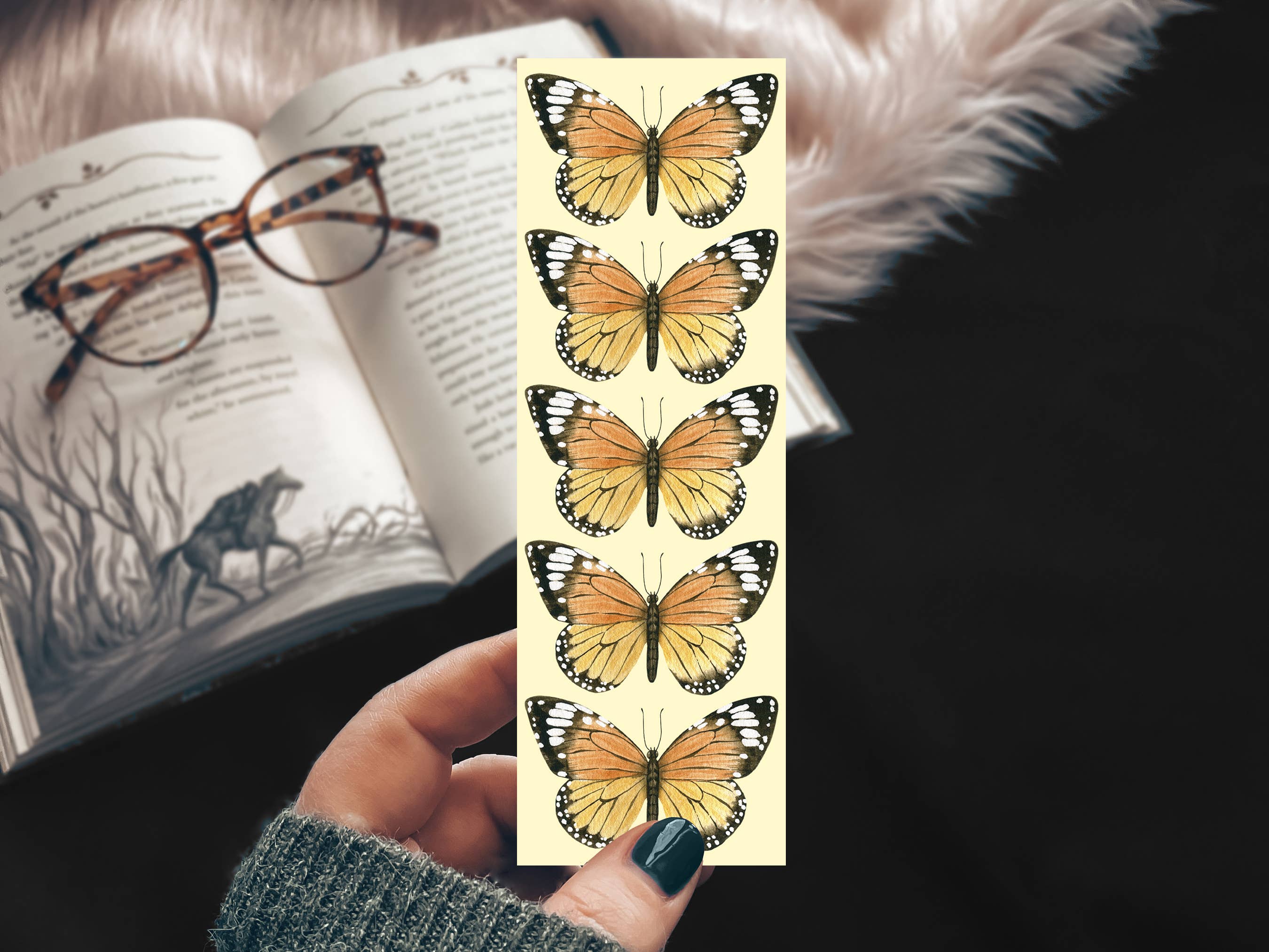 I started Mirkwood Scribes by making bookmarks as party favors to match custom invitations but found I liked creating around literary themes much more than party themes. I had some great back and forth with customers, found a great community over on #bookstagram, and seem to never run out of ideas for new bookmarks. I love the energy and excitement I get from other book-nerds (where were you people when I was in high school?!) and the most fun is sharing a favorite book with a new friend! I design, print, and trim each bookmark in my home studio in Southeast Missouri. It is appropriately decorated with a full wall of bookshelves (#bookstagram made me buy so many books!) and a fireplace mantle covered with Harry Potter books and merch. There is usually a cat under my desk, and after school, my 12-year-old is in here playing video games and telling me all about life in 7th grade. My office is one of my favorite places to be. I want anyone who buys from me to be absolutely DELIGHTED when they get their order. I always want someone to think "this is better than I thought it would be!" and to be able to use something as small as a bookmark to create that cozy moment that they want. Over 5,500 people have come back to leave a 5-star review after finding the perfect bookmark and being thrilled with their purchase. ♥