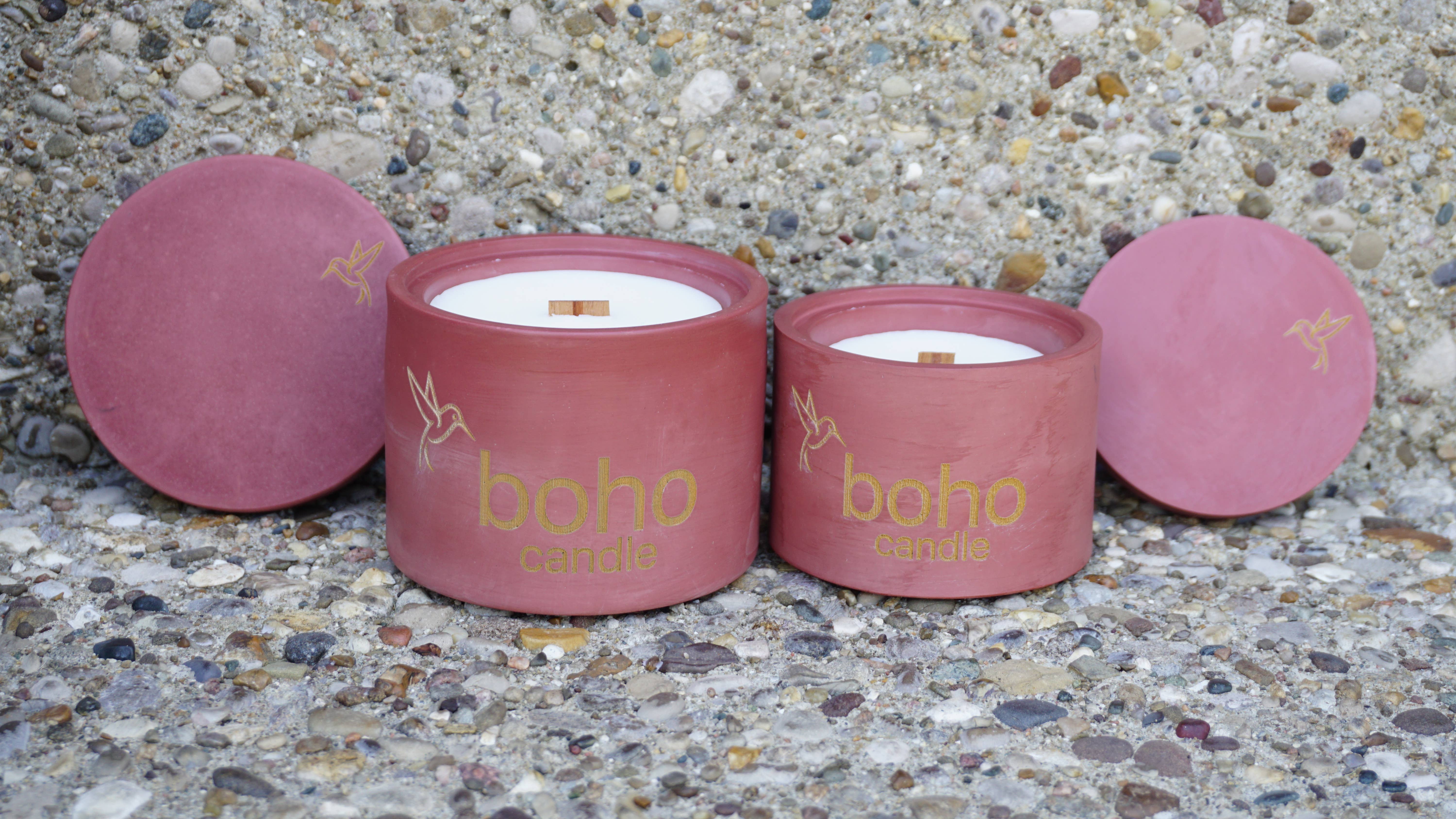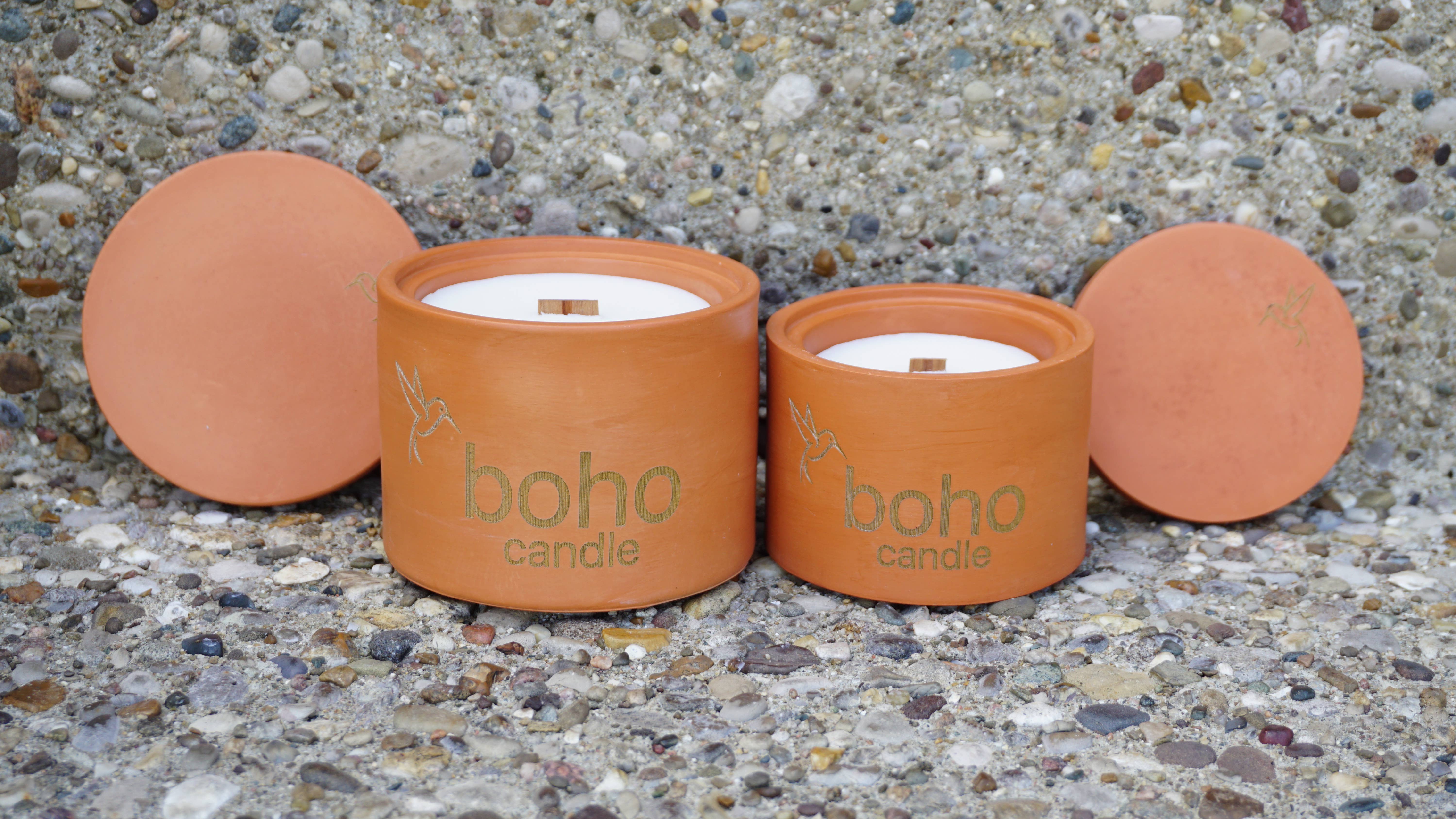 this isn’t your average candle. each piece combines a handmade vessel with a clean-burning soy blend insert fitted perfectly inside. when lit, the wood-wicked insert fuses beautifully to the jar for a seamless look and luxurious scent experience. each vessel comes to you with the insert already in place with an instructional dust cover under the lid for your customers. refills are available, vessels can be used again and again, making this a sustainable choice for your customers. boho candle is a self-started family owned and operated business in Kentucky. driven by a passion for organic form and memorable scents, we embrace the easy going, effortlessly cool bohemian style-yet we started our journey with a scientific approach. after many months researching and testing, our vision became clear: to create candles that are unique yet simple-from vessel to wax to fragrance. we created inserts to insure a perfect burn with sublime scent and to provide an seamless refillable option with sustainability in mind. each vessel is handmade by us, and every wax and fragrance blend is custom-crafted with care. our goal is to curate an exquisite experience focused on beautiful minimal home decor. we hope our effort can be felt-crafted to be as special and unique as each person who supports us.