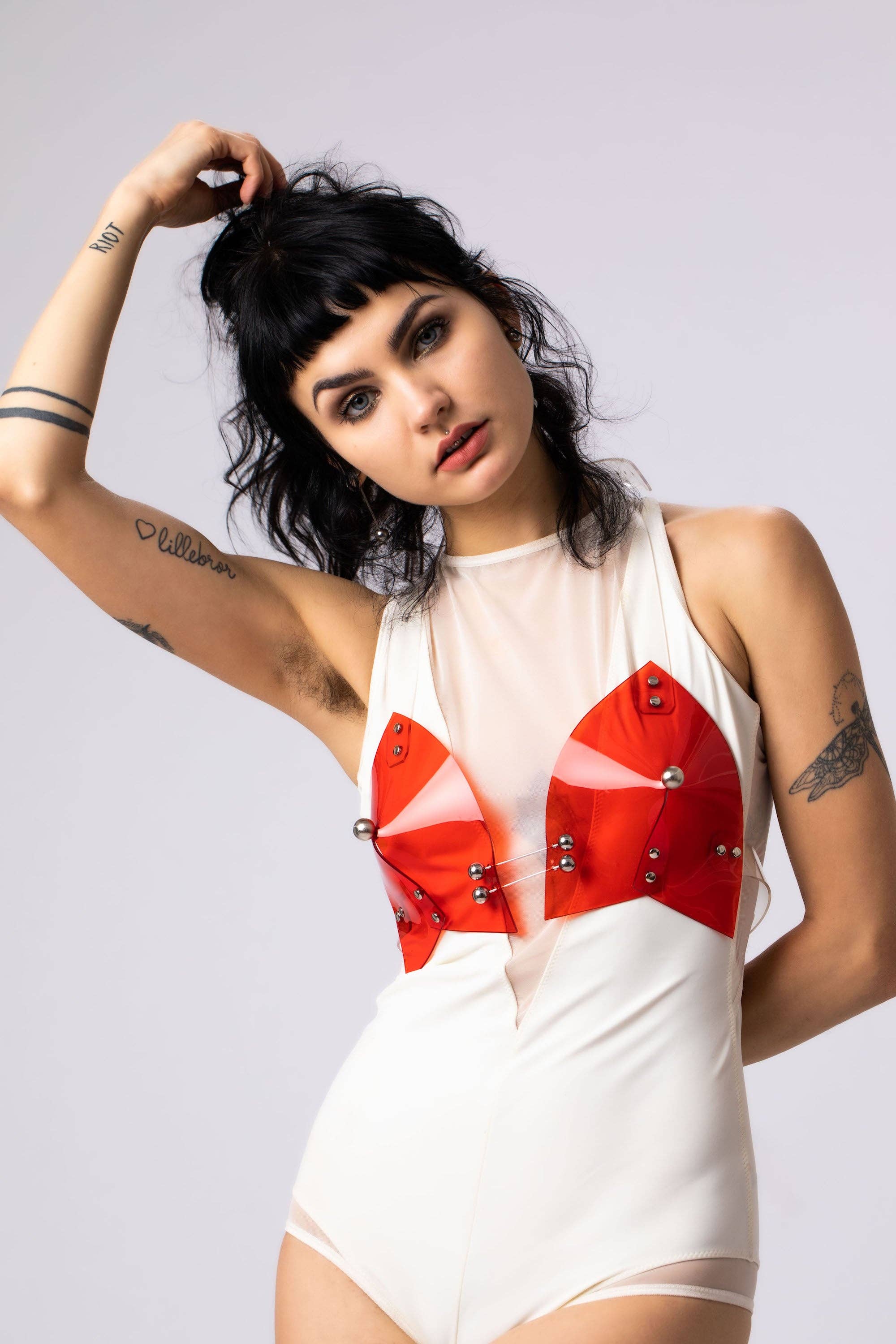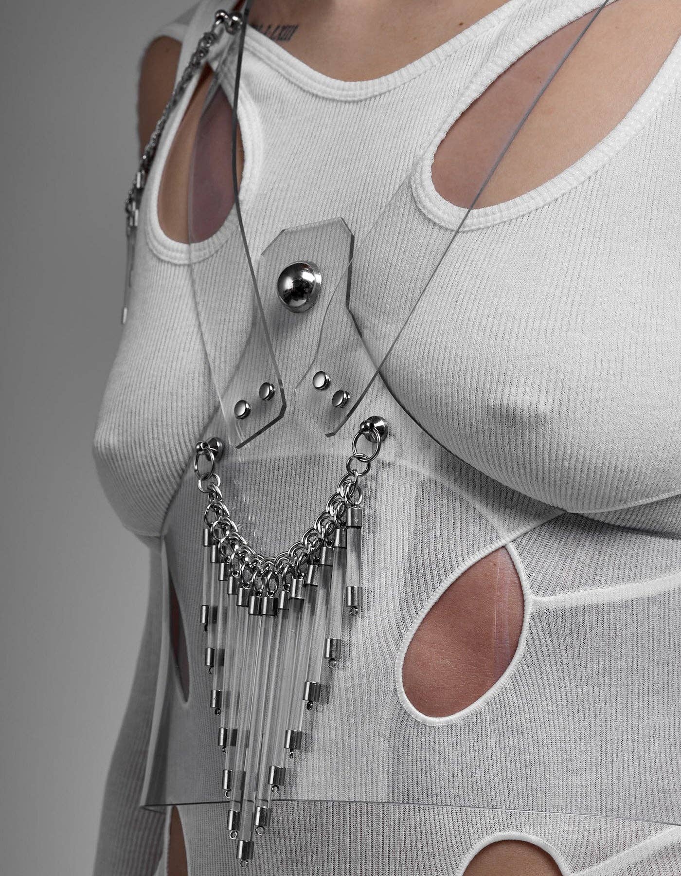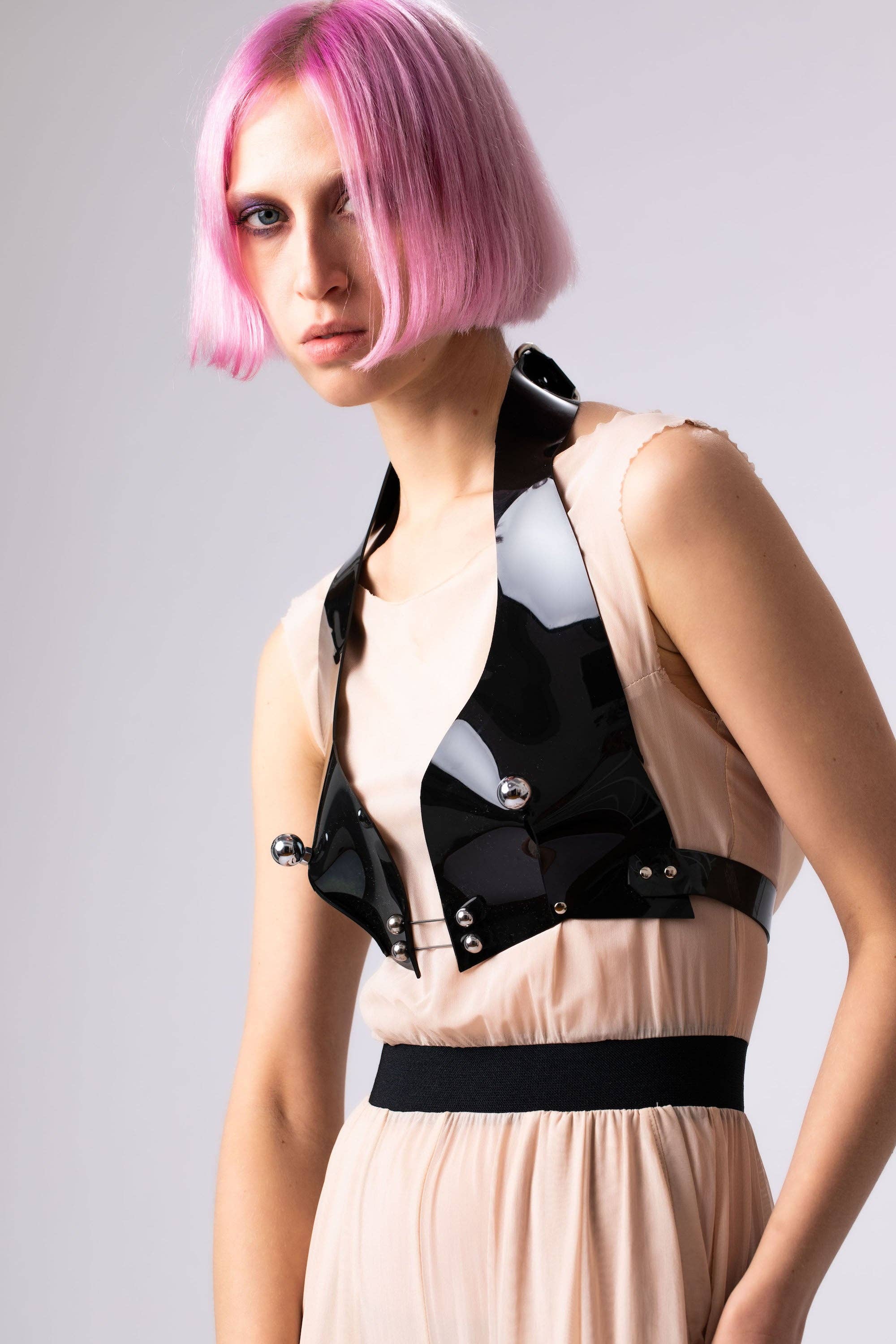 PERLENSAU is a metaphor for the full spectrum of life, the sacred and the profine,the ying and yang. To fully experience and express life’s every facet, that’s why we are here, and PERLENSAU is here to represent that. And like any philosophy, it can’t be superficial. An endless urge to create, technical know-how and futuristic aesthetic provided a perfect breeding ground for the founder Nina Kharytonova. This passion for innovative looks was a driving force to let the brand flourish. Since than the label reached pretty fast popularity in Berlin and abroad the city, creating with their designs a constantly growing networking in the interdisciplinary of arts like fashion editorials, music videos, performances etc. Some of these designs are really provocative and over the top or even more than visionary, but each of them transforms even the most unimpressive outfit into a stunning eye-catcher. The prior aspect yet is not only an outstanding look but the ability to minimize impact on the environment, there for the pieces are made of high class materials, like vegetable tanned leather, recyclable and environment friendly PVC and nickel free stainless steel. Most of the pieces are custom made to order, to save on making unwanted overstock. All designs are handcrafted with an attention to the detail and high quality and made to last for long. The idea behind it is to create an experience you never ever want to miss again.