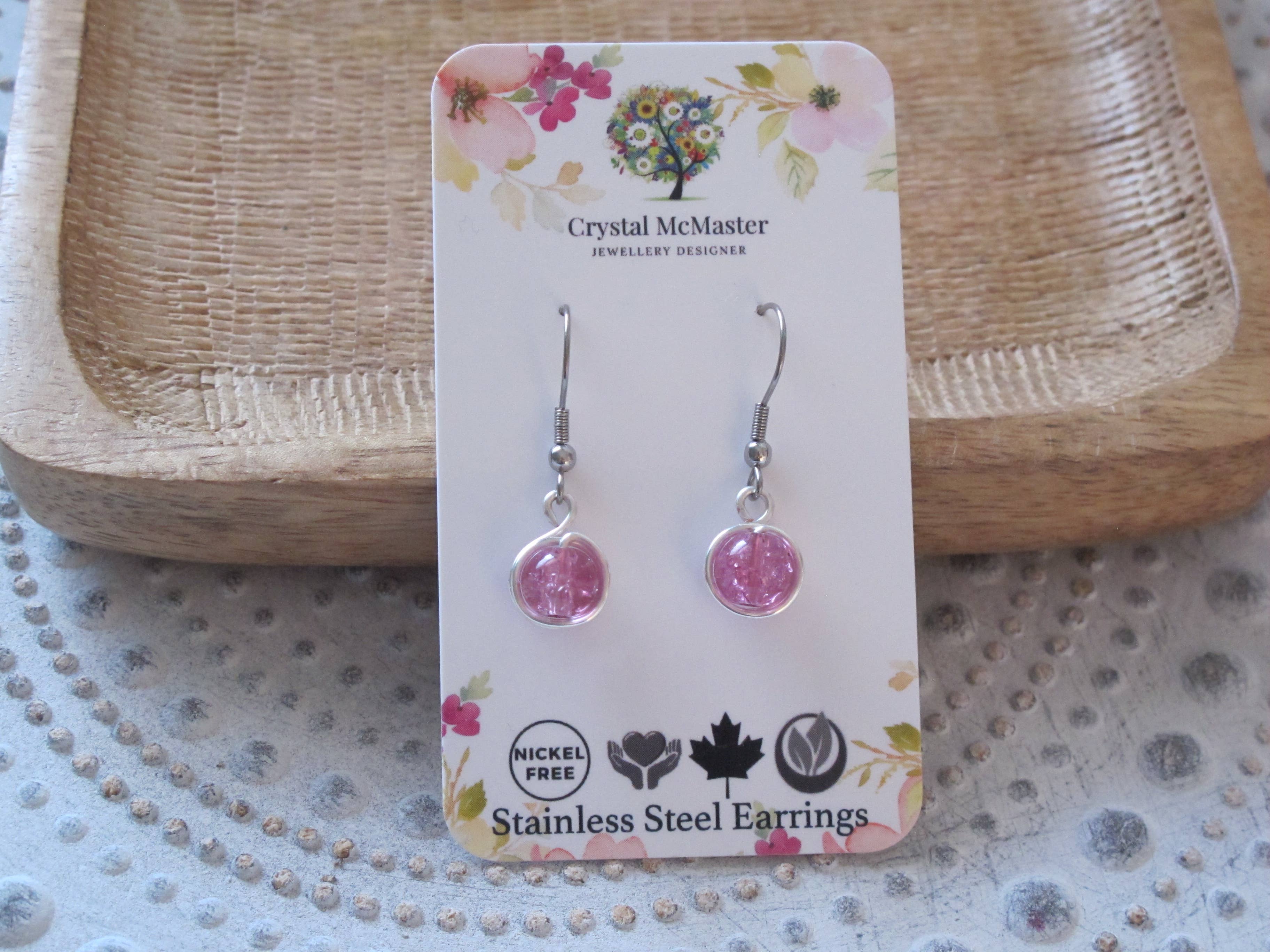 Crystal McMaster began designing in 2005, her works have now been featured in over 200 boutiques, galleries and gift shops across the world. Crystal handcrafts each unique piece at her home studio near London, Ontario. Her jewellery is known for its modern, one of a kind, artisan qualities. Specializing in a glamorous fusion of classic designs and trend setting collections her pieces are timeless. Her collections are thoughtfully crafted with intention and meaning behind them. To fulfill her mission Crystal adds Positive Affirmations and Intention Statements on each card. She also donates a portion of proceeds of each design to Grief Support & Charity Programs. She became a Grief Advocate after losing her beautiful Mom to breast cancer in 2019. Crystal loves designing around a unique element like in her Ink Art Collection, where she created Original Artwork to incorporate into each piece. She also loves using found and recycled woods, and has incorporated acorns, driftwood, handmade wooden beads and fallen tree branches to design pendants and new collections. All of her designs are nickel, cadmium and lead free. Crystal loves being surrounded by nature and lives a very earth conscious lifestyle. Her collections are reflections of that philosophy.