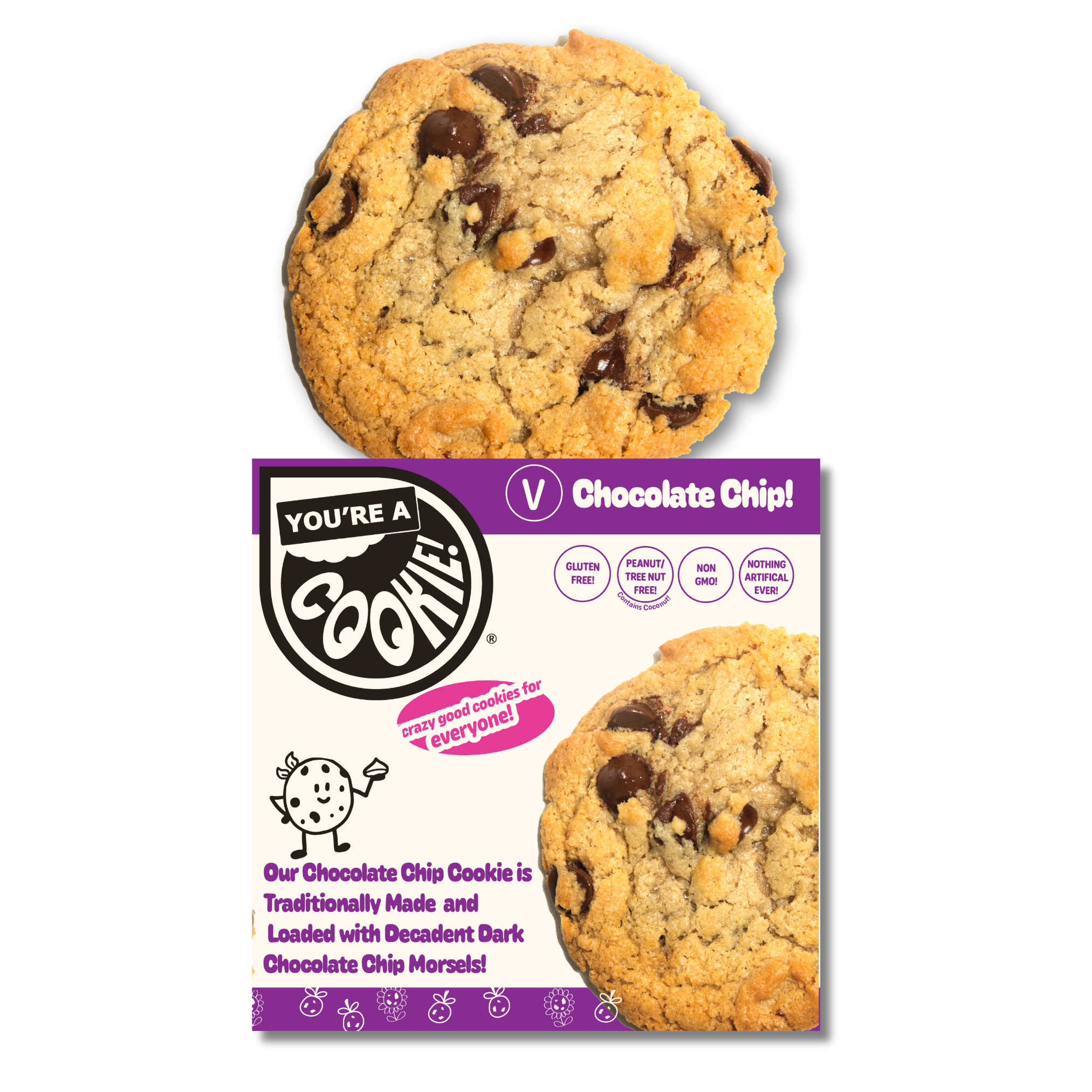You’re a Cookie! – Crazy Good Cookies for Everyone At You’re a Cookie!, we believe that everyone deserves a ridiculously good cookie—one that’s soft, chewy, packed with flavor, and made with high-quality, ethically sourced ingredients. That’s why all of our cookies are 100% gluten-free, peanut-free, and tree nut-free (except for coconut in our vegan flavors), so more people can enjoy them without worry. But here’s the thing—you don’t have to be gluten-free to love our cookies. They’re just that good! Our mission is to prove that allergy-friendly treats can be just as indulgent and crave-worthy as any classic cookie, without compromising taste, texture, or values. Because at the end of the day, you are what you eat… and we think you deserve to be a cookie!