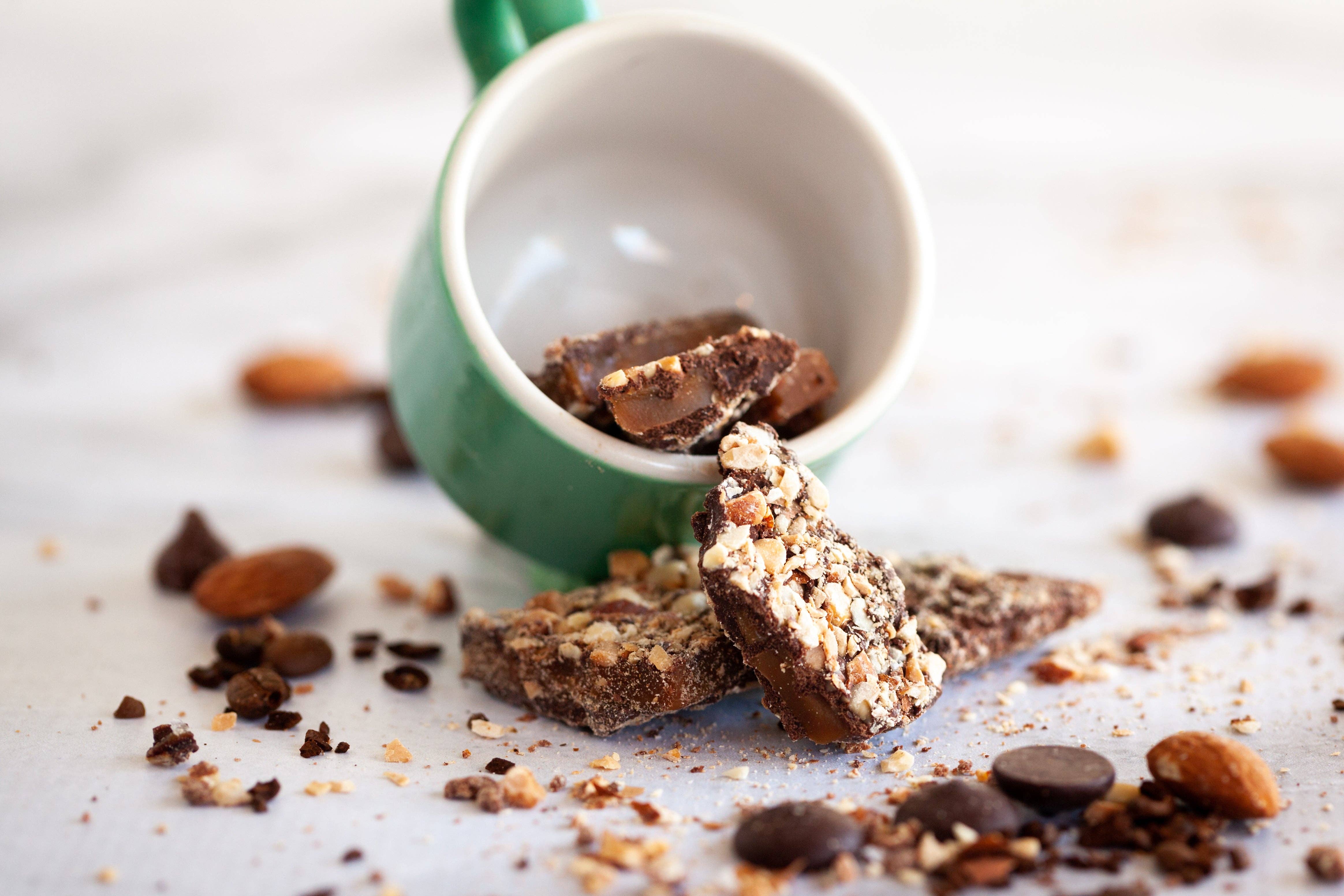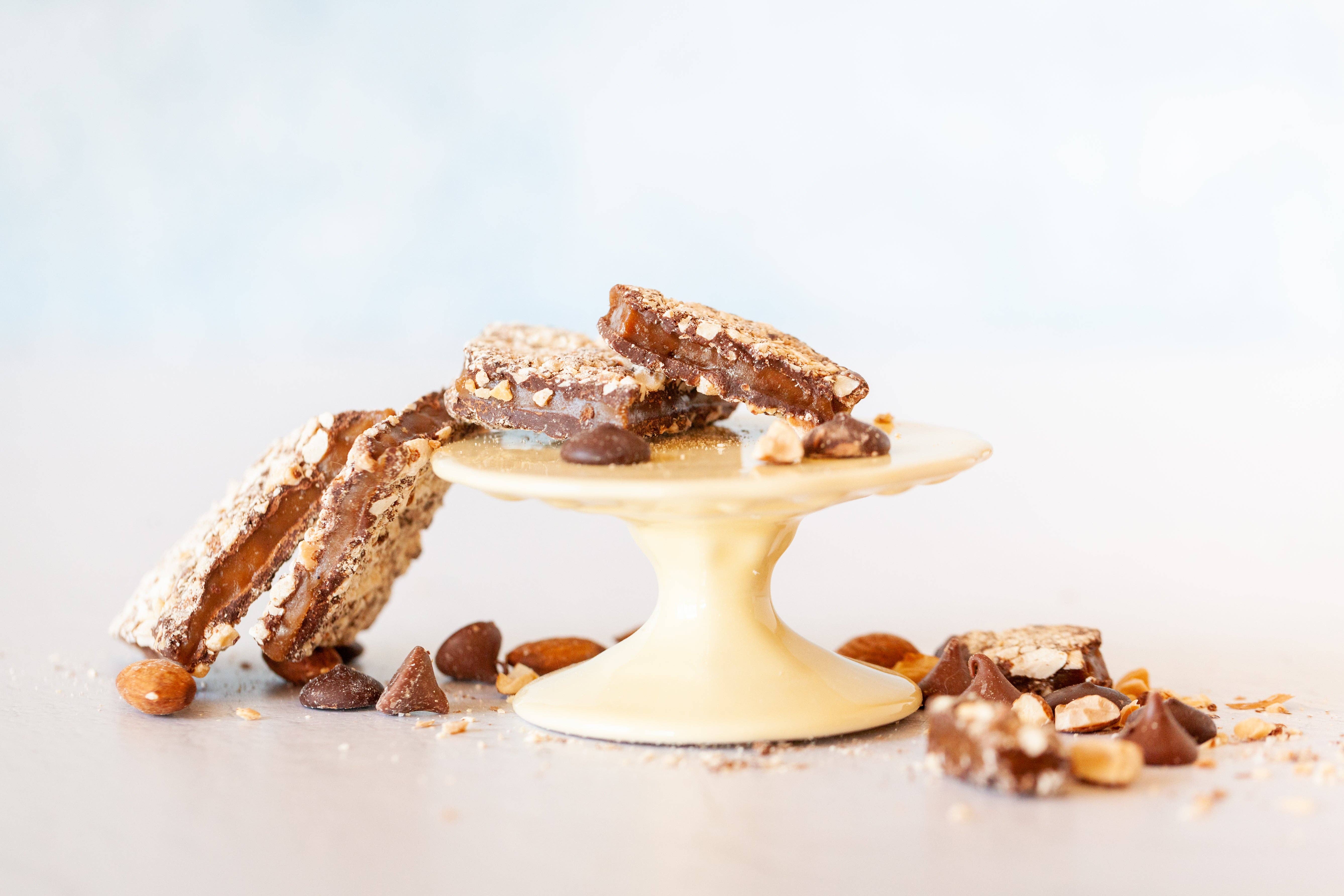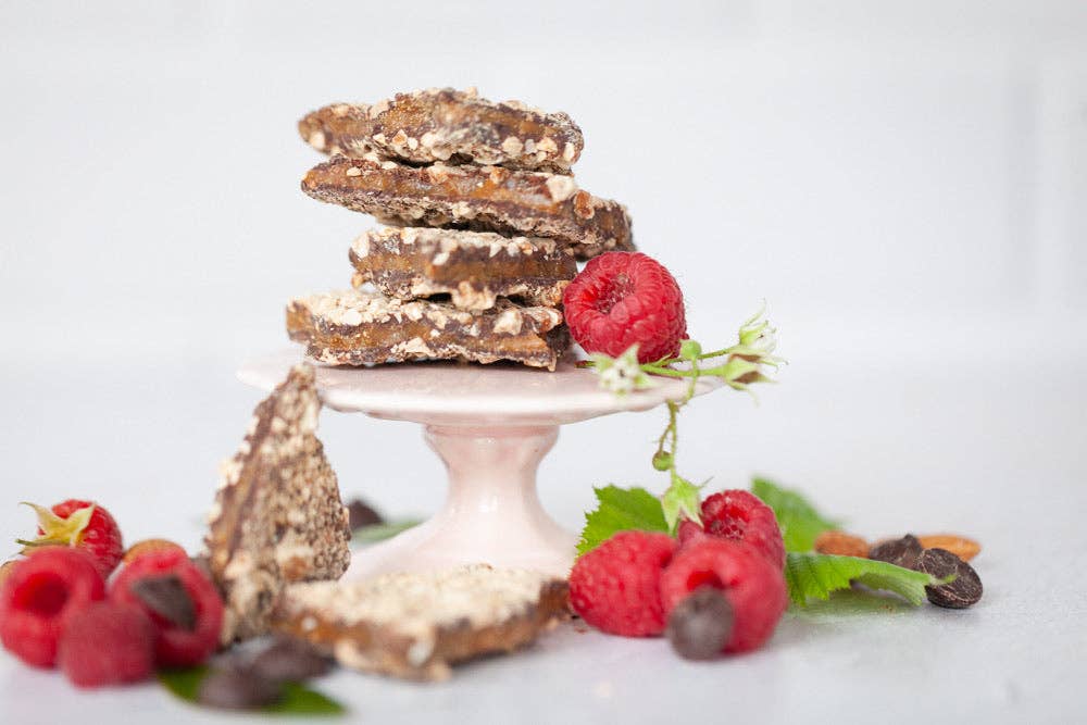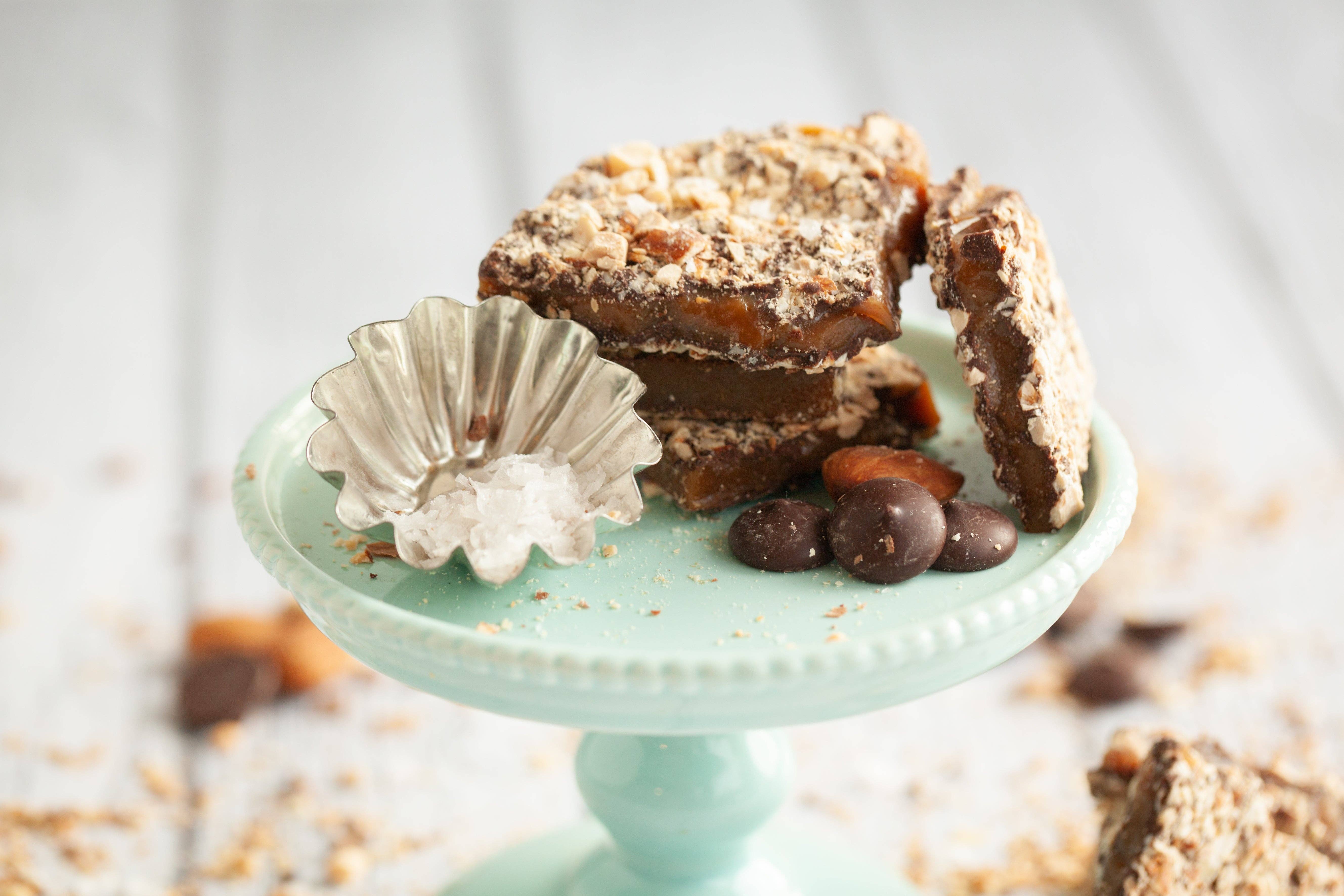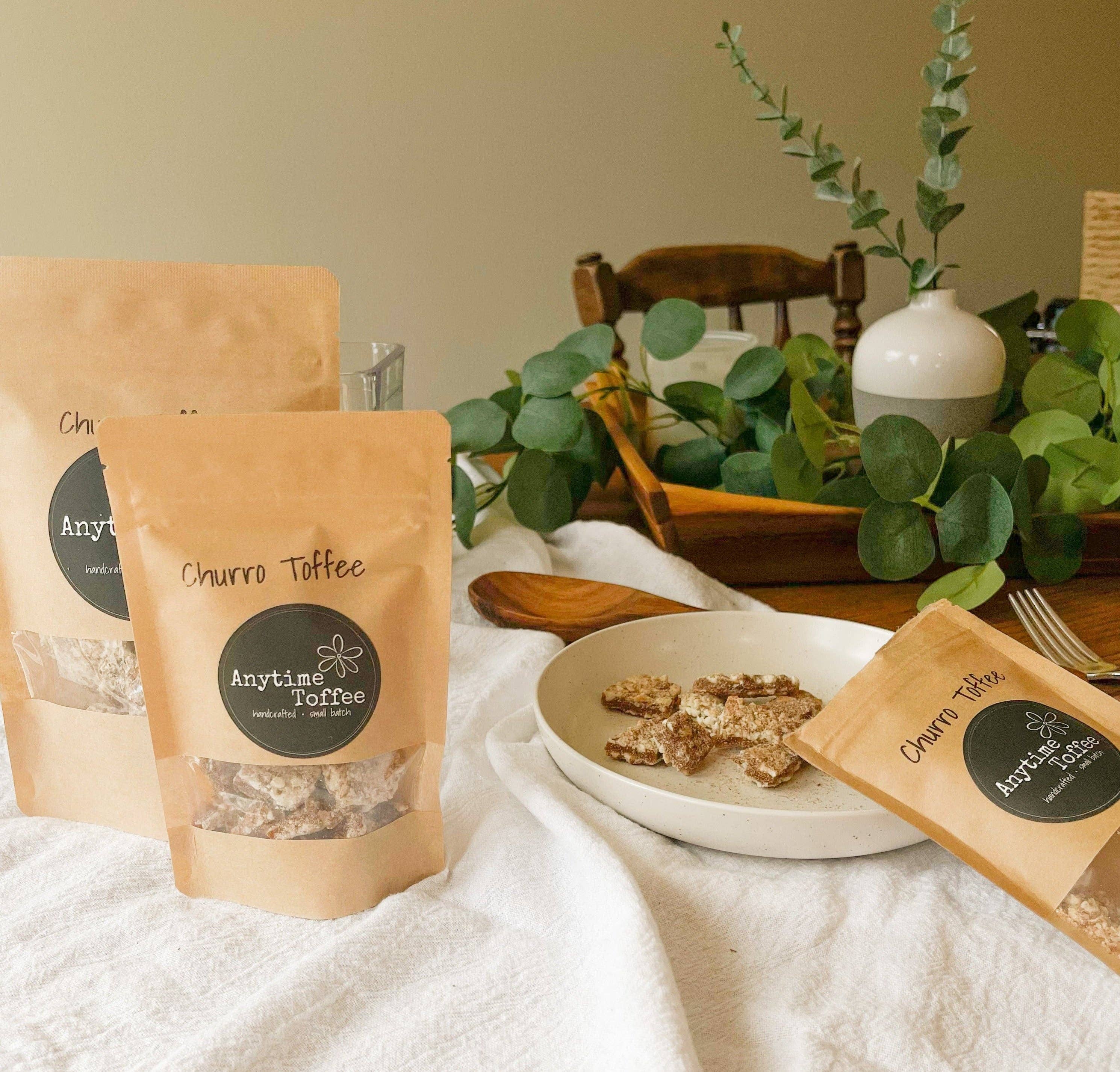Our toffee is preservative free and has a three month shelf life. We make to order providing you a quality product with optimal freshness. Anytime Toffee was born out of the joy of making chocolate almond toffee each holiday season with my mother-in-law, and the desire to prepare my four kids for life by demonstrating how to create a business out of something you love and are passionate about. Our toffee was so popular, it was the obvious choice to build a company around. We named our product Anytime Toffee out of the belief that chocolate almond toffee is not only for the holiday season, but perfect Anytime of the year- for your sweet tooth, sweet heart or as a sweet gift. Our toffee is handcrafted in small batches. Because we hand pour each batch precisely, our toffee has a pleasant, light texture and is sandwiched between chocolate and toasted almonds. We have a variety of interesting flavors added to our toffee, including sea salt, cinnamon candy, espresso bean, pumpkin spice, peppermint, and more depending on the season. We take joy in making toffee year round, and we invite you to experience the unique texture and delight that our toffee provides, Anytime.