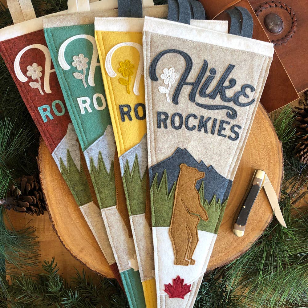 Meaning ‘awe’ and ‘wonder’, Yoho & Co. invites you to play, wander, and share your love of the world’s wild & beautiful places. Established in 2017, Yoho & Co. is 100% designed, sewn, and meticulously hand-crafted in the Rocky Mountains. Each of our pennants are made from high-quality wool felt which we source from small North American producers. All of our pennants are artist-made in our beautiful Canmore, Alberta studio located just at the gates of legendary Banff National Park. We support park conservation programs and are keen supporters of all things wild. Yoho & Co. Invites you to collect moments while sharing the love of art and the wide-open road.