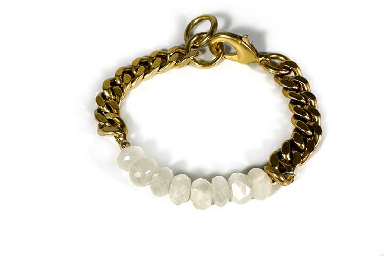 The Rachel Nathan jewelry collection is inspired by personal meaning and is rooted in the concept of designing for all. As a single mom and a former behavioral marketing executive, her pieces include symbols, stones, and styles that focus on courage, transformation, resilience, and unification. DESIGNED WITH INTENTION AND BUILT TO LAST The collection features statement chain and symbolic pendant pieces made with gold-filled or tarnish-resistant brass, rare gemstone and Indian brass beads, and finished with high-quality clasps. Each piece is made-to-order to create the perfect fit for EVERY body. “Jewelry can define your look and amplify your energy – a beautiful balance between play and self-expression.” Rachel’s pieces have been featured in Vogue and Shape magazines, worn by such artists as Gwen Stefani, Naomi Campbell, The Chicks, Earth Wind & Fire, on The Kelly Clarkson Show, American Idol, and more. Currently, the Rachel Nathan Jewelry Collection is included in more than 100 stores across the country. Hailing from Buffalo, New York, Rachel became a jewelry designer while undergoing infertility cycles and discovered that designing jewelry helped her channel her energy into something that felt powerful. In 2018, Rachel launched her collection just before the birth of her daughter.