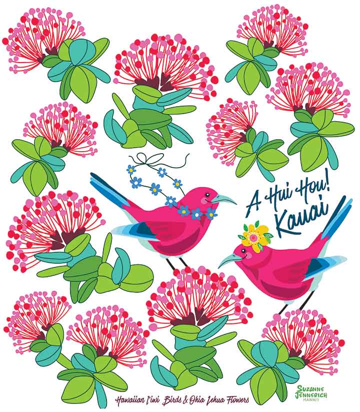 SUZANNE JENNERICH Designer and illustrator born and raised in Hamburg, Germany.  Suzanne built her career in New York City, creating for notable advertising agencies, publishing houses, design firms and fashion brands.  São Paulo next captured her heart and art, followed by Rio de Janeiro in Brazil.   Lovely Hawaii is now here home for many years, creating in her artist studio & gallery in Kailua, capturing the beauty of Hawai'i and its nature. She brings the vibrant joys of island living to you.  Her brilliant artwork make each day brighter, and every smile sweeter. Aloha for you and your home.