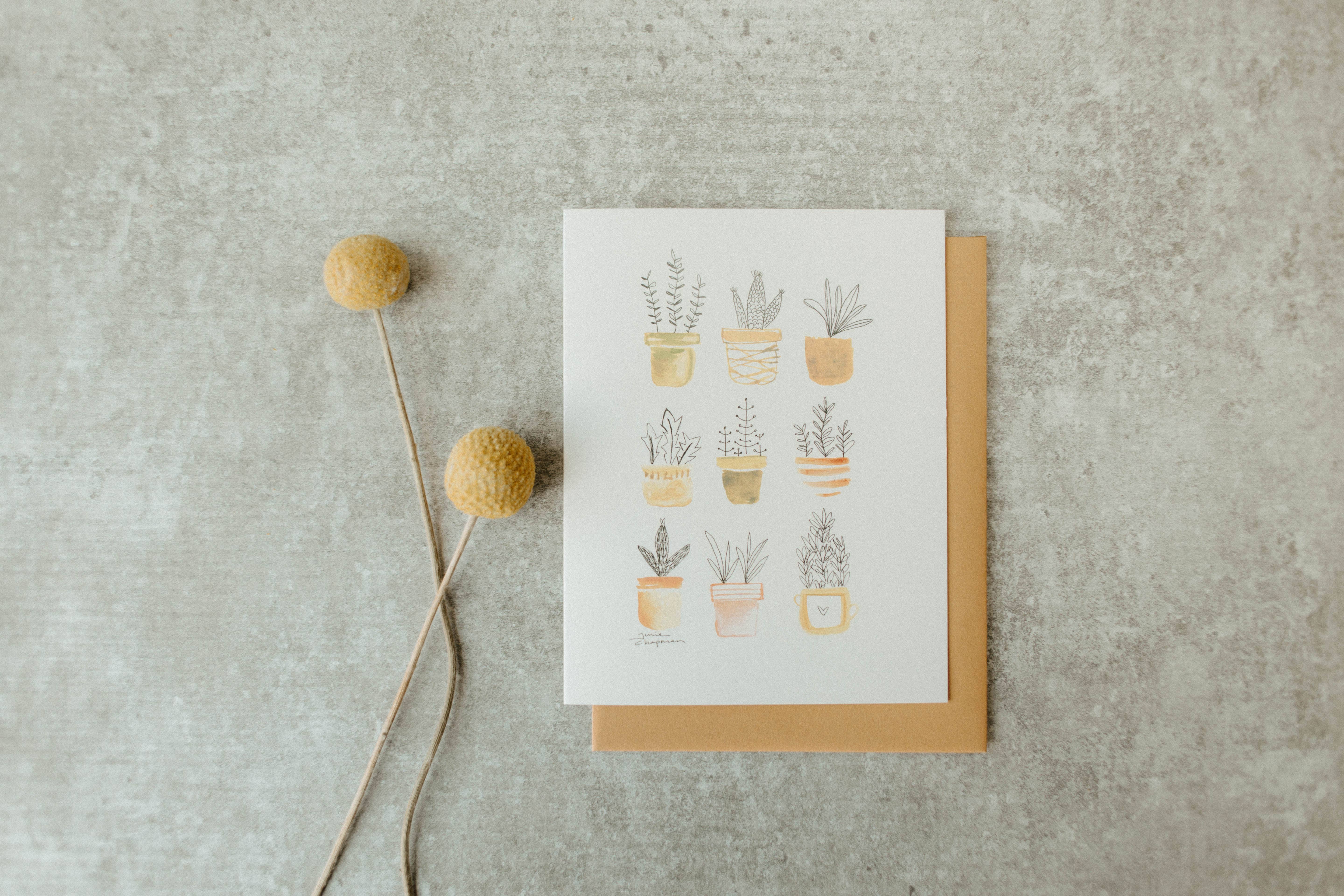 Julie Chapman is the artist behind Sweet Julie Marie. Growing up in Iowa City, Iowa, her interest in paper, painting, and any surface she could doodle on started at a very young age. Julie received a Bachelor’s in Art and Design from Iowa State University with a minor in Advertising. After graduating, she worked for American Greetings in Cleveland, Ohio designing greeting cards for major retailer Target. During her time there, in 2007, her embroidered felt mitten card won a Louie Award, the greeting card industry’s highest honor. Armed with experience as a greeting card artist, she decided to leave corporate life behind and move back to her hometown roots. Her own creative pursuits came and went, but her lifelong passion for hand illustrated paper goods always remained. In 2022 she went full time with her own studio. MEDIUM Watercolor. Pen and Ink. Collage. Julie draws inspiration from nature, animals, and anything that makes you feel like a kid again. STUDIO Julie’s studio space is in her North Liberty, IA home. With a big natural light window, most days you will find her painting with no music, just coffee, and her cheerful cat, Charlie. Supporting her local community is important to her. She works closely with a local printer for all paper goods and sources from as many small businesses as she can.