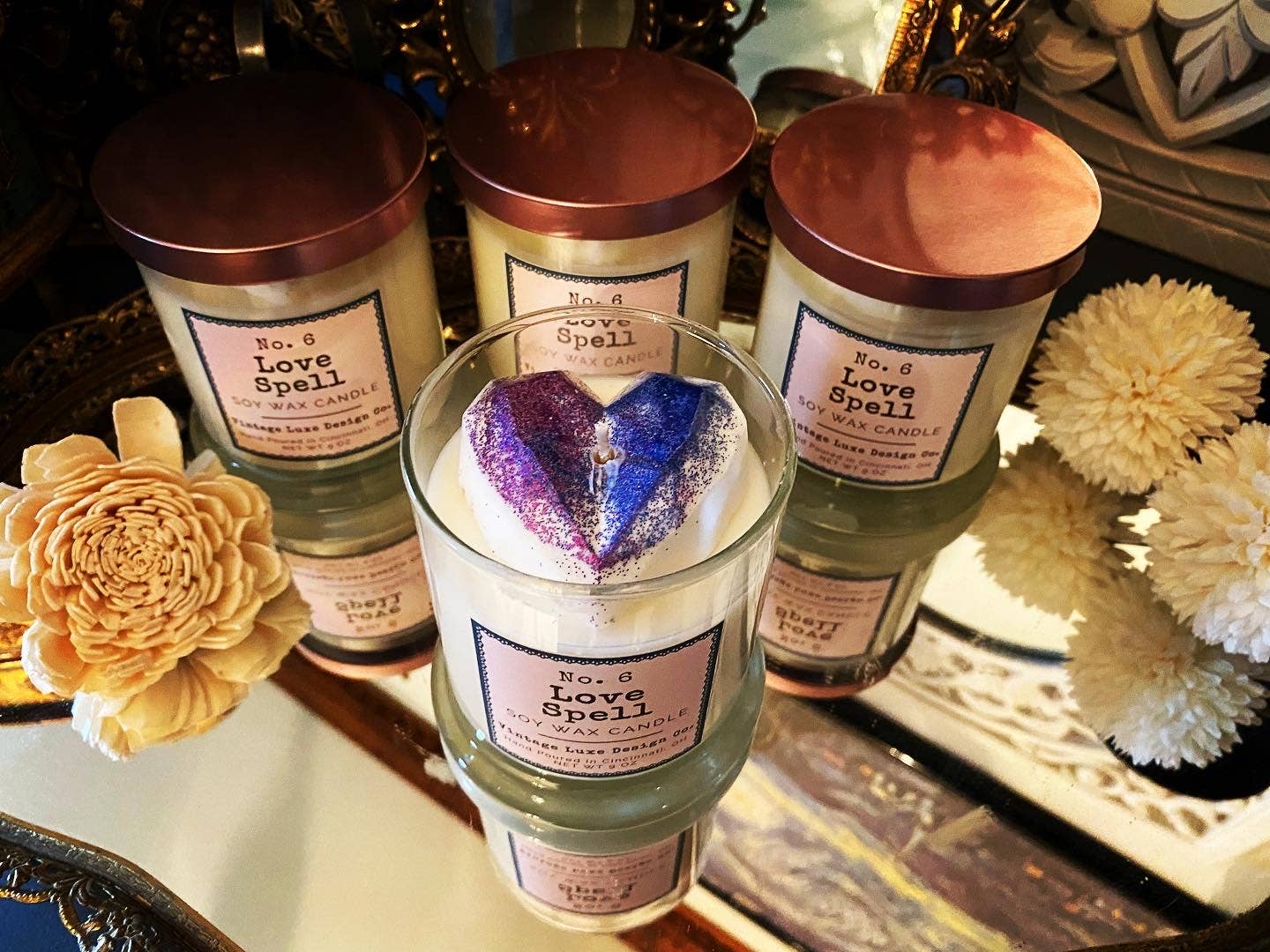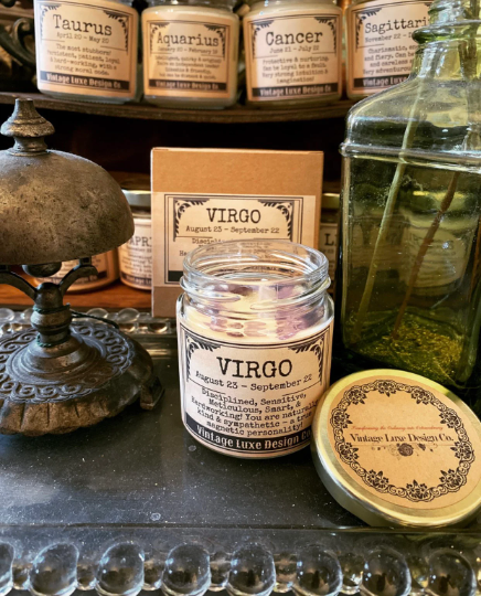 Vintage Luxe Design Co. was born out of the perfect pairing of Sarah's love for vintage goodies plus her passion for a luxury aesthetic. Putting her R&D Chemistry background to work, she researched & tested her way into becoming a skilled chandler! At Vintage Luxe, every detail matters! From each vintage style label, to the luxury jars, to the carefully concocted soy wax candle recipes, we pour heart and soul into every single candle we pour. We only use top quality American grown soy wax flakes, partnered with only CleanScent phthalate-free perfume oils and cotton wicks to ensure safety and quality are consistent. We test, test and then test again to ensure our candles provide each owner with an exceptional scent experience that speaks nothing but luxury. Whether it is a clean, refreshing energy boost you are looking for from your candle scent or that "tuck into a nice book and relax" perfect moment, we have you covered with our scent range. Our mission is to elevate the Ordinary to Extraordinary by providing a high quality, luxurious candle burn experience for every single consumer.