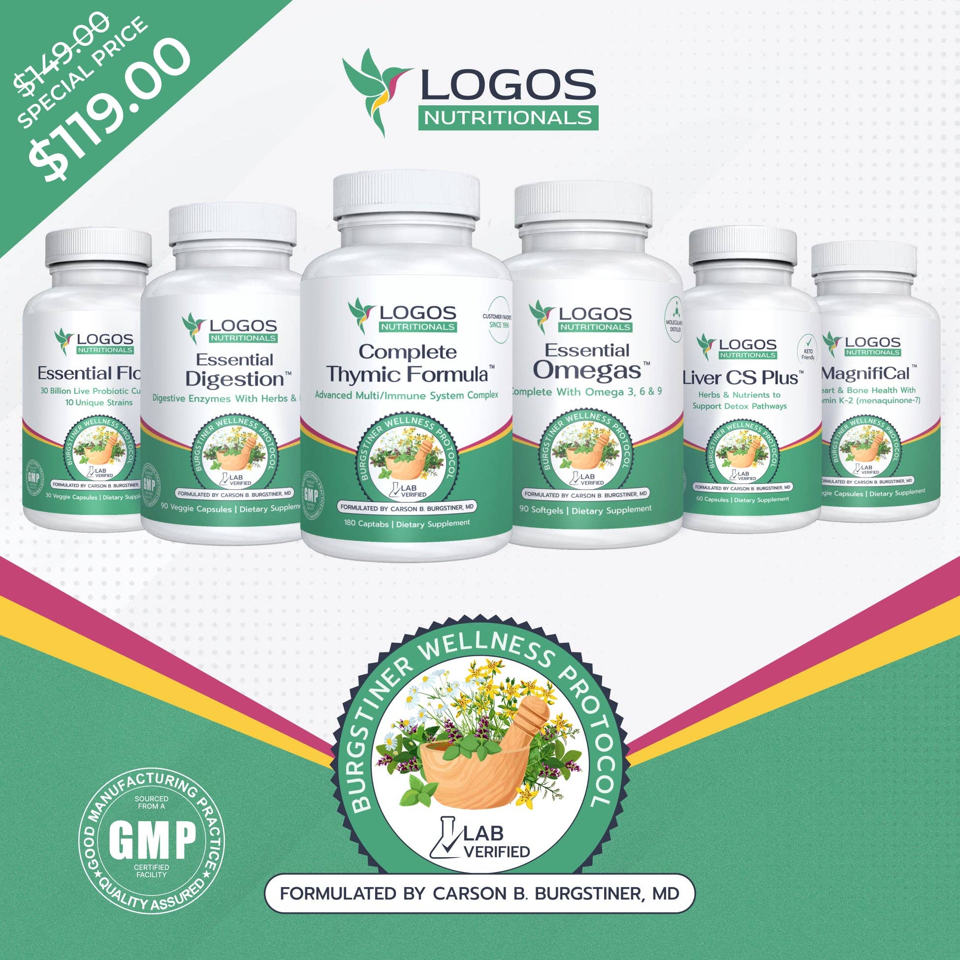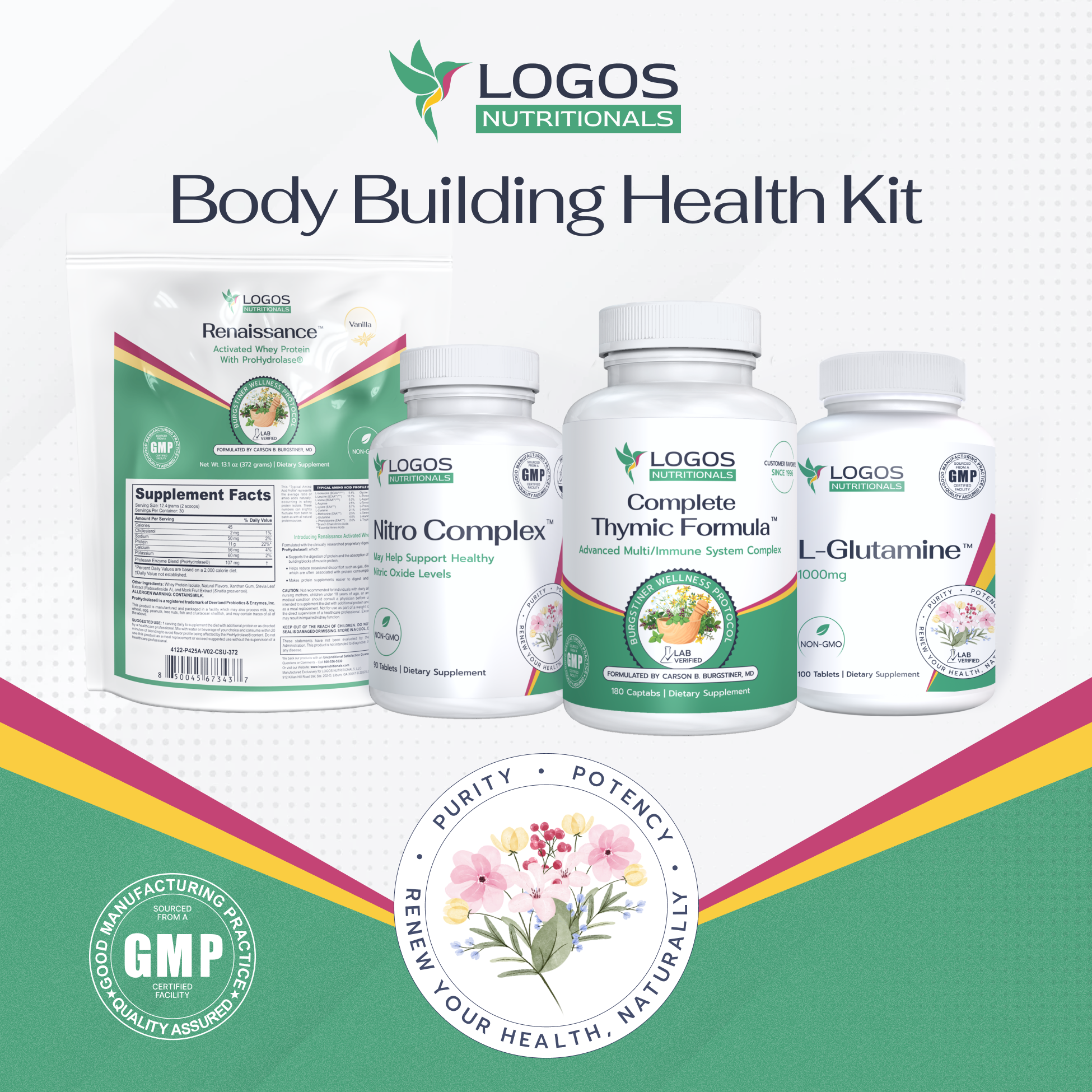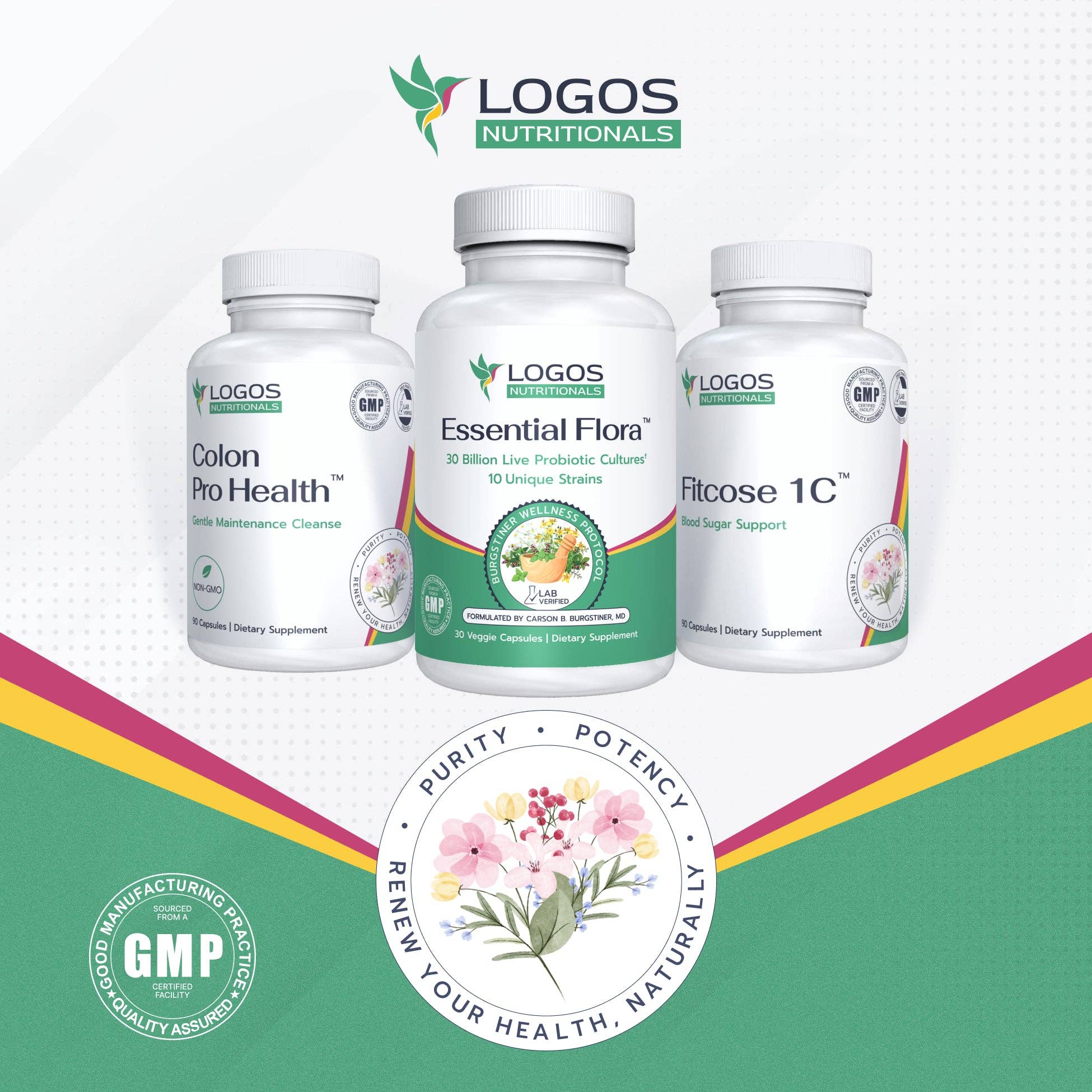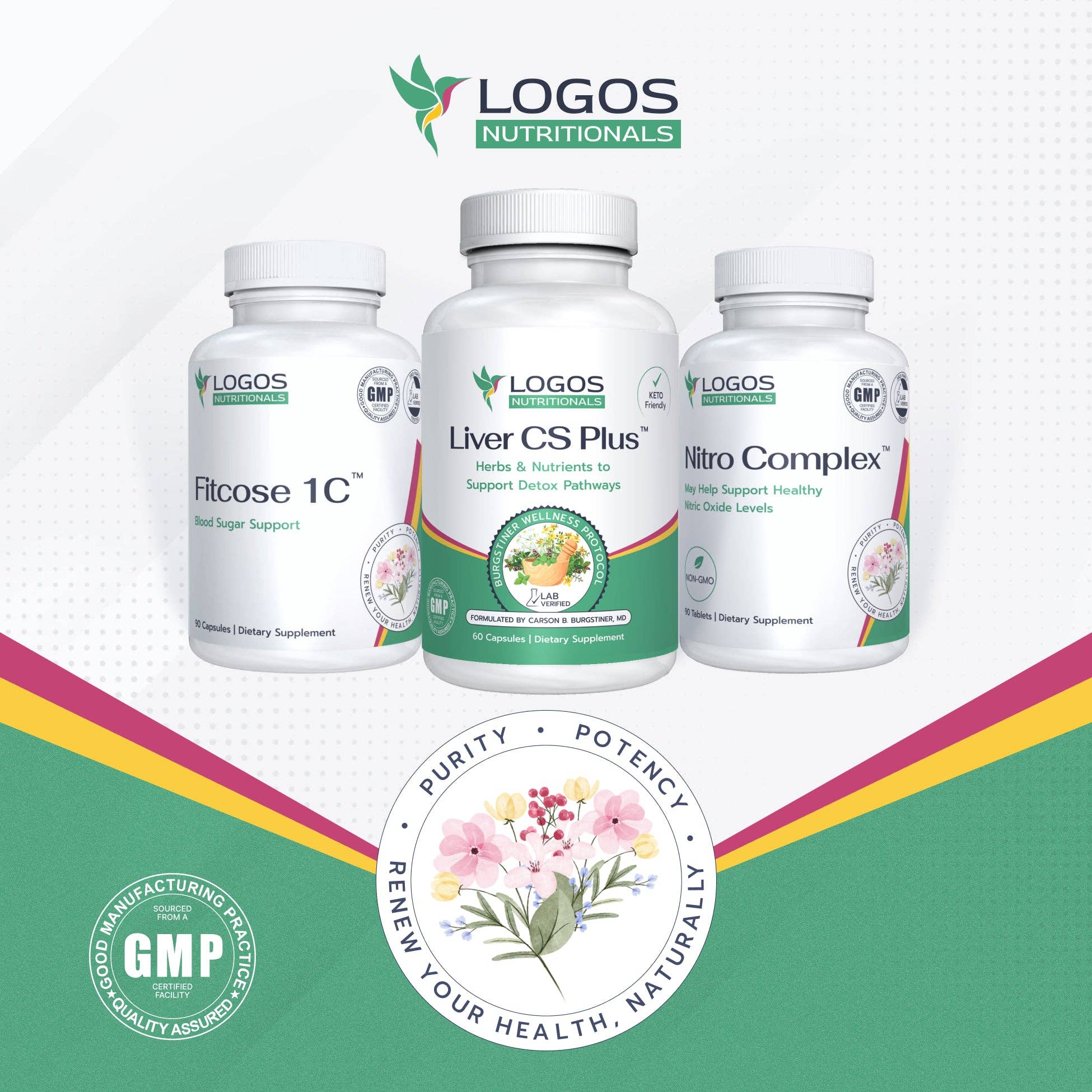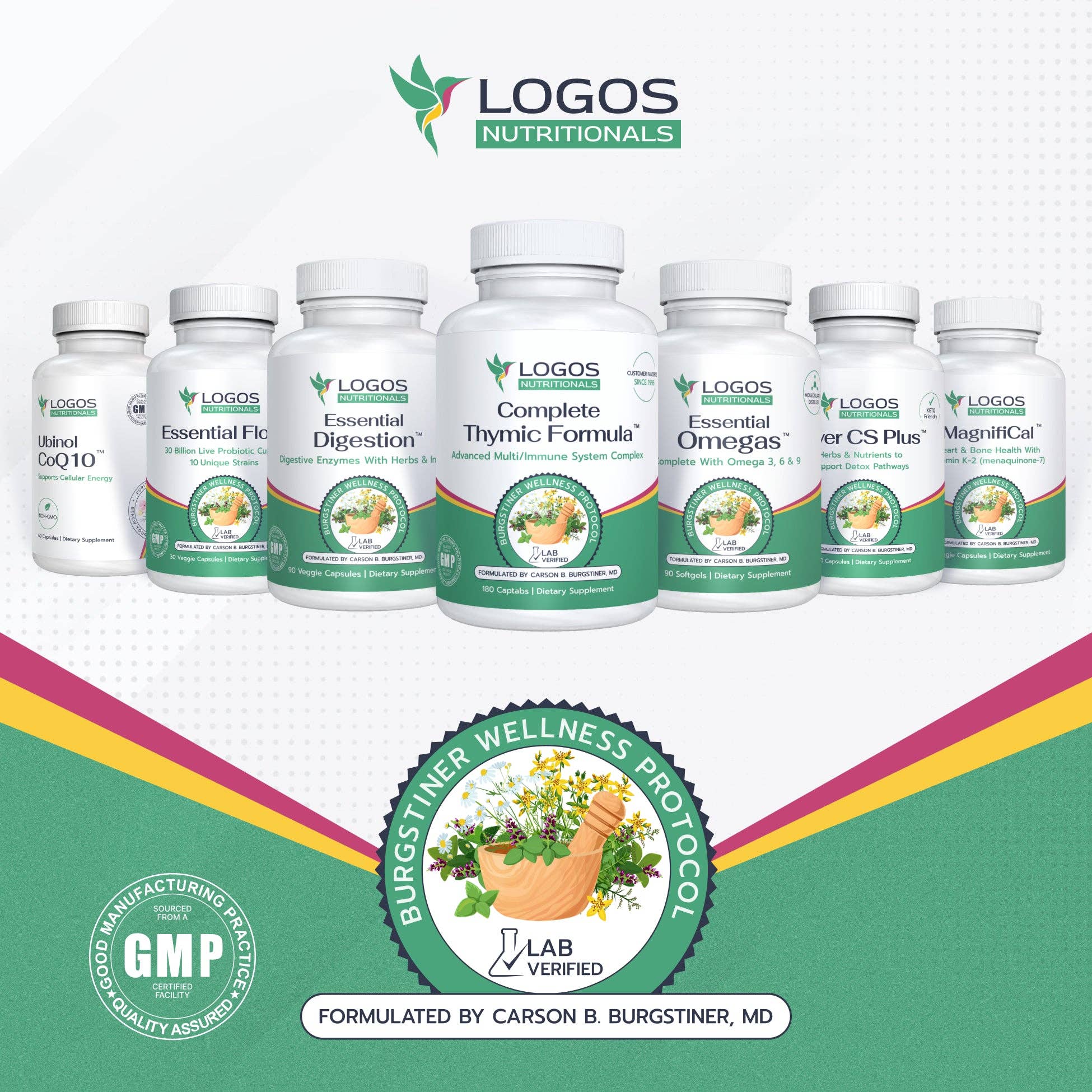 Logos Nutritionals is a health and nutrition company whose products are known for "Bringing Hope to Life". The company was founded by John M. Burgstiner, a second generation natural healer, speaker, writer, researcher and gifted nutritional formulator. According to John, "Logos was birthed out of a desire to create synergy based natural medicines that transform lives, and to empower natural health seekers with knowledge about how to properly nourish, protect and strengthen their bodies."