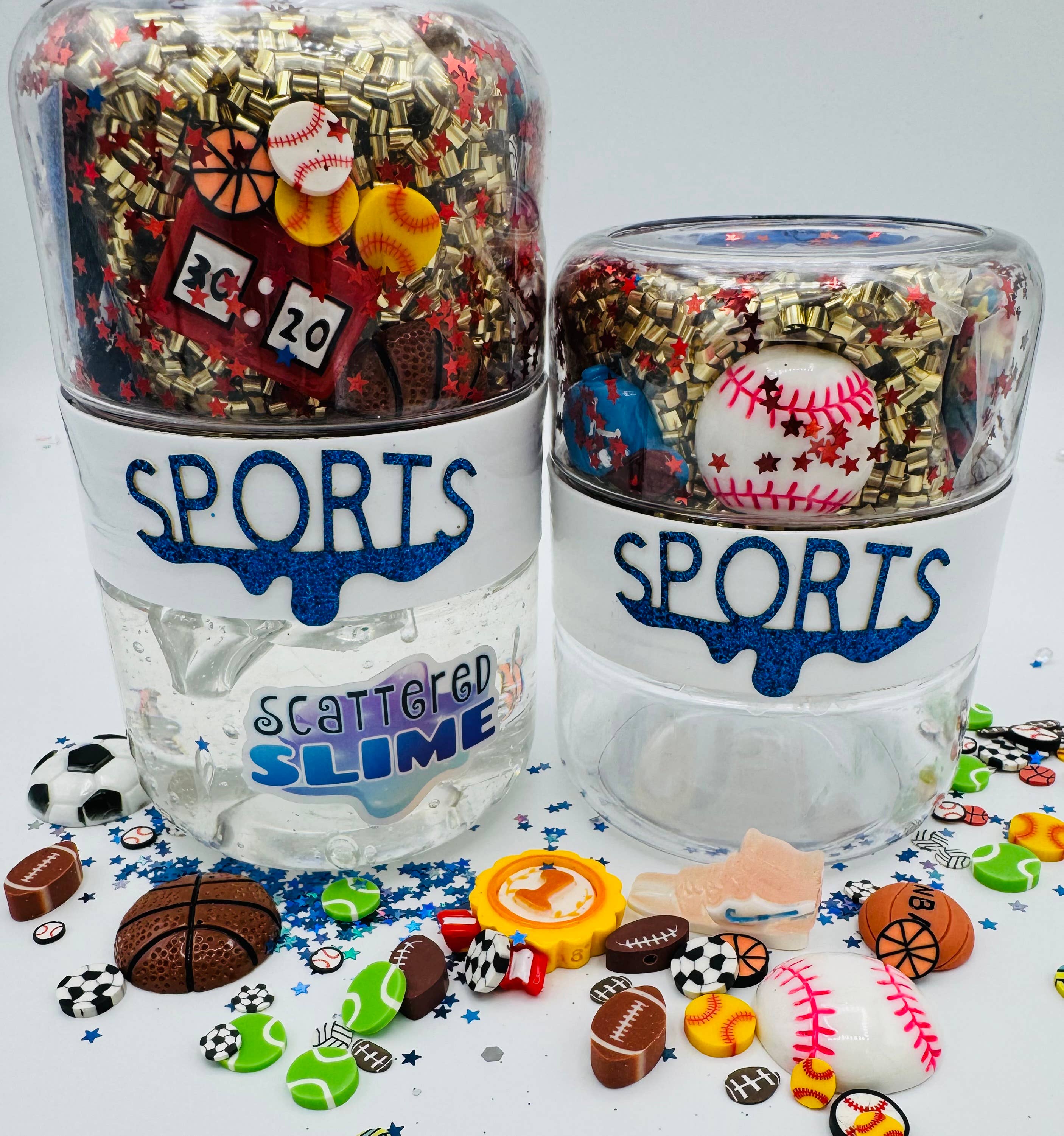 Scattered Slime provides color, creativity and fun in a high end slime kit that's fully thematic. Our signature jar had slime on one side and add-ins packed separately on the other. Kids can mix it as an art or sensory activity. Our slime has a great consistent and comes pre-activated so it's ready to mix in all the toppings. We can customize our sets for any kind of theme, color or occasion.