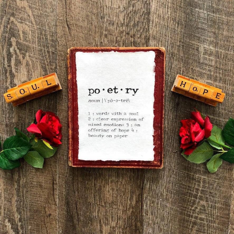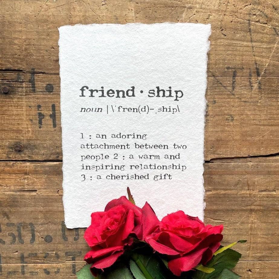 Alison Rose Vintage is a shop filled with vintage-style word art on beautiful handmade paper and cardstock. I write, design, print, and package each piece myself in my home office. I print on demand and do not stock any inventory. This means lead times may be a little longer than average, but I can easily customize any of my prints and cards for you. I've always felt that words have a lot of power—they can be uplifting and build us up or tear us down. With this in mind, I created this business to focus on building connections through loving, joyful, and comforting words. When you buy from Alison Rose Vintage, you're not only supporting me and my small business, you're also helping to make a meaningful difference in the world. I donate monthly to social justice, mental health, and humanitarian causes. You can read more about these non-profit organizations on my website alisonrosevintage.com. I love to read, send snail mail, and explore beautiful places with my family, friends, and dogs. I'm originally from West Virginia, lived in Ohio and Massachusetts for many years, and now reside in East Tennessee near the Great Smoky Mountains National Park. Alison Rose Vintage prints are on handmade paper with deckle edges packaged in a clear plastic sleeve with top opening and a branded sticker on the back. Cards are packaged in clear plastic enclosed sleeves and include an envelope and rose sticker. Please message me if you have any questions!