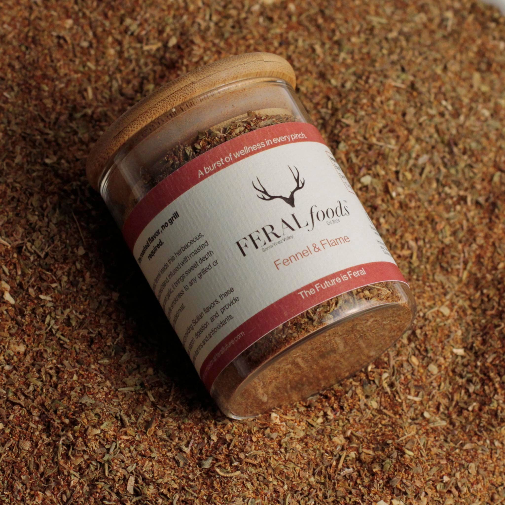 Feral Foods crafts pleasure rich pantry staples that reawaken the body’s innate intelligence. Rooted in the abundance and beauty of California’s Santa Ynez Valley, our one hundred percent organic offerings honor the seasons of nature and the wisdom of ancient plants. Each small batch creation is soulfully sourced to nourish the nervous system, support holistic well being, and bring us back into relationship with the natural world. Everything at Feral Foods is an extension of our home and is infused with craftsmanship, love, and intention. Our food is a sensual return to real, nourishing meals for those who crave depth, ritual, and resonance in their daily lives. Whether steeped, stirred, sprinkled, or lit, these offerings invite you to slow down and savor what is real while reconnecting with your natural nature and embodying a more grounded, meaningful way of living. Elevated simplicity. Food as ceremony.
