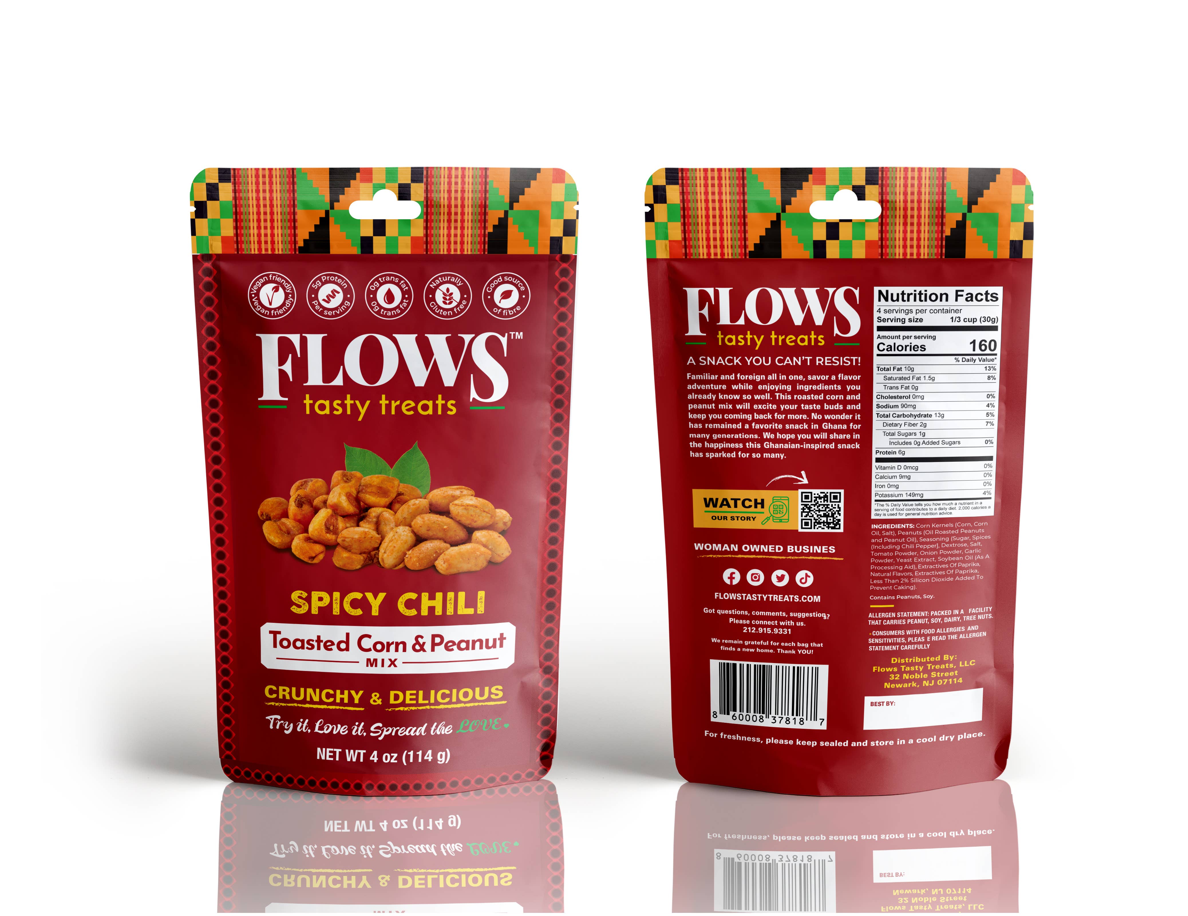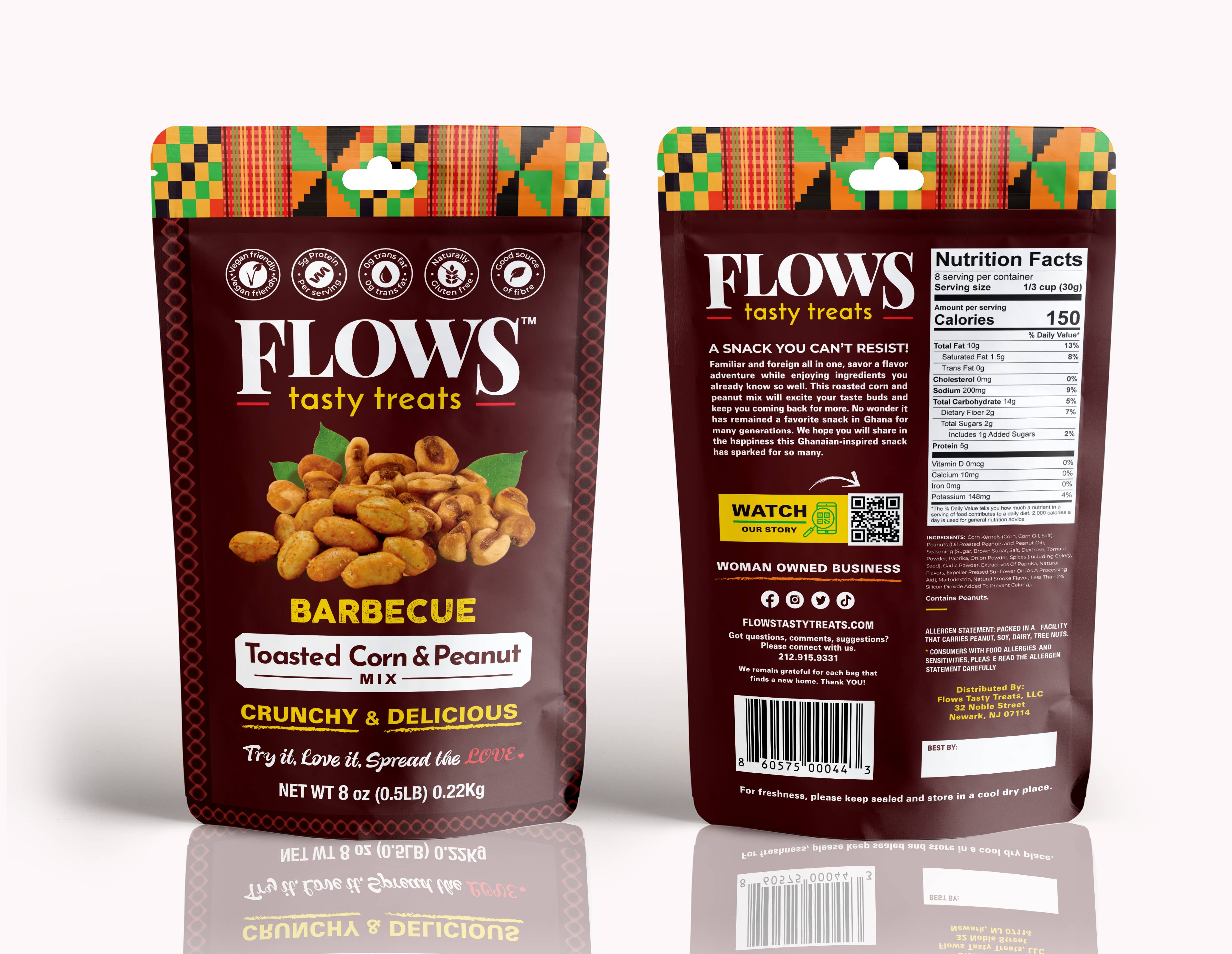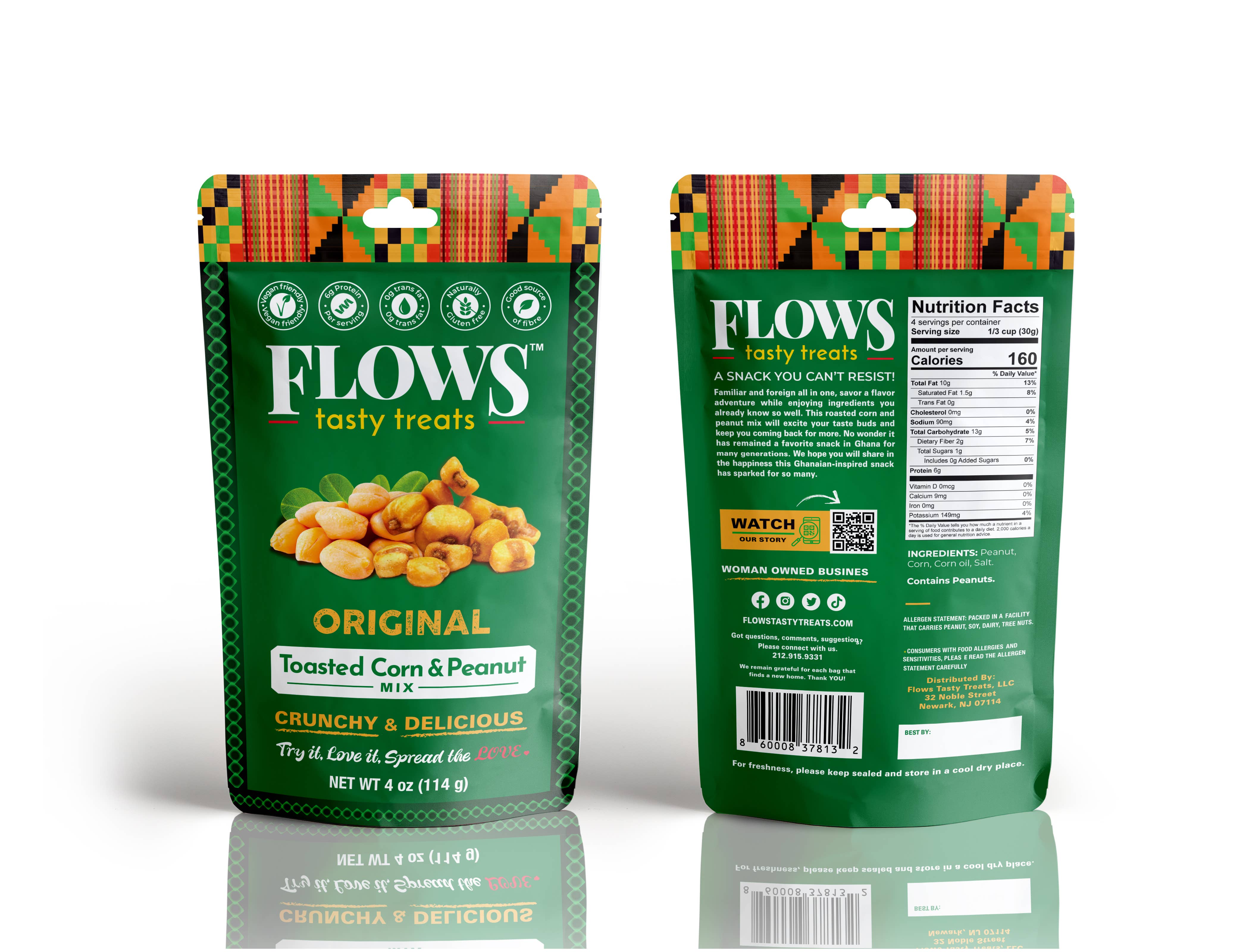 Flows Tasty Treats, a Black woman-owned social impact snack company based in Newark, NJ, brings African-inspired flavors to the snack aisle with its toasted corn and peanut mix. Made with simple, U.S.-sourced ingredients, our protein-packed, crunchy snacks delight customers seeking bold, unique, and delicious options. With national distribution and a loyal fanbase, we are on a mission to make African-inspired snacks a household favorite. Beyond our delicious products, we’re committed to creating impact in the community — from raising scholarship funds for students to supporting job creation here in Newark. Guided by Excellence, Adventure, and Giving Back, we create snacks that connect people, celebrate culture, and support our community.