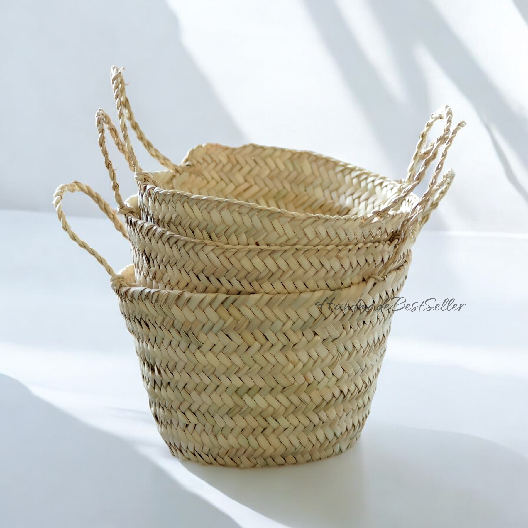 This bag is handwoven in the souks of Morocco, from a palm leaf. It is a "Slow Fashion" product representing everything that is eco, ethical and green. Even though this Spring & Summer season is all about straw. Small round wicker French basket, hand woven in Marrakech by friends and family. Ideal for small shoppers or beach bags. Also a perfect bag or gift for a girl - great for school books etc. Approx size : 29 x 18 x 11 cm - 11.4 x 7 x 4.3 inches" This braided bag is perfect anytime and everywhere, Especially in the summer and there are those who like to carry them on the beach, from grocery shopping, and stylish holiday accessories to home storage. It's something you won't want to leave your house without. Made in Morocco