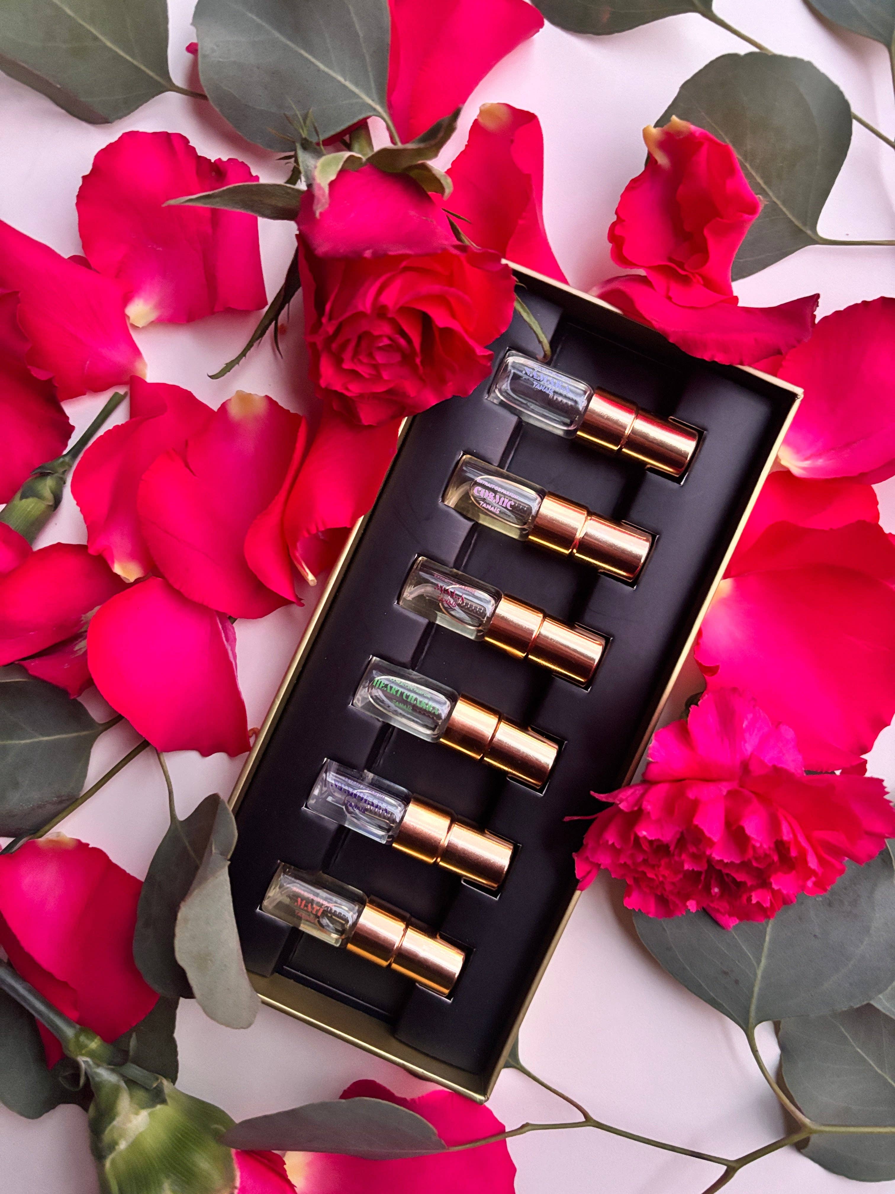 Studio Tanaïs er et multidisciplinært parfume- og designstudie skabt af Tanaïs, parfumør og forfatter af In Sensorium: Notes For My People, vinder af 2022 Kirkus Prize, en alternativ historie om Sydasien fortalt gennem parfumes linse. Deres parfumer er surrealistiske, psykedeliske duftlandskaber, inspireret af deres bengalske arv, den vilde skønhed i deres hjem, New York City, og deres åndelige hjem: Indien, Hawaii, Bali, Mexico, Mojave-ørkenen. Deres arbejde har været omtalt i Vogue, Vogue India, Elle, Harper’s Bazaar, Vanity Fair og mere. Parfumeflasken er en hyldest til deres daglige solnedgangsmeditationer ved East River i Brooklyn, når Venus og Månen stiger op på aftenhimlen. Beregnet til at pryde bæreren i en følelse af ritual, er Tanais' kreationer overdådige, originale kunstværker. *Nye forhandlere: Bestil venligst et komplet prøvesæt for at opleve parfumerne, før du afgiver en ordre <3